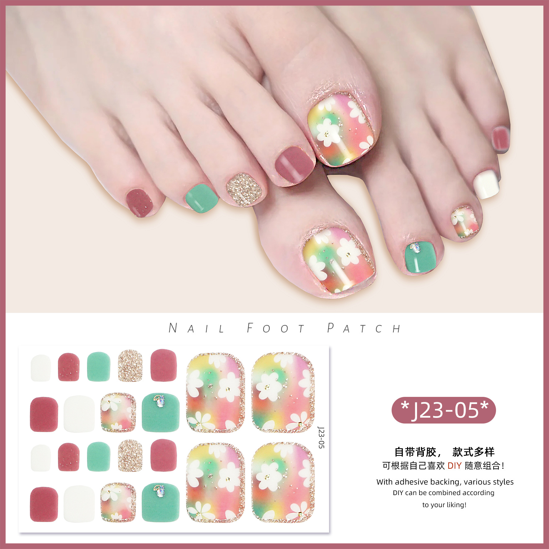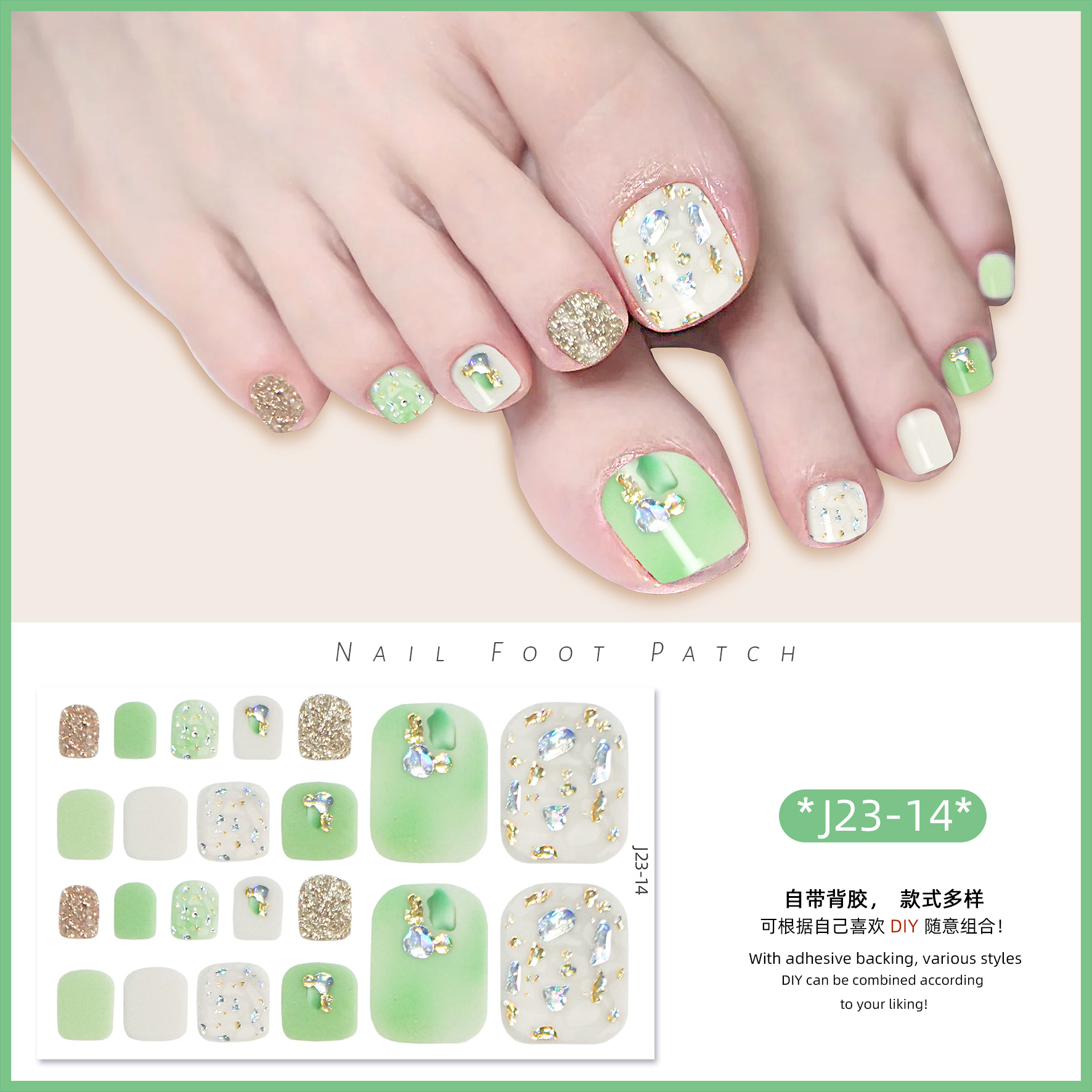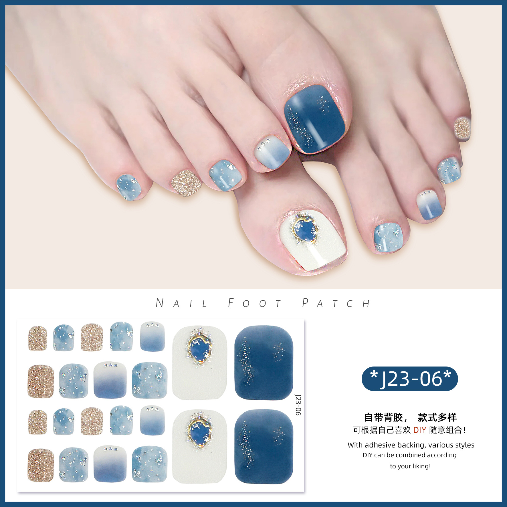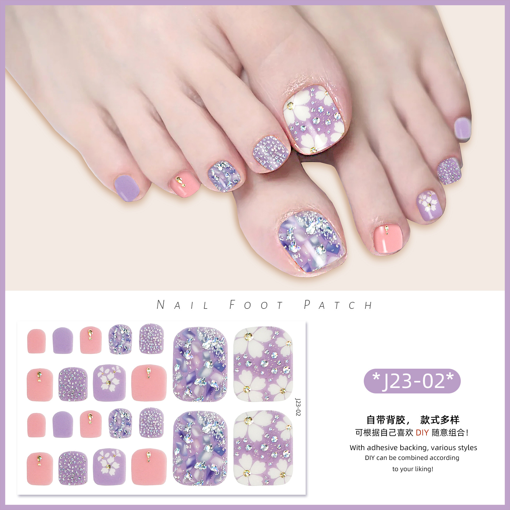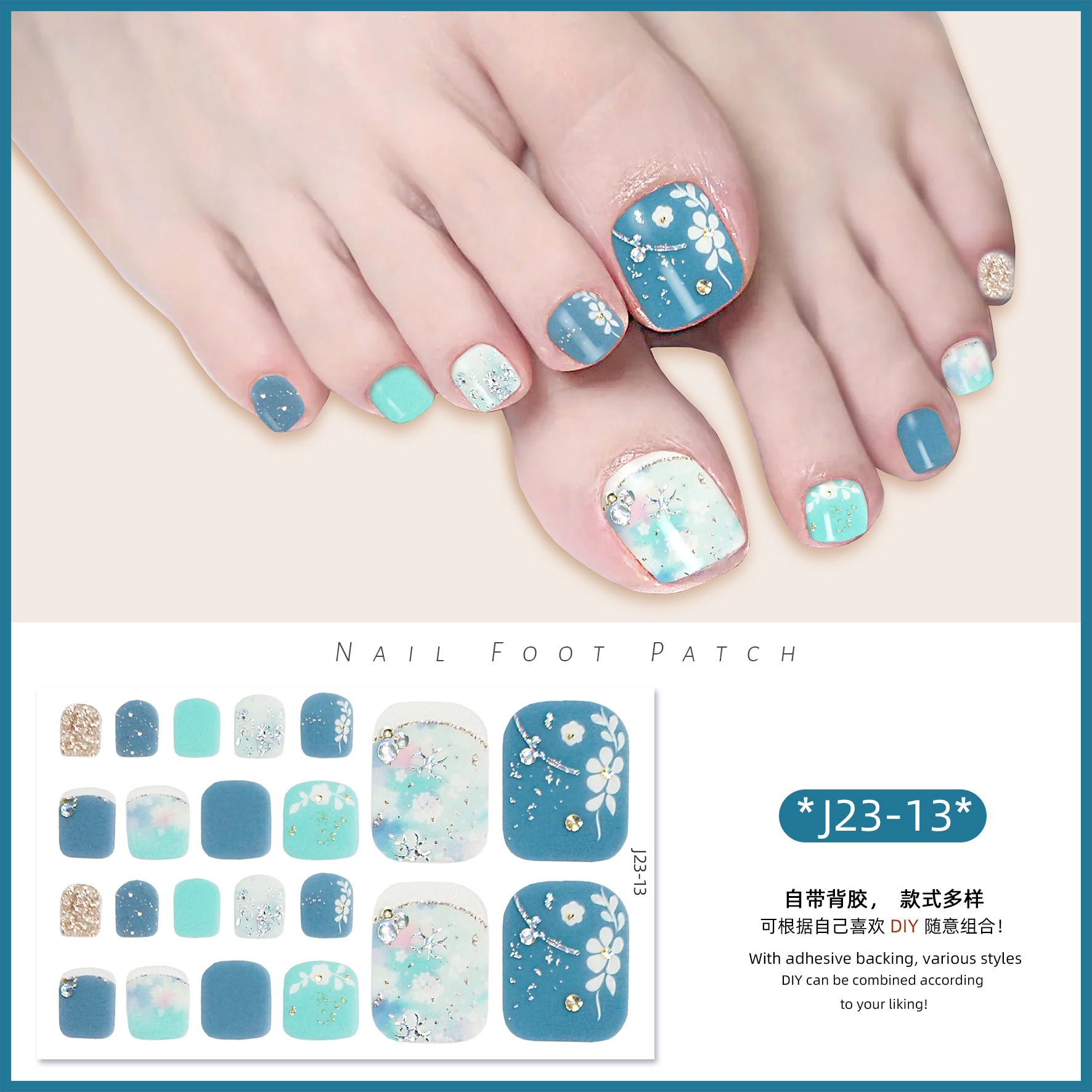 2025 신제품 인터넷 인기 발톱 네일아트 스티커 방수 INS 스타일 크리스탈 반짝이 발톱 네일아트 스티커 풀커버스토어 가기