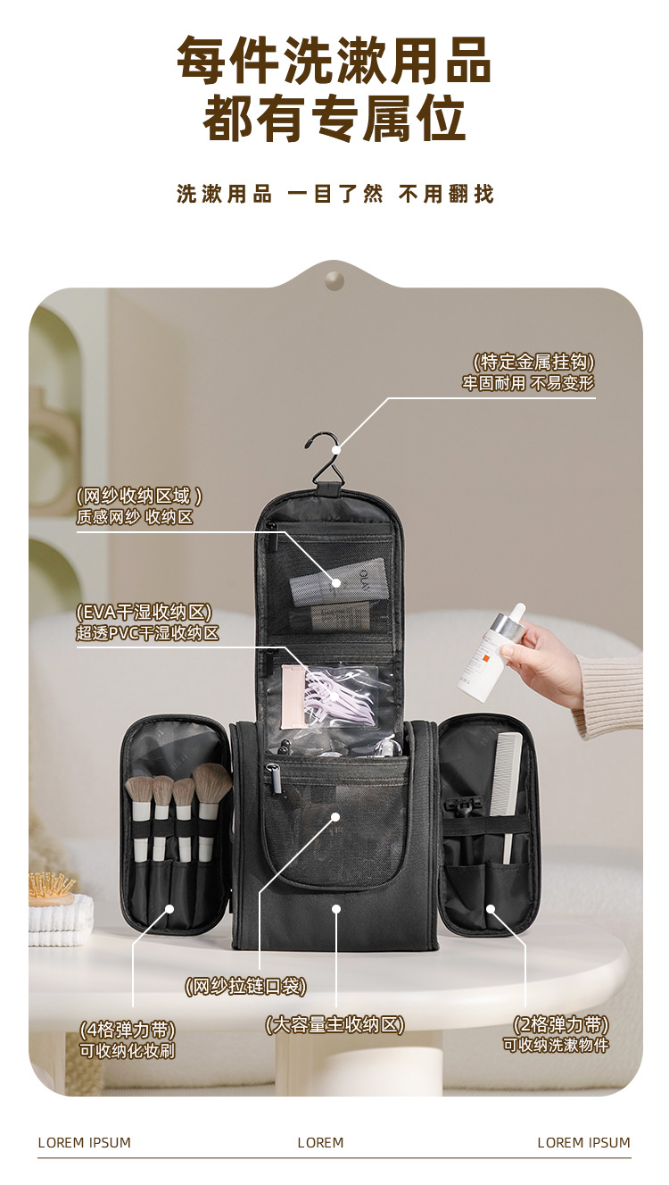 2024 새로운 국경 창조적 인 교수형 후크 더블 오픈 워시 백 대용량 다기능 방수 여행 보관