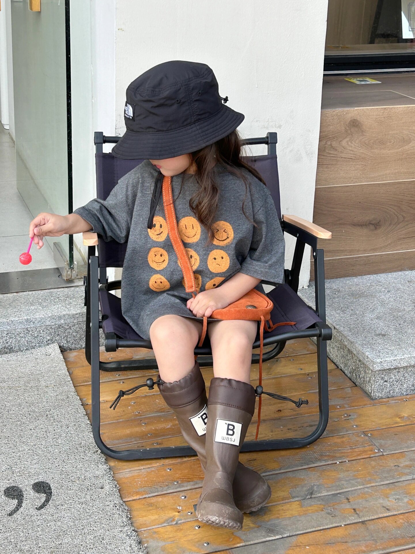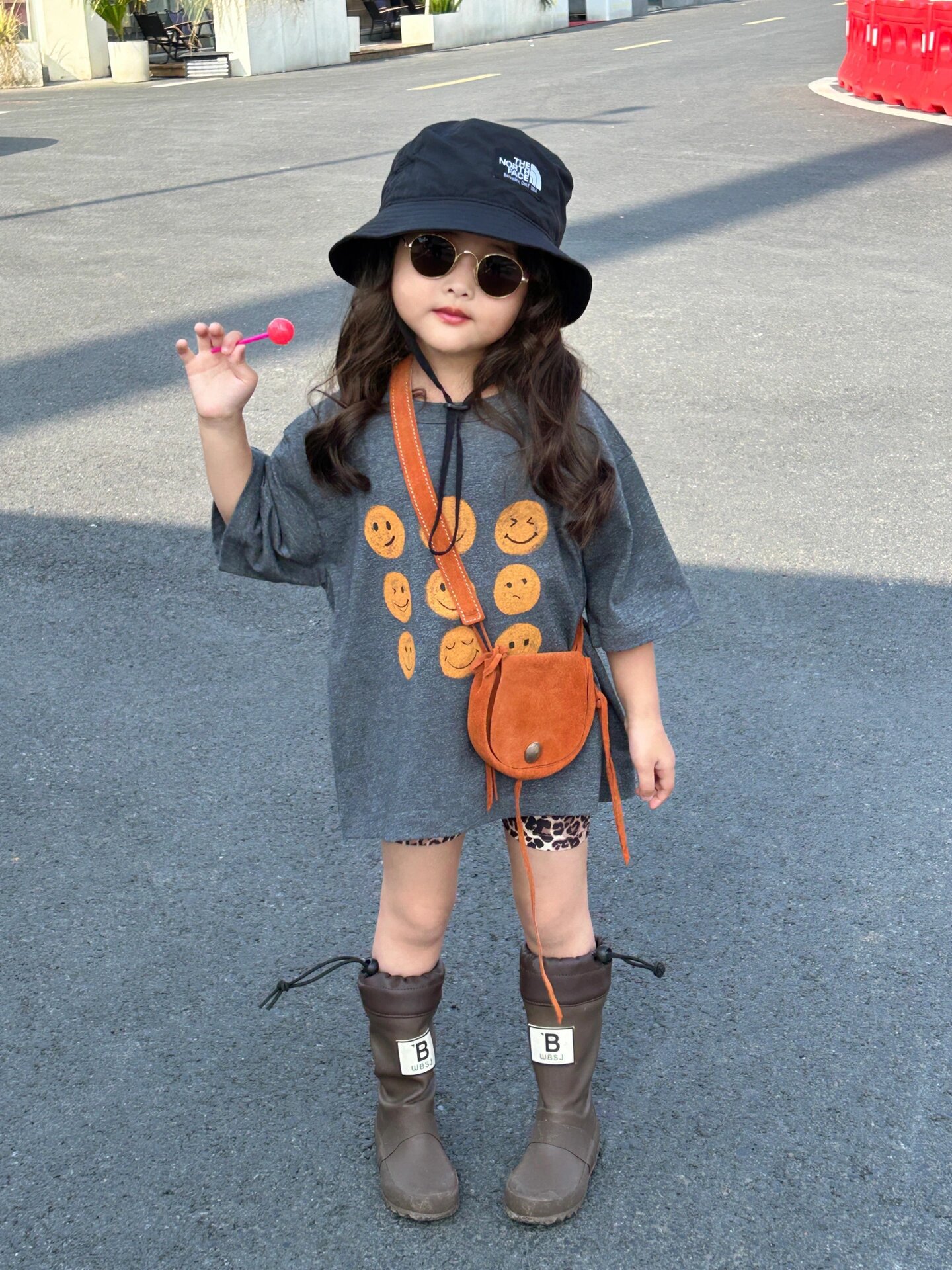 2026 한국판 여름 신상 남녀 아기 웃는 얼굴 긴 티셔츠, 루즈핏 중간 길이 스웨트셔츠, 스타일리시스토어 가기