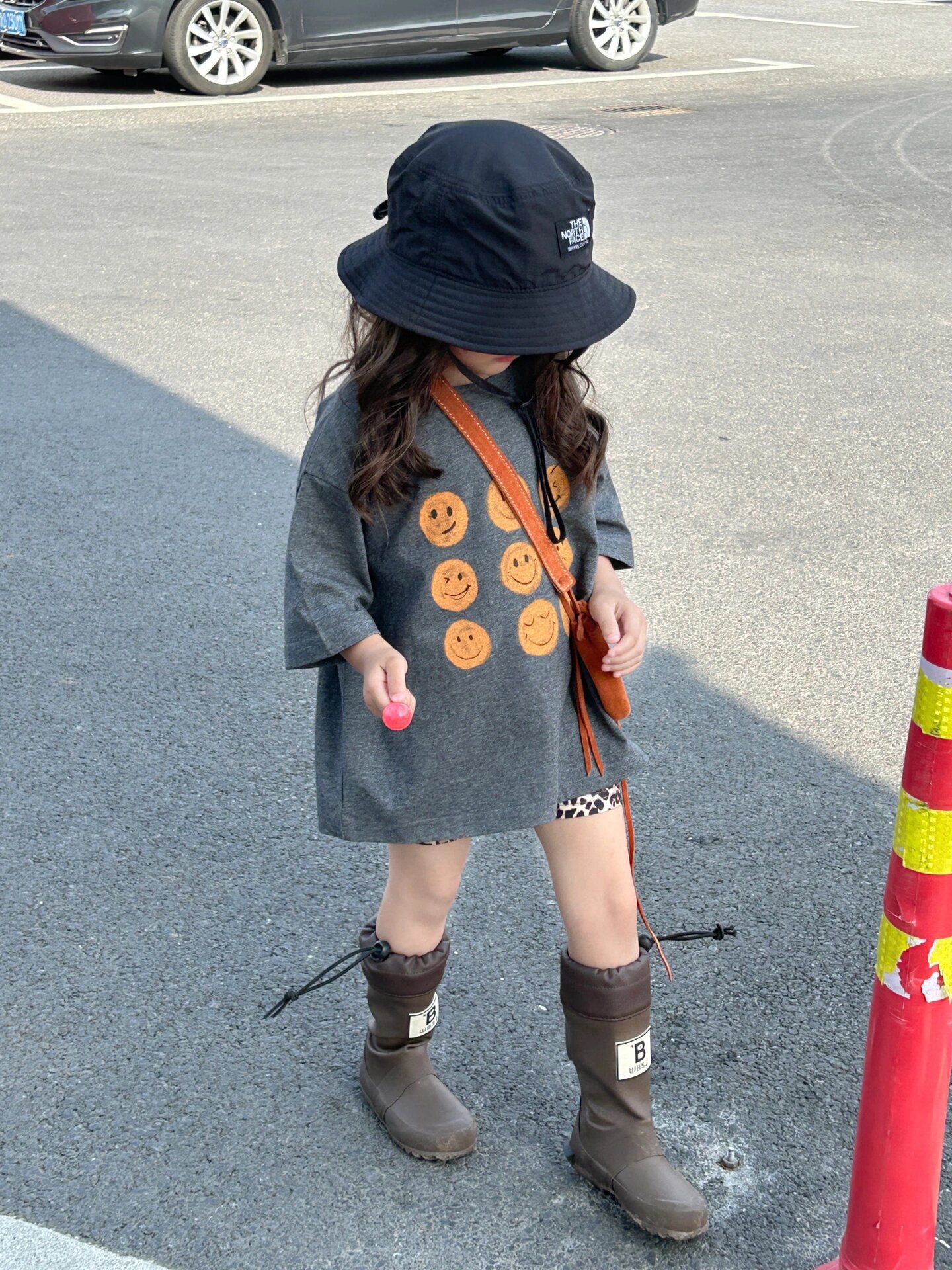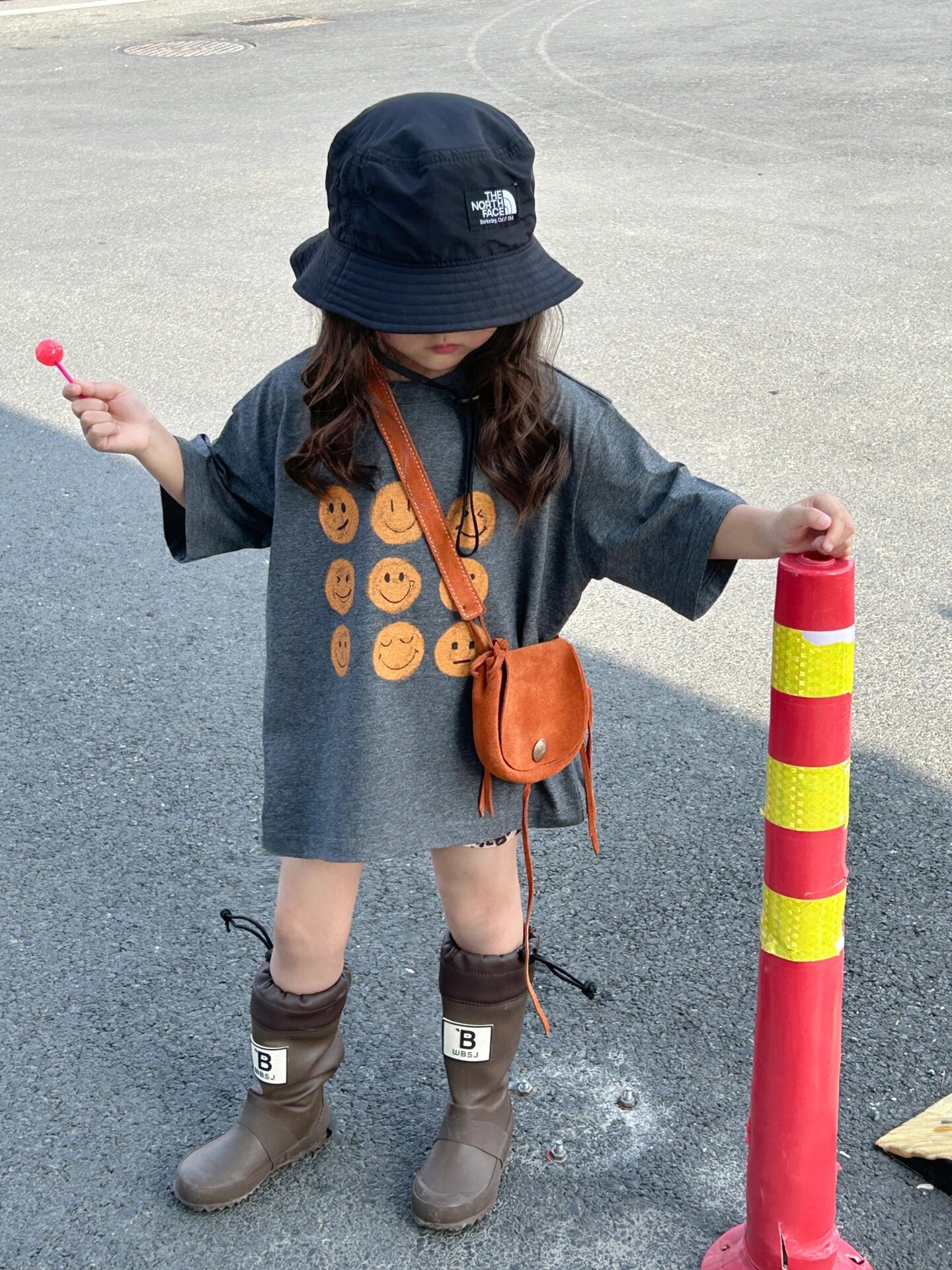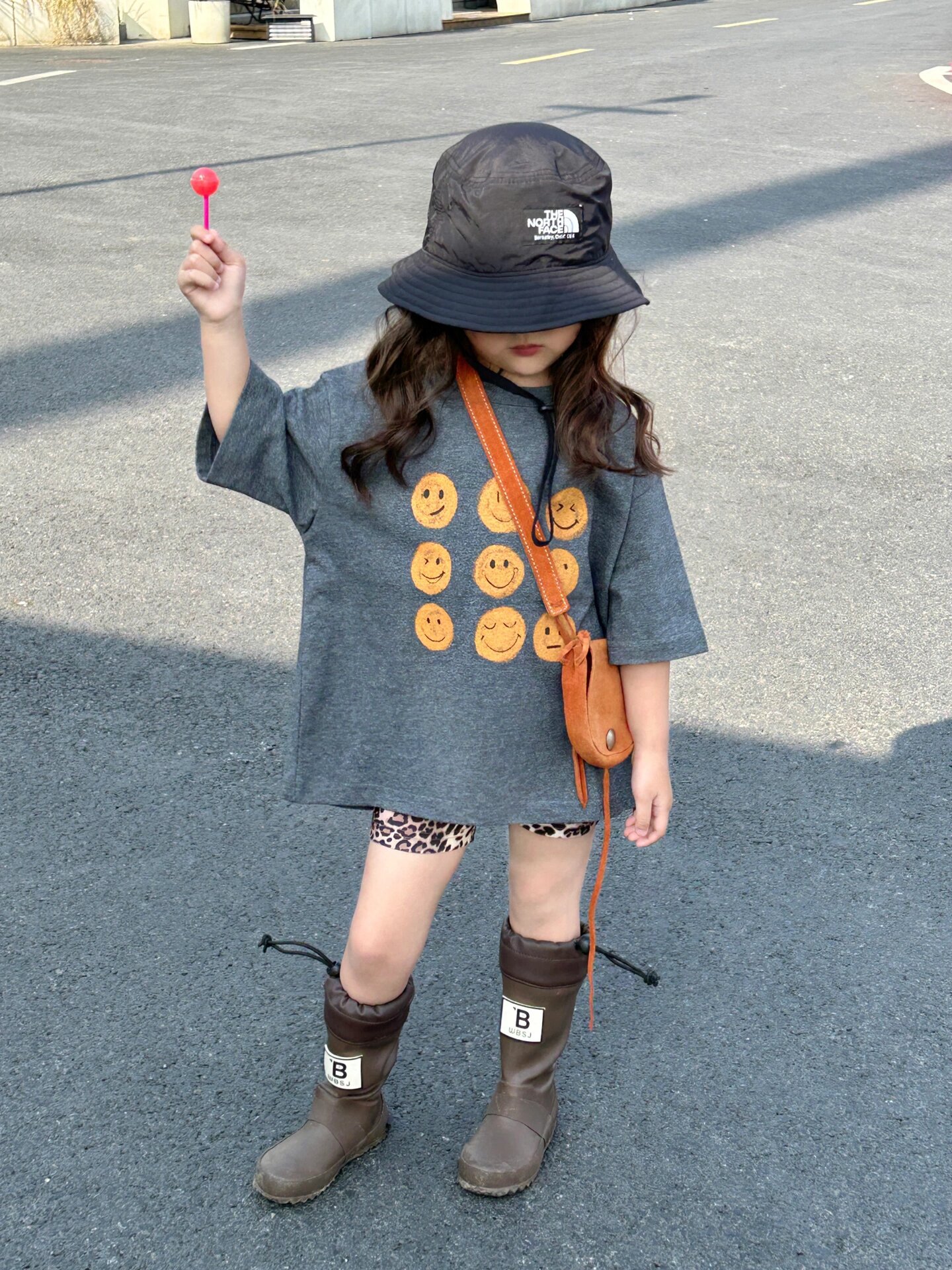 2026 한국판 여름 신상 남녀 아기 웃는 얼굴 긴 티셔츠, 루즈핏 중간 길이 스웨트셔츠, 스타일리시