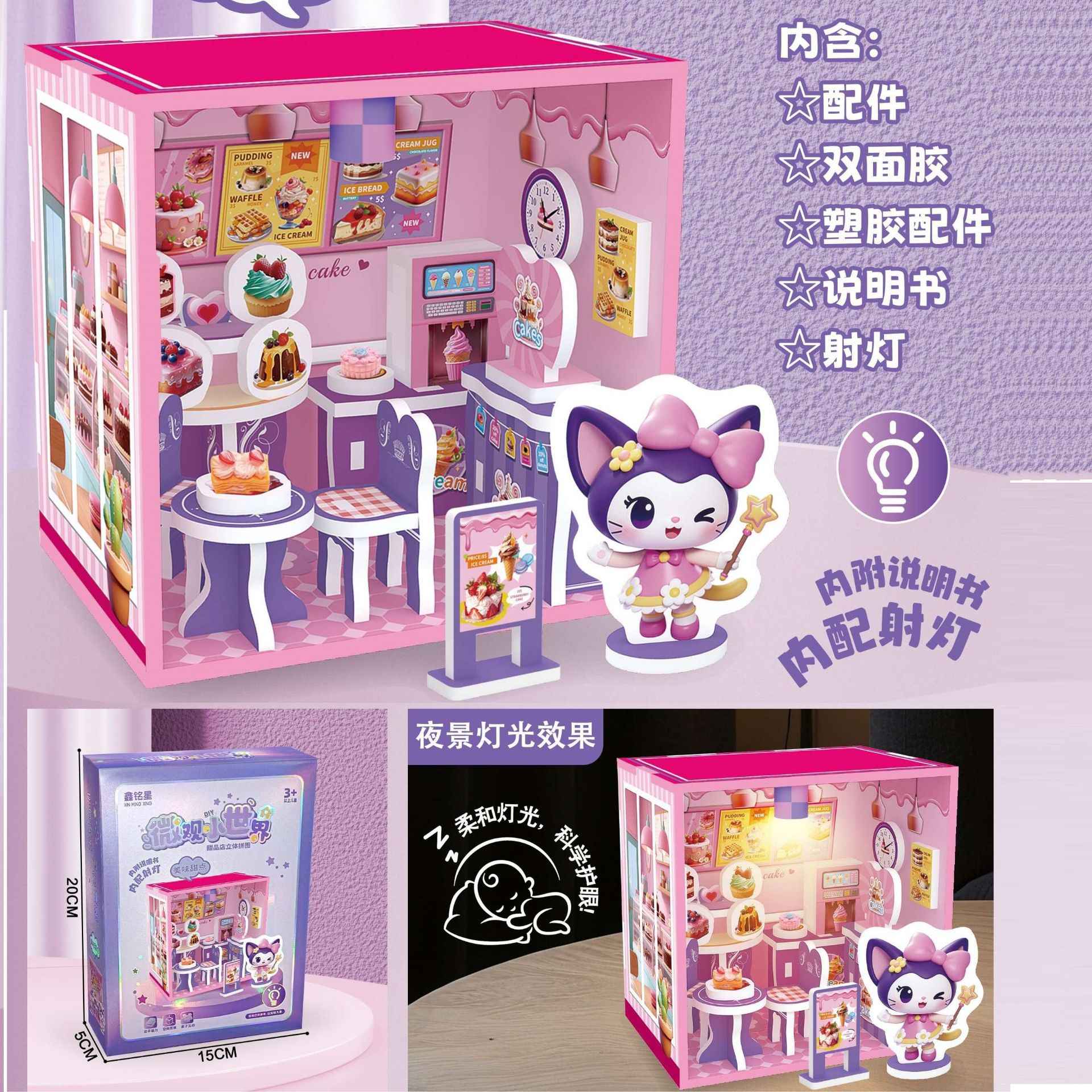 • 조명이 있는 DIY 입체 조립 소형 장면 디저트 하우스