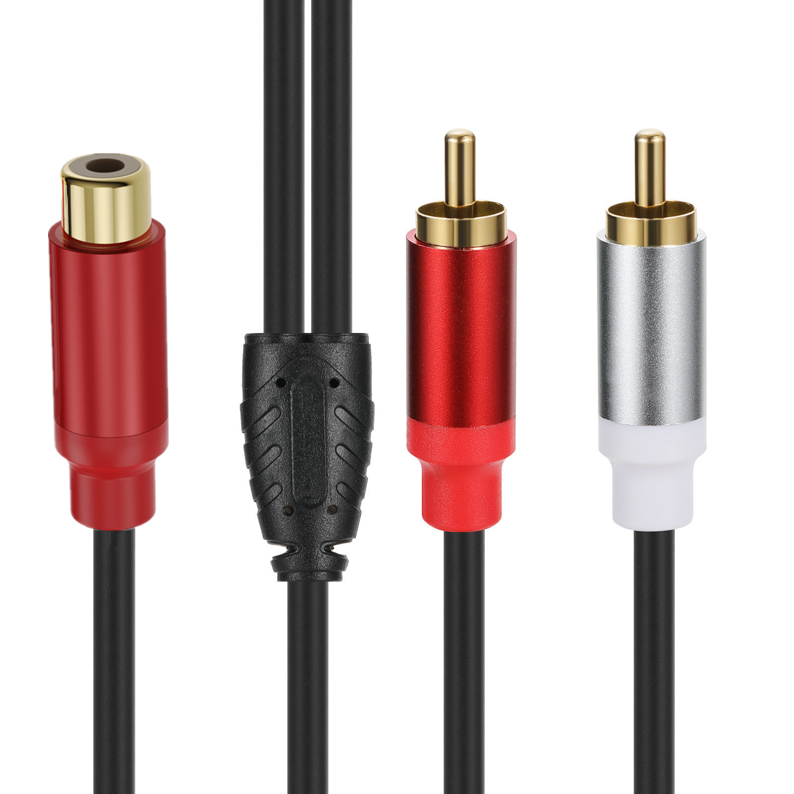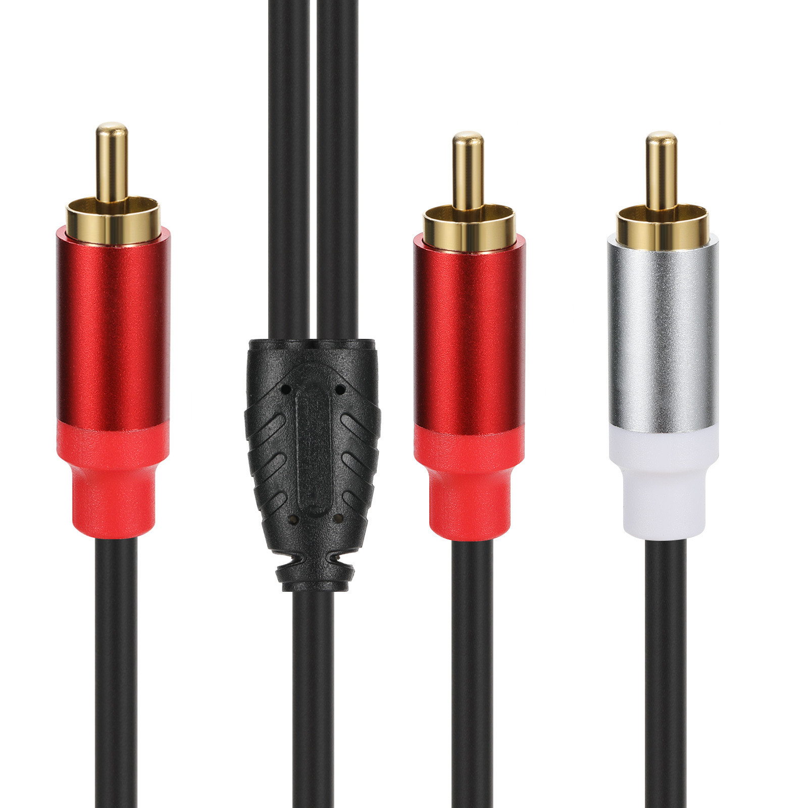 超软手感线体纯铜线芯加金属外壳镀金连接器 1RCA转2RCA音频连接线,0.3米;