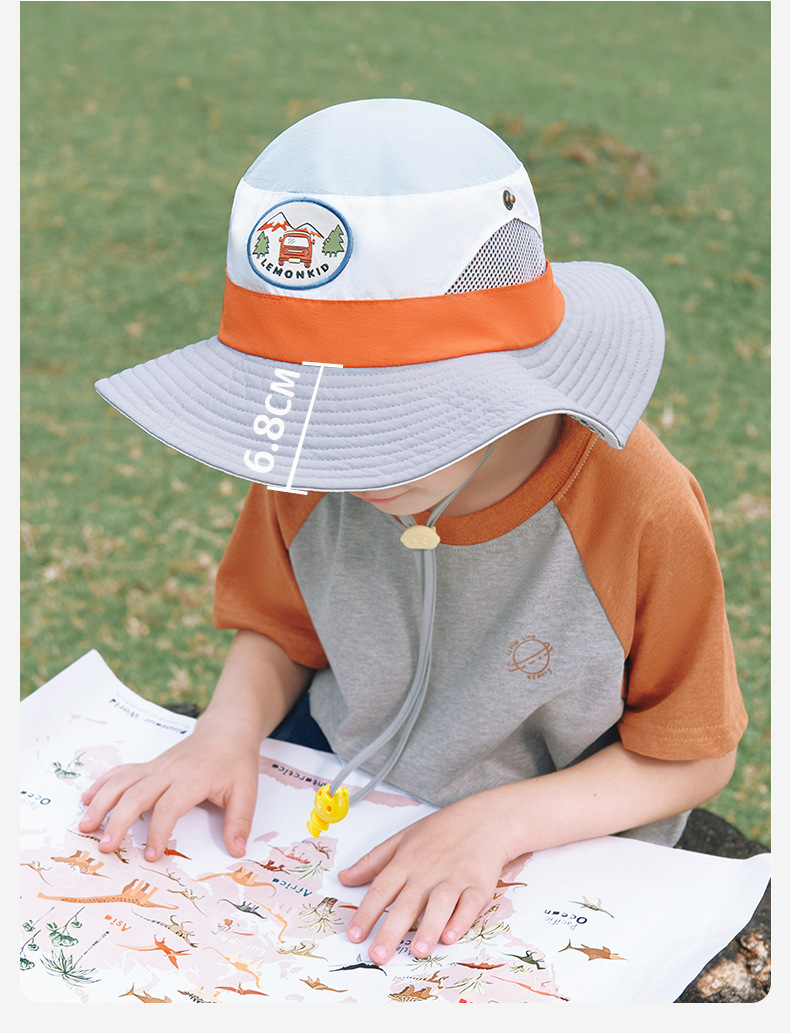 레몬 베이비 여름 어린이 선 스크린 모자 소녀와 소년 큰 모자 브림 UV 보호 태양 모자 태양 모자 어부 모자스토어 가기