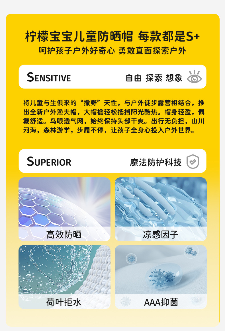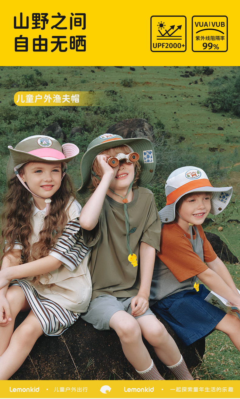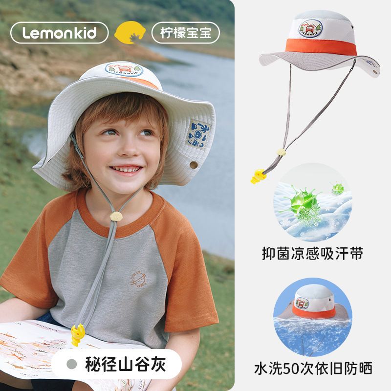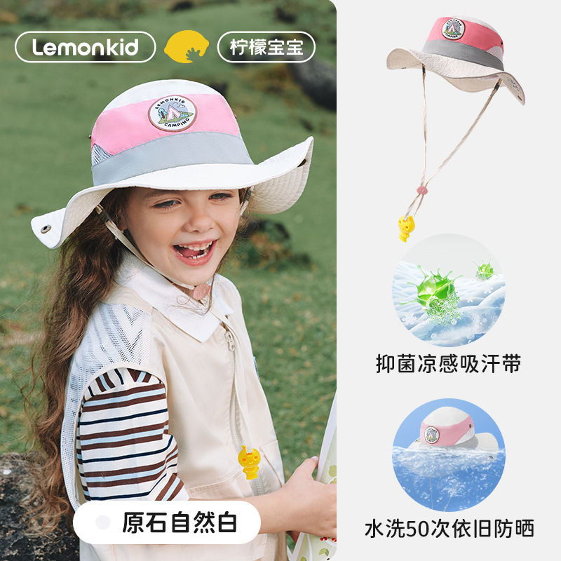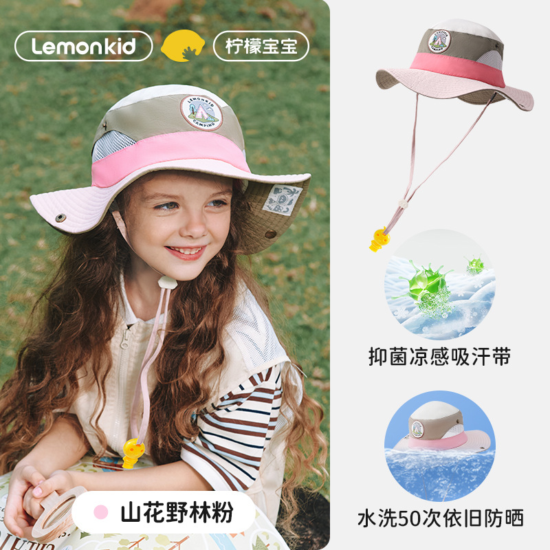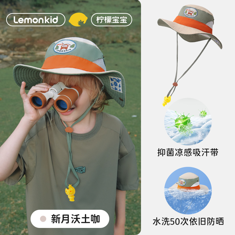 레몬 베이비 여름 어린이 선 스크린 모자 소녀와 소년 큰 모자 브림 UV 보호 태양 모자 태양 모자 어부 모자