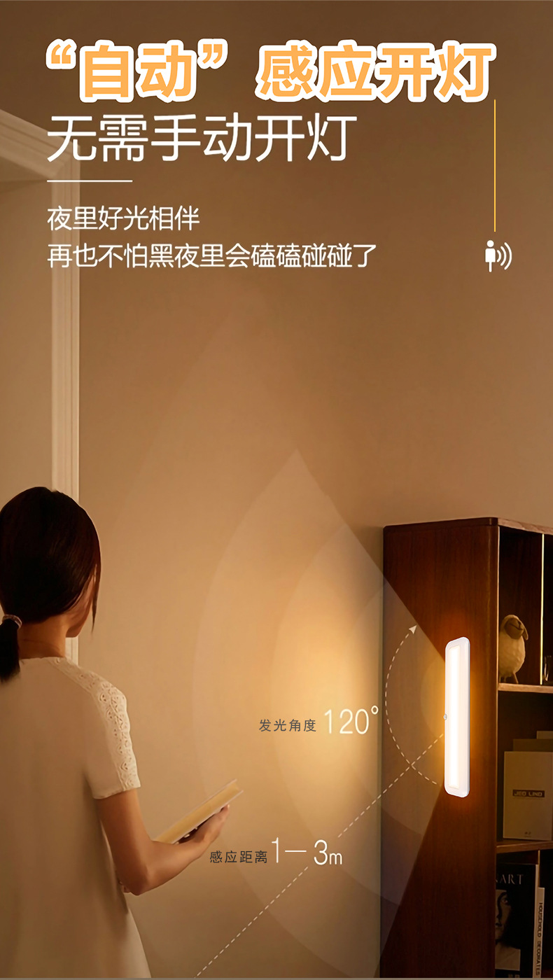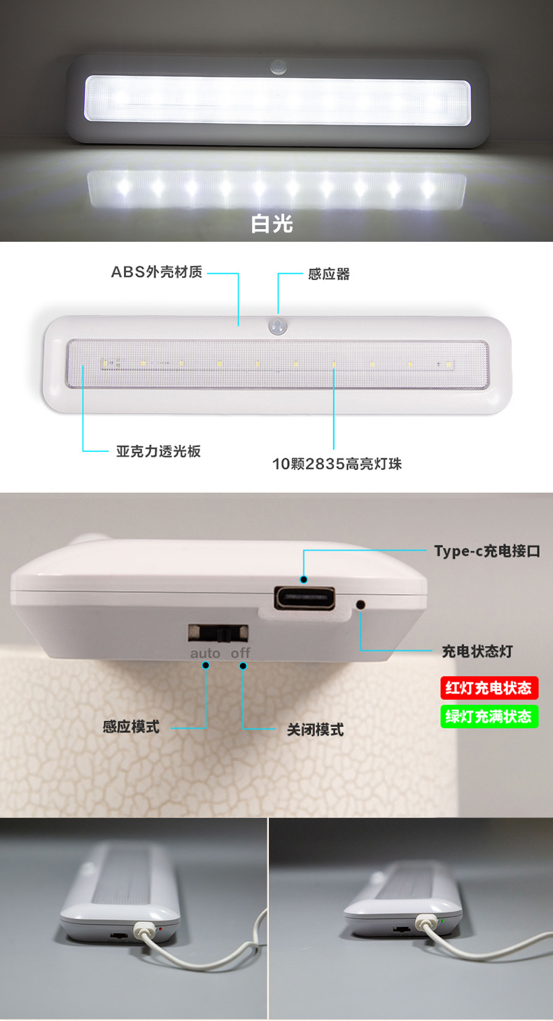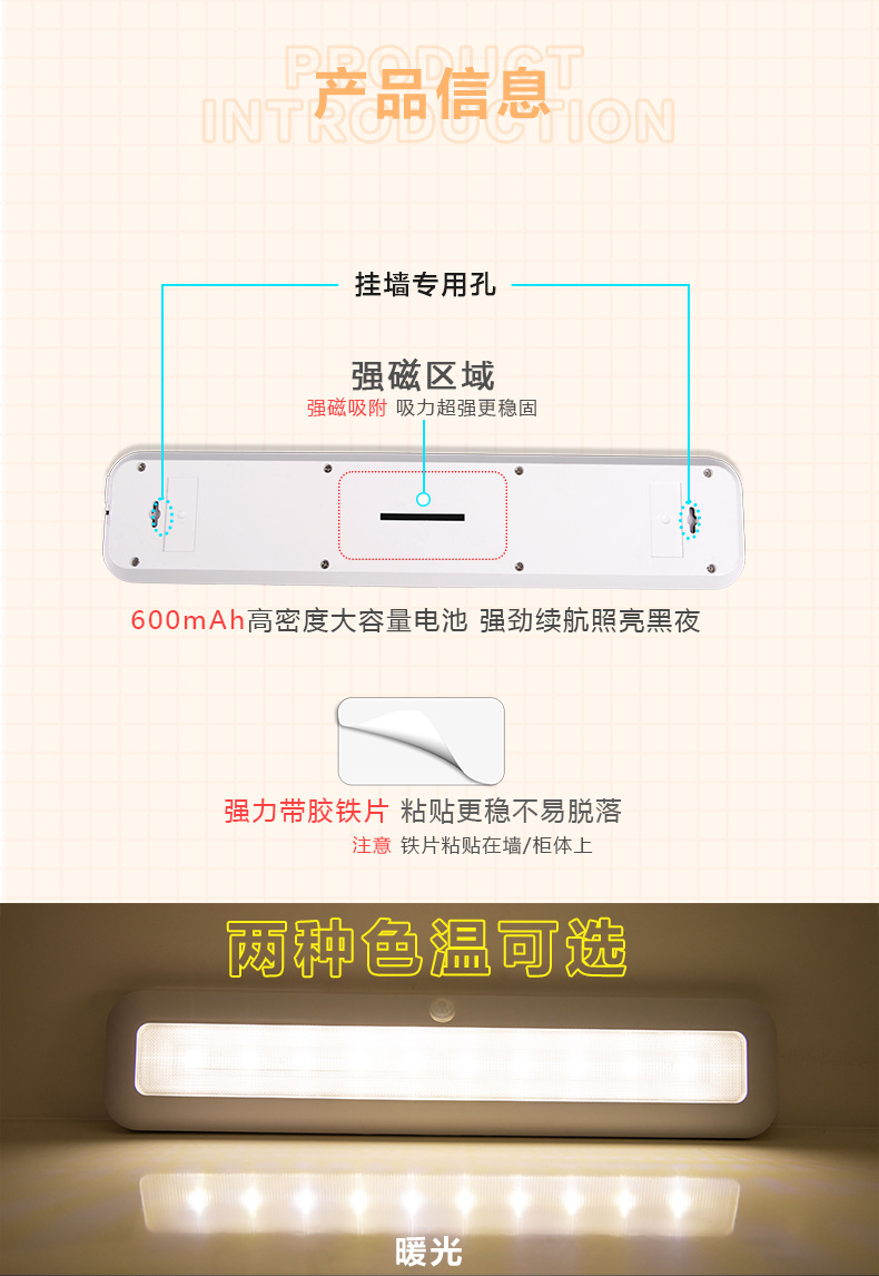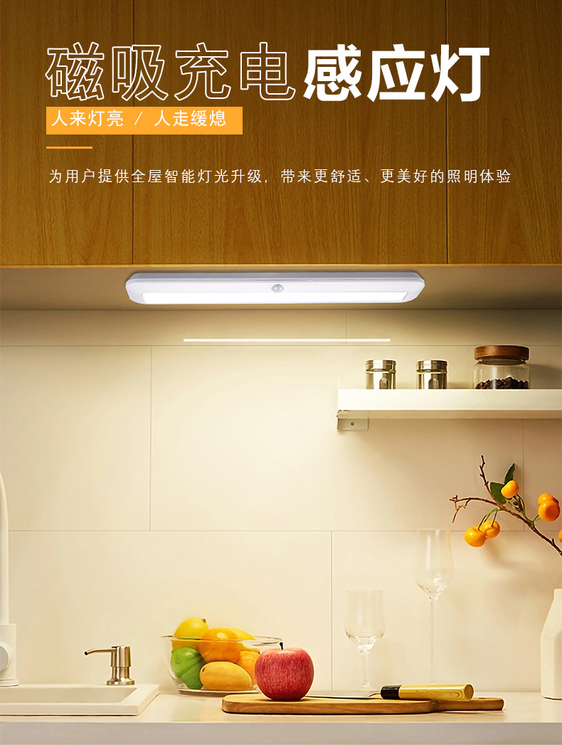 지능형 창조적 인 인체 유도 라이트 바 배선 무료 자기 흡입 충전 야간 조명 옷장 디스플레이 캐비닛 led 캐비닛