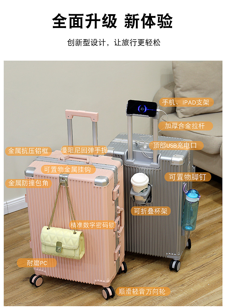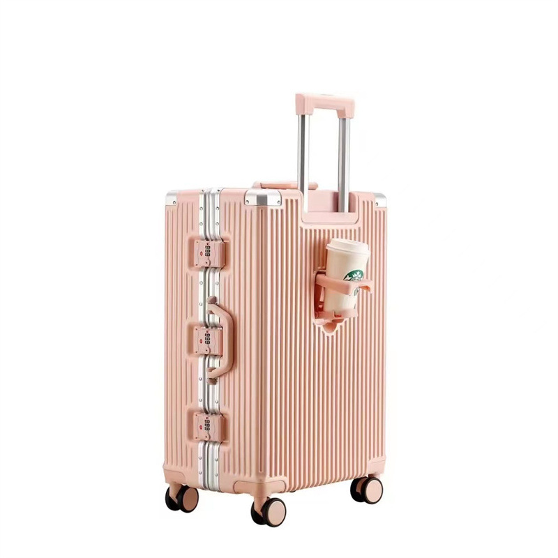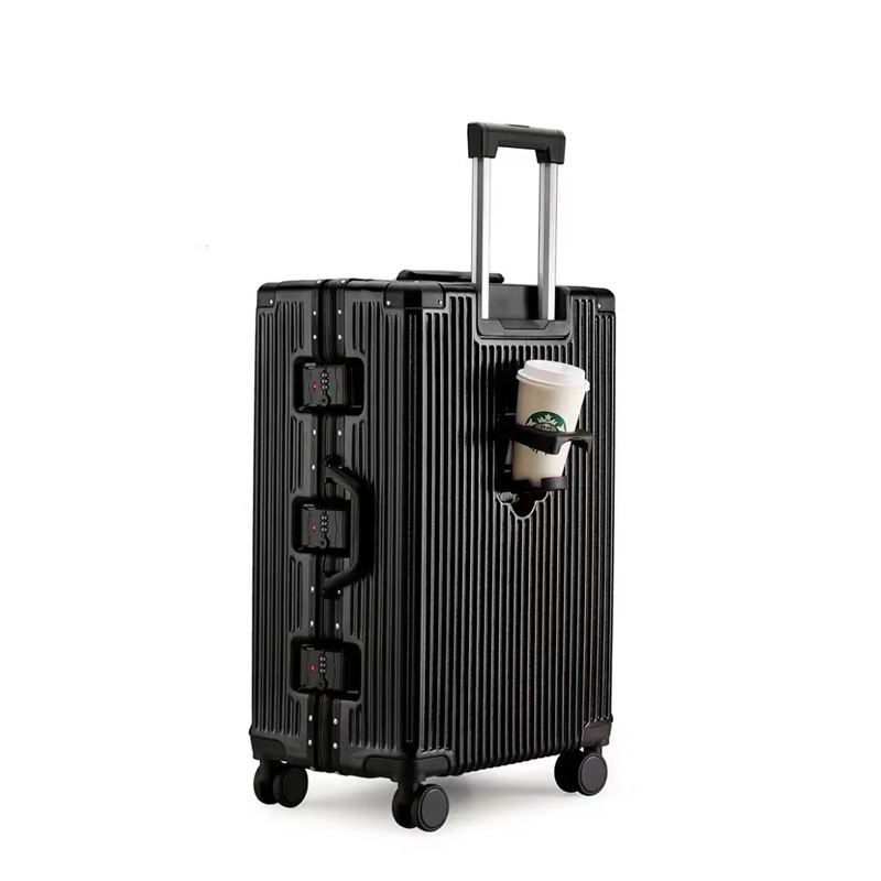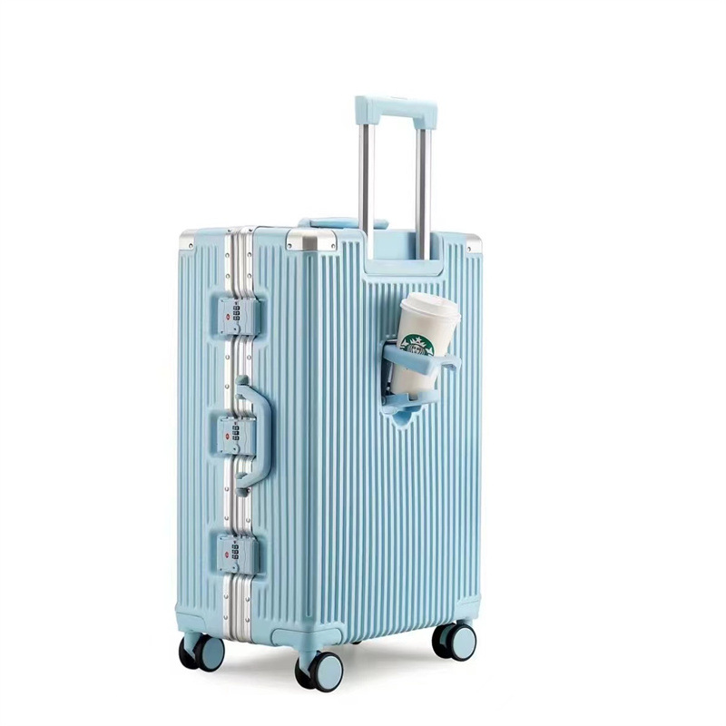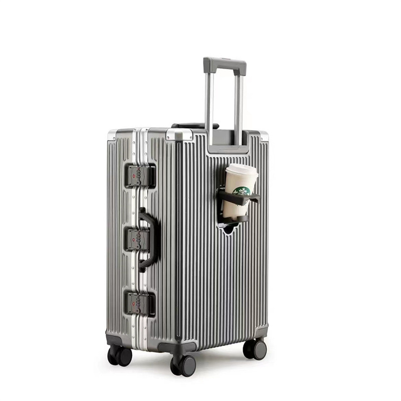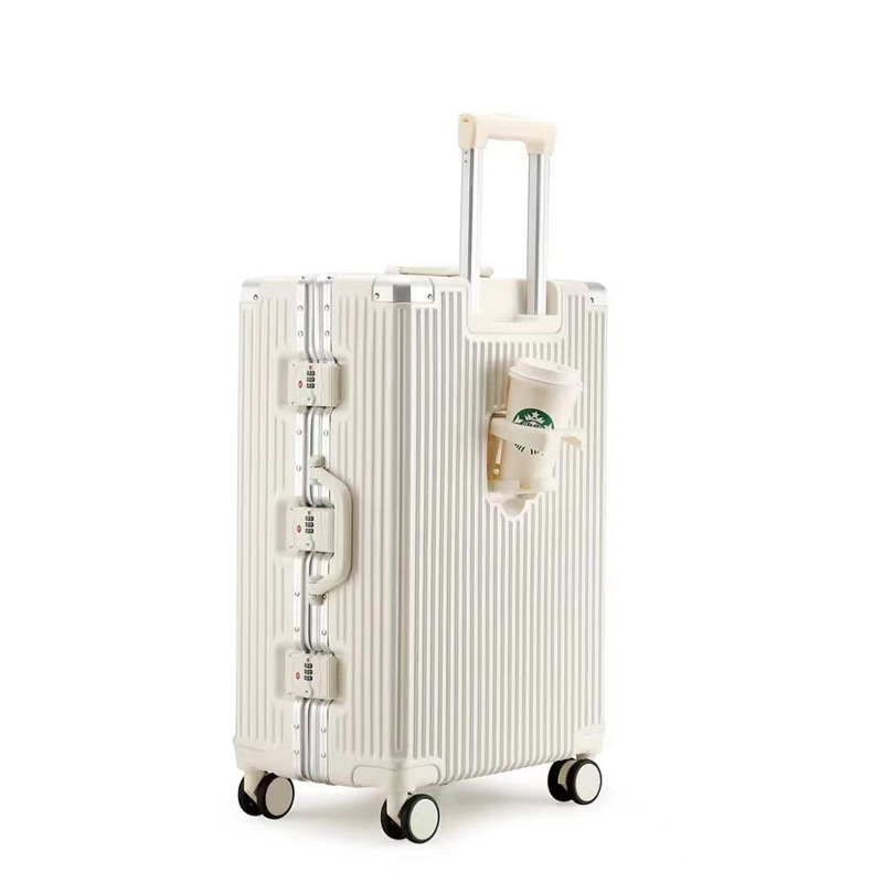가죽 여행 가방 20inch 소형 여행 가방, 트롤리 케이스, 기내용 여행 가방, 컵홀더가 있는 여행 가방, 충전식 비밀번호 잠금 케이스, 알루미늄 프레임스토어 가기