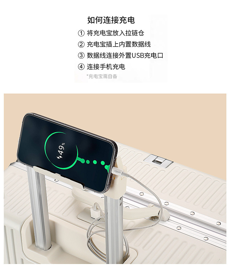 가죽 여행 가방 20inch 소형 여행 가방, 트롤리 케이스, 기내용 여행 가방, 컵홀더가 있는 여행 가방, 충전식 비밀번호 잠금 케이스, 알루미늄 프레임