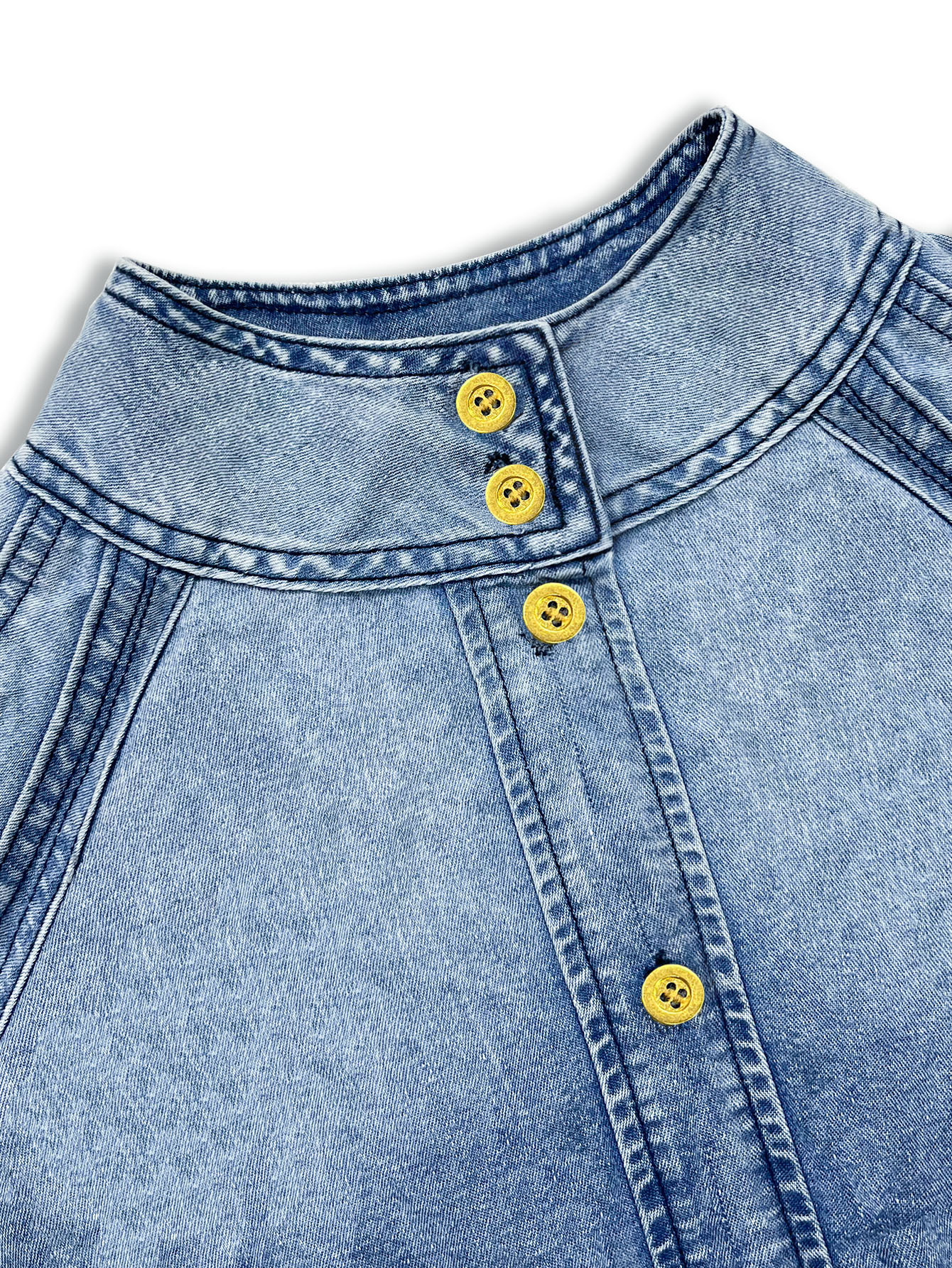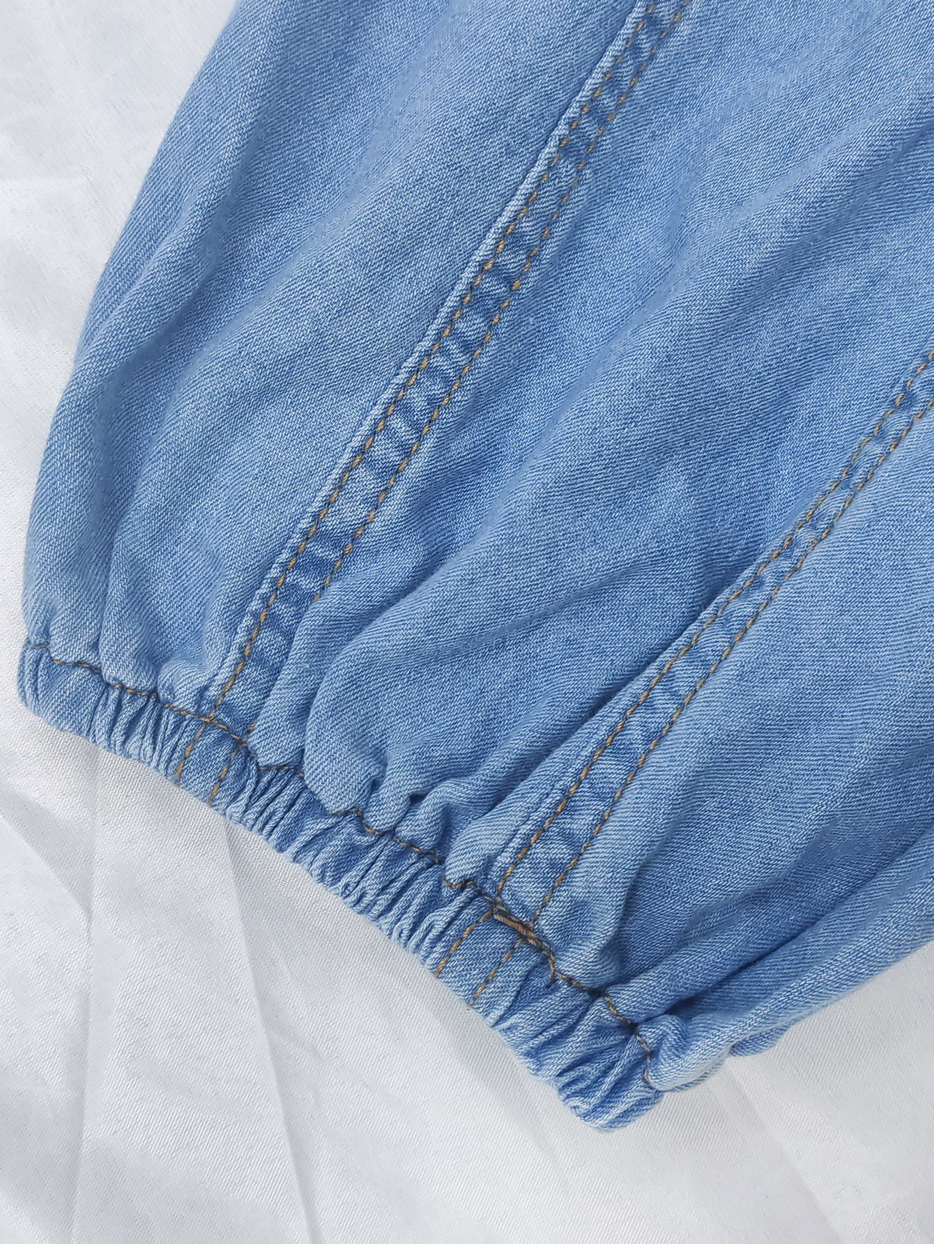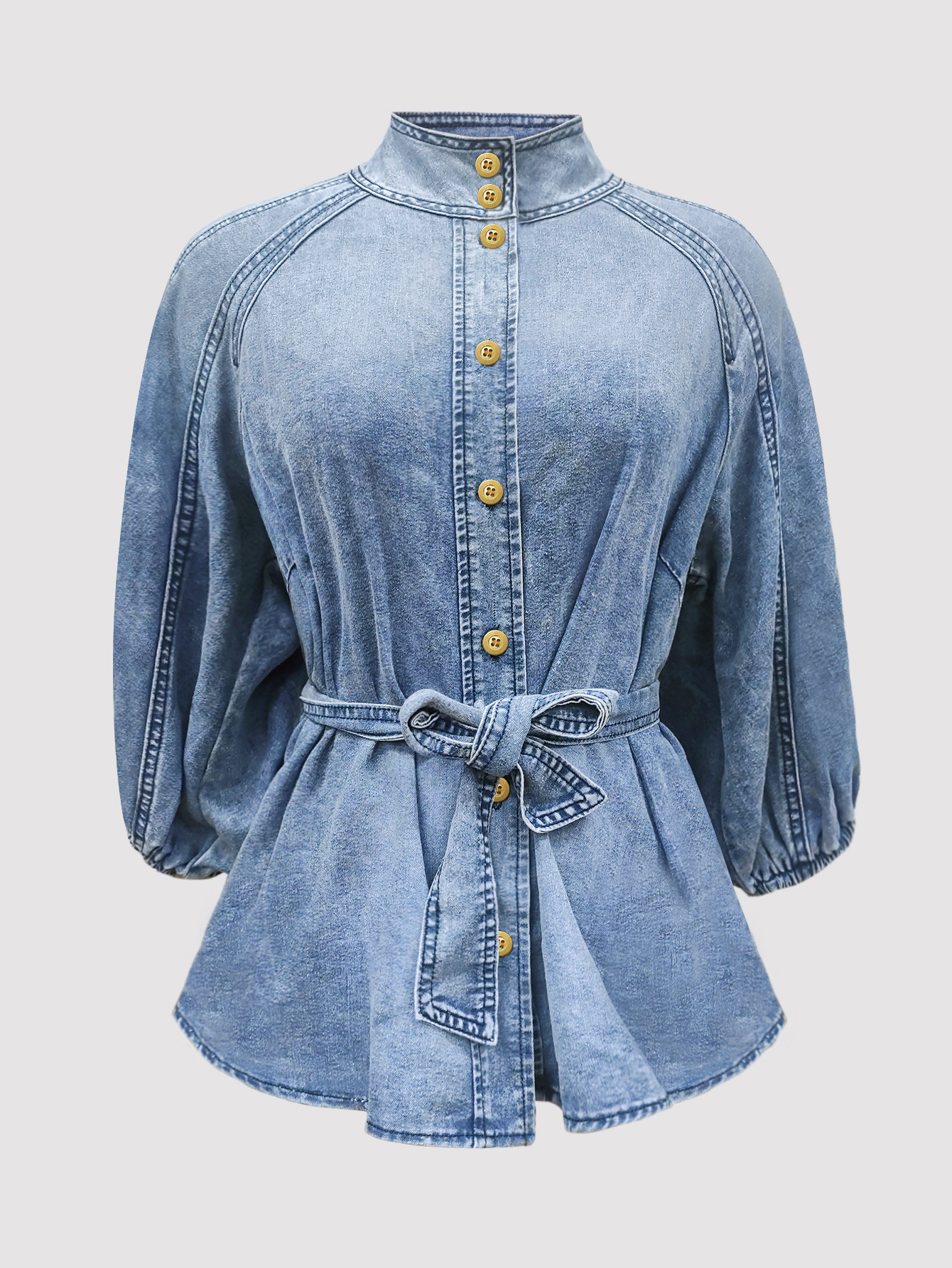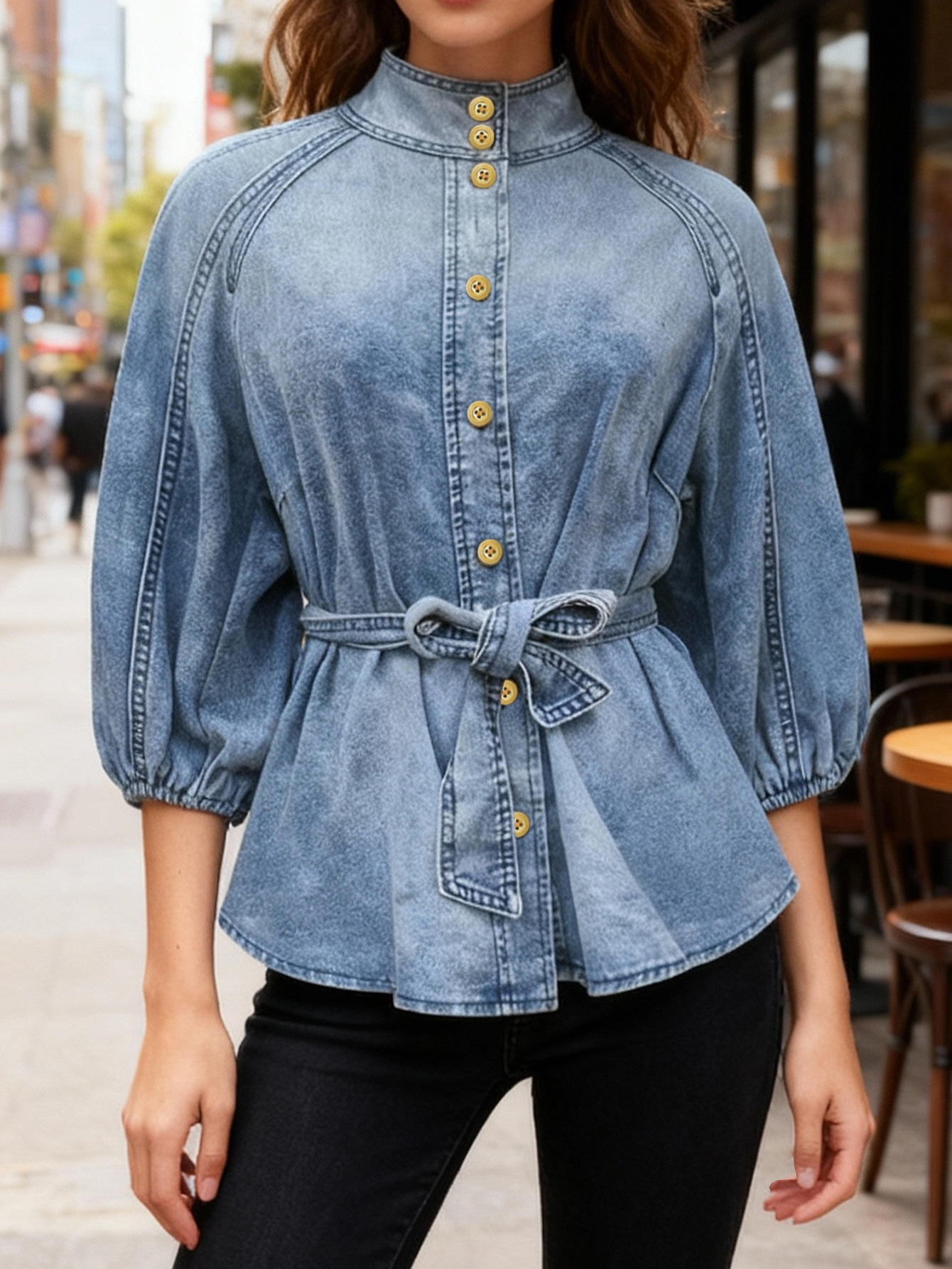 국경 2024 새로운 아마존 데님 최고 그라디언트 캐주얼 느슨한 높은 목 우아한 반소매 거품 자수 여성스토어 가기