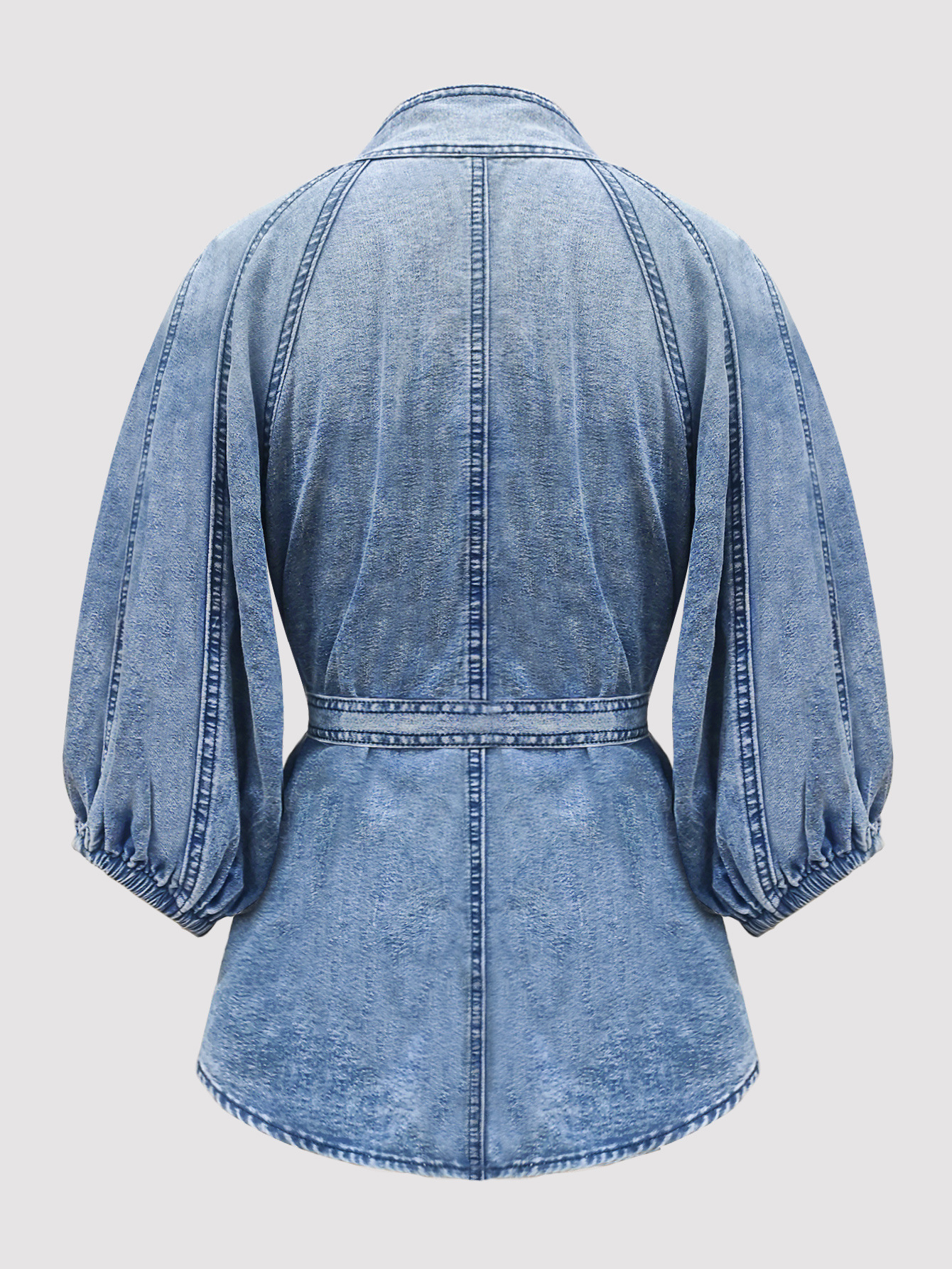 국경 2024 새로운 아마존 데님 최고 그라디언트 캐주얼 느슨한 높은 목 우아한 반소매 거품 자수 여성