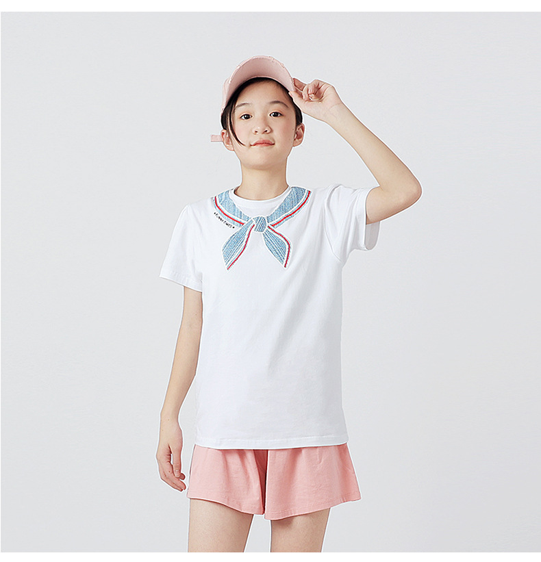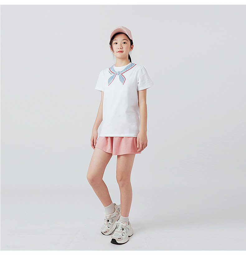 여름 한국의 새로운 소녀 스포츠 반팔 여성 아기 귀여운 버블 슬리브 탑 어린이 반팔 티셔츠 도매스토어 가기