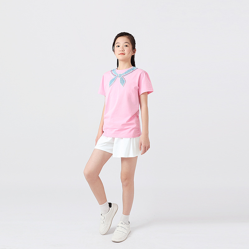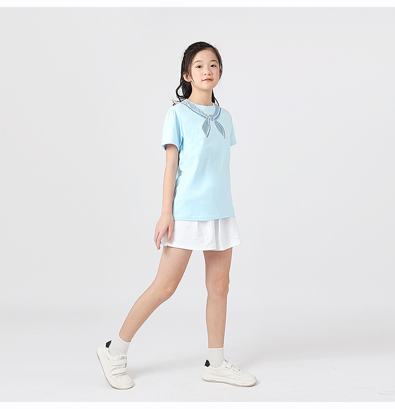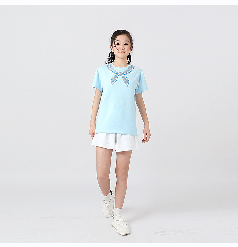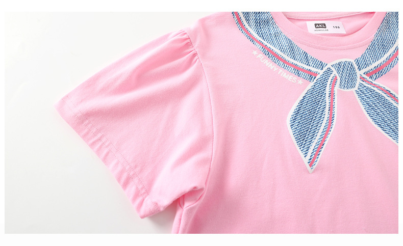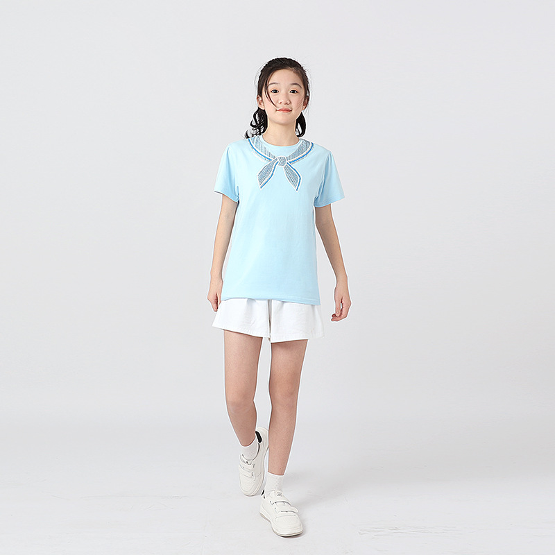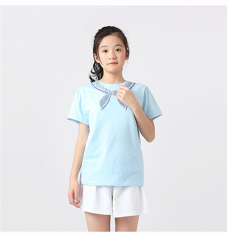 여름 한국의 새로운 소녀 스포츠 반팔 여성 아기 귀여운 버블 슬리브 탑 어린이 반팔 티셔츠 도매