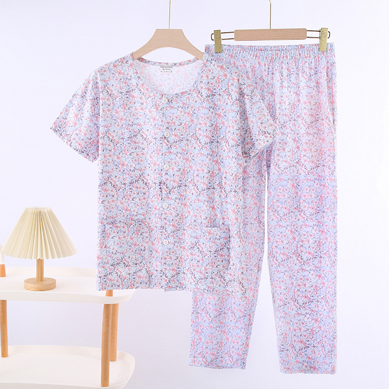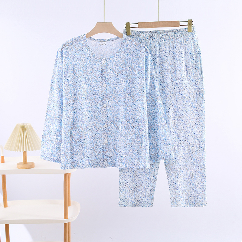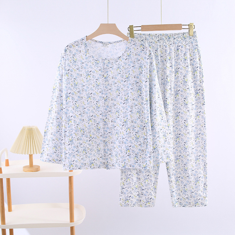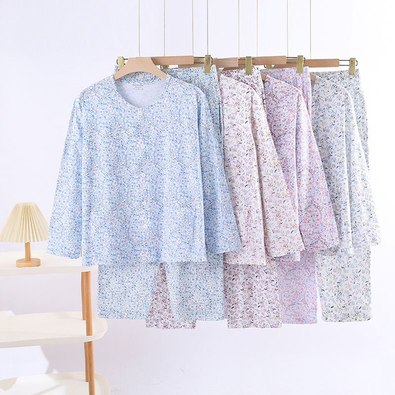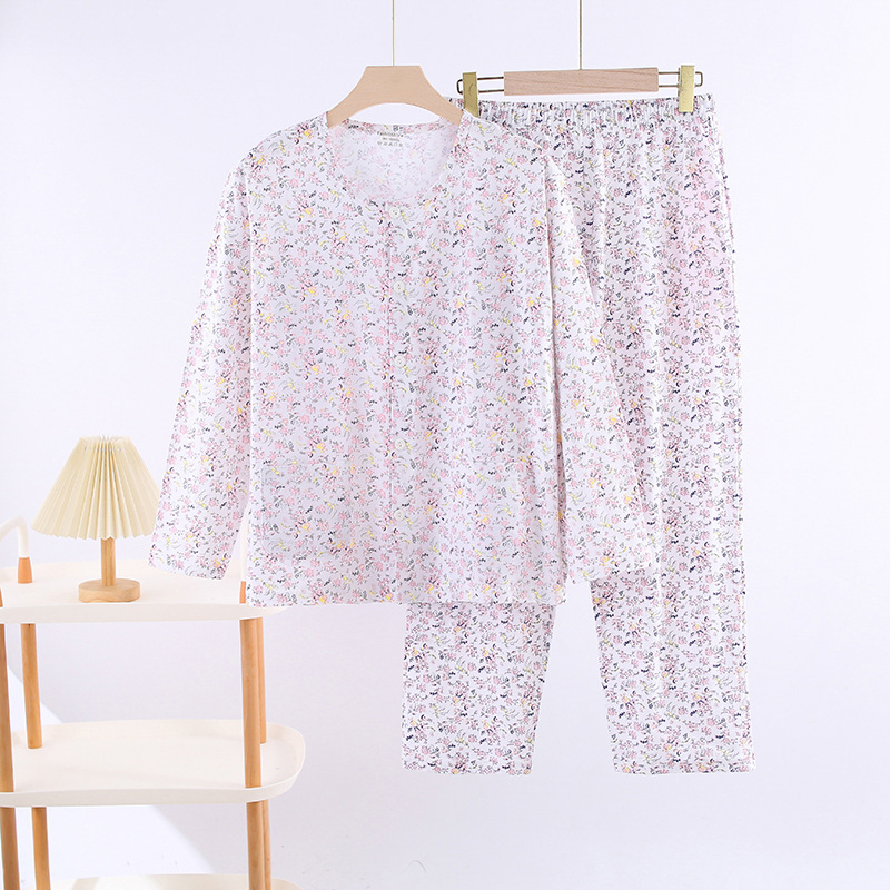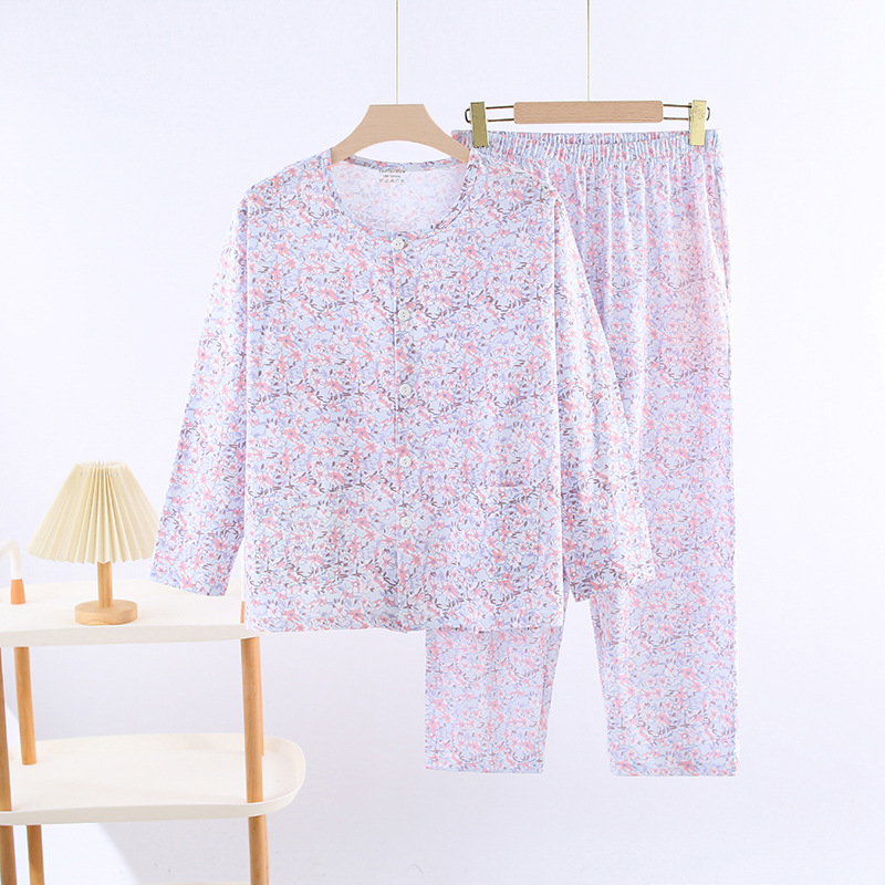 중년 및 노인 여성면 파자마 세트 여름 할머니는 면화 홈 착용 어머니 긴팔 카디건 노부인스토어 가기