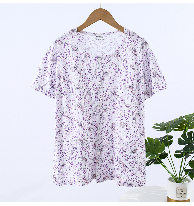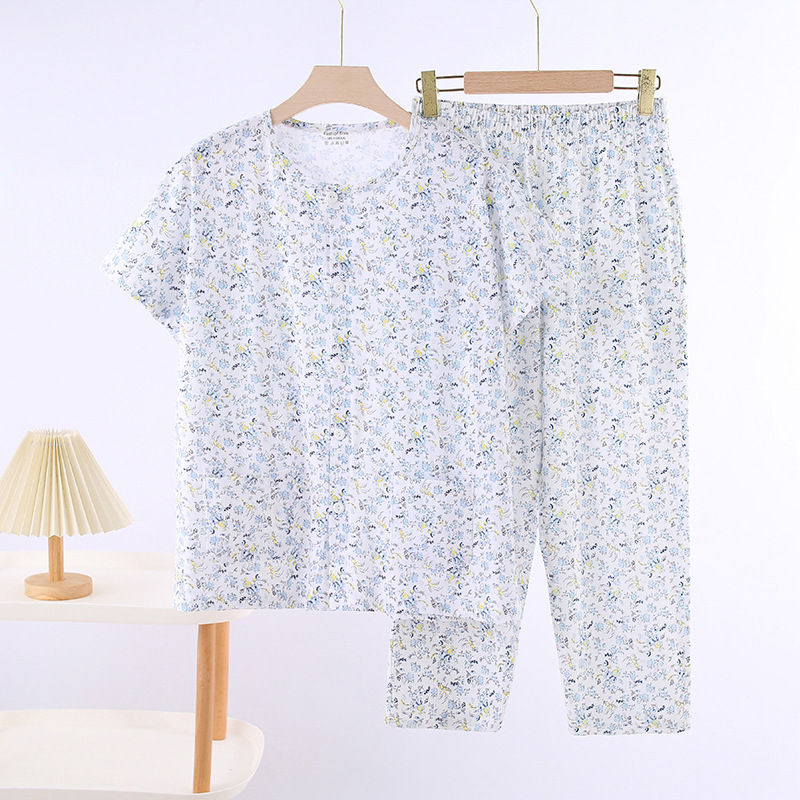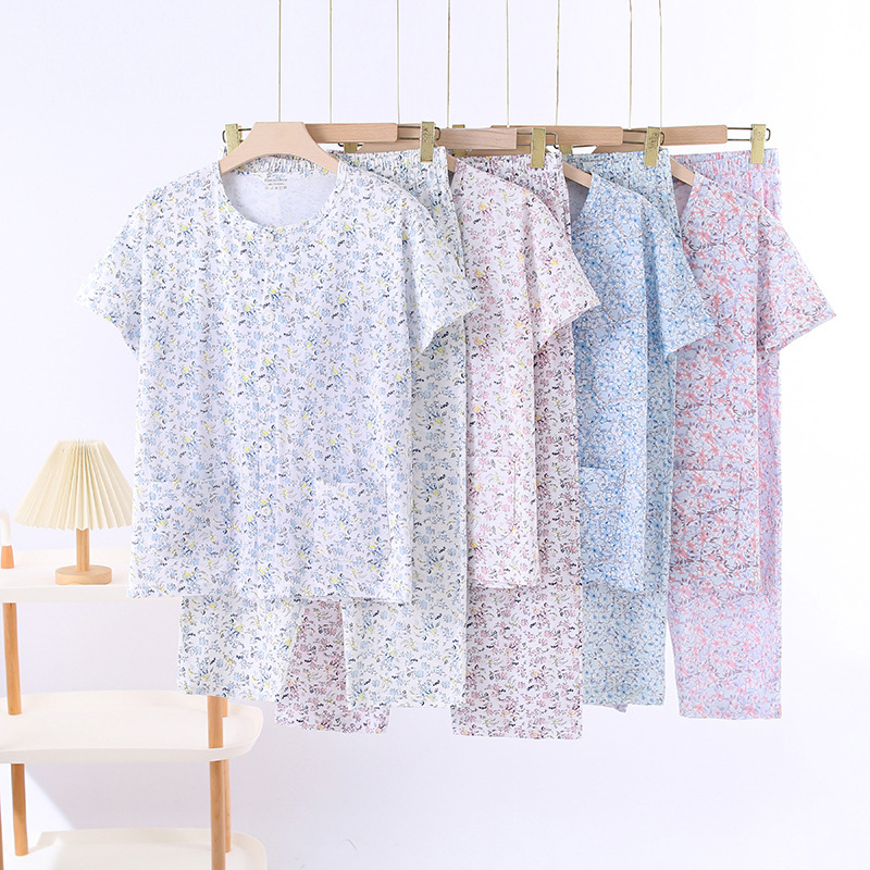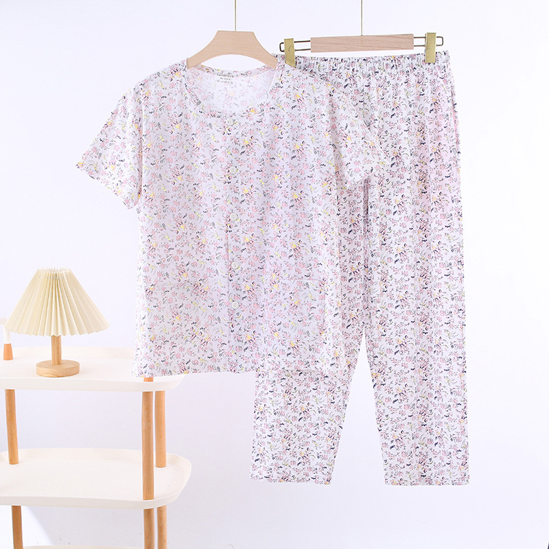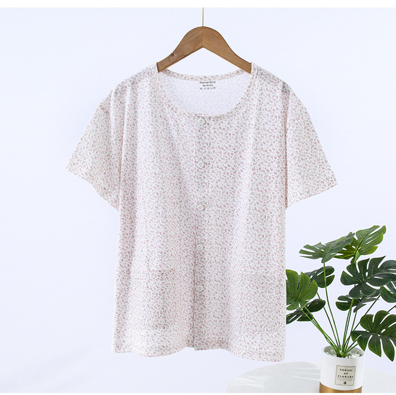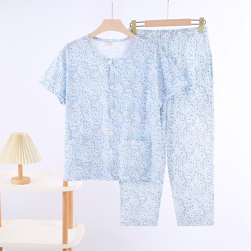 중년 및 노인 여성면 파자마 세트 여름 할머니는 면화 홈 착용 어머니 긴팔 카디건 노부인스토어 가기