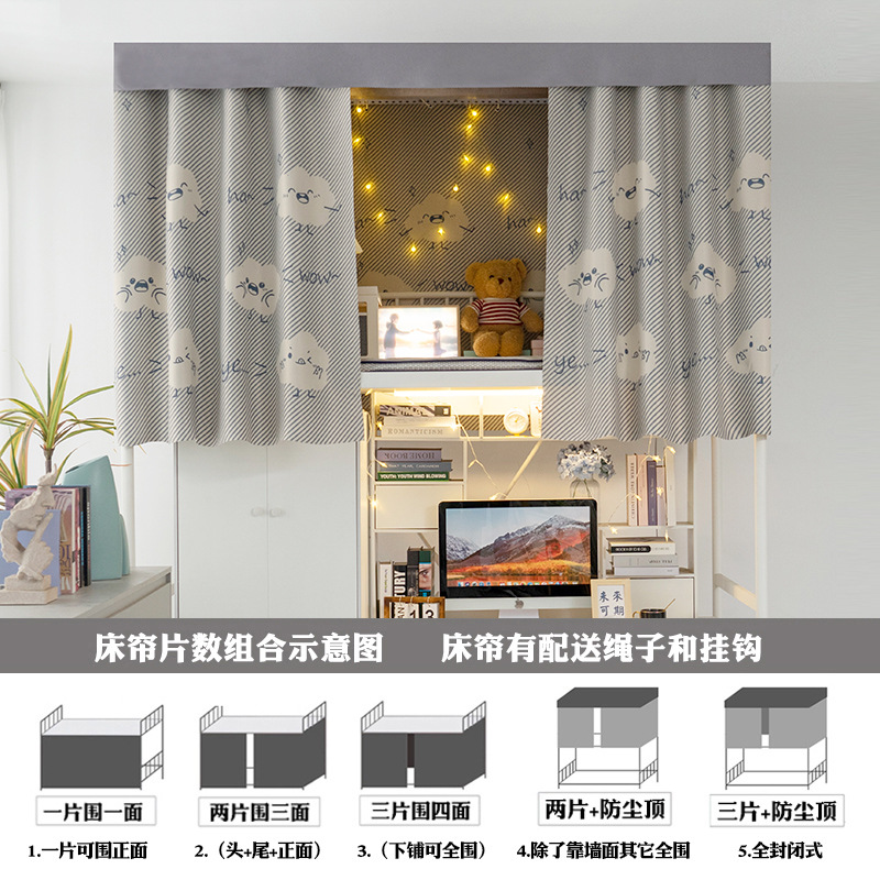 학생 기숙사 침대 커튼 두꺼운 그늘 위쪽과 아래쪽 이층 커버 커튼 남성 및 여성 침실 싱글 침대 인클로저 천 침대 커튼스토어 가기