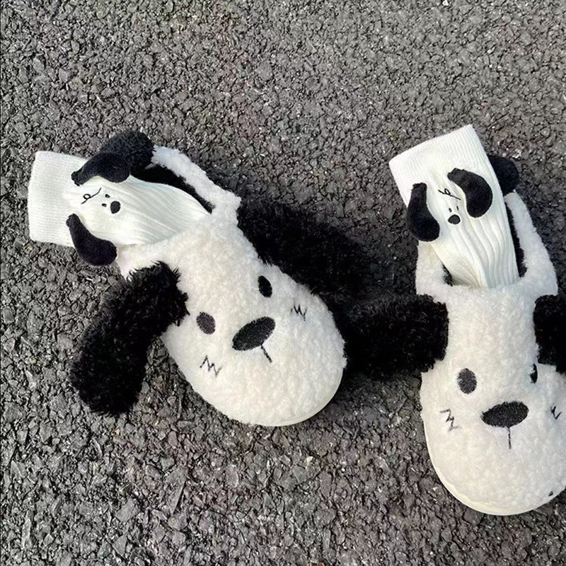 3 차원 인형 양말 여성의 가을과 겨울 만화 일본 검은 귀 강아지 중간 종아리 길이 양말 흰색 양말 올매치 바닥 양말스토어 가기