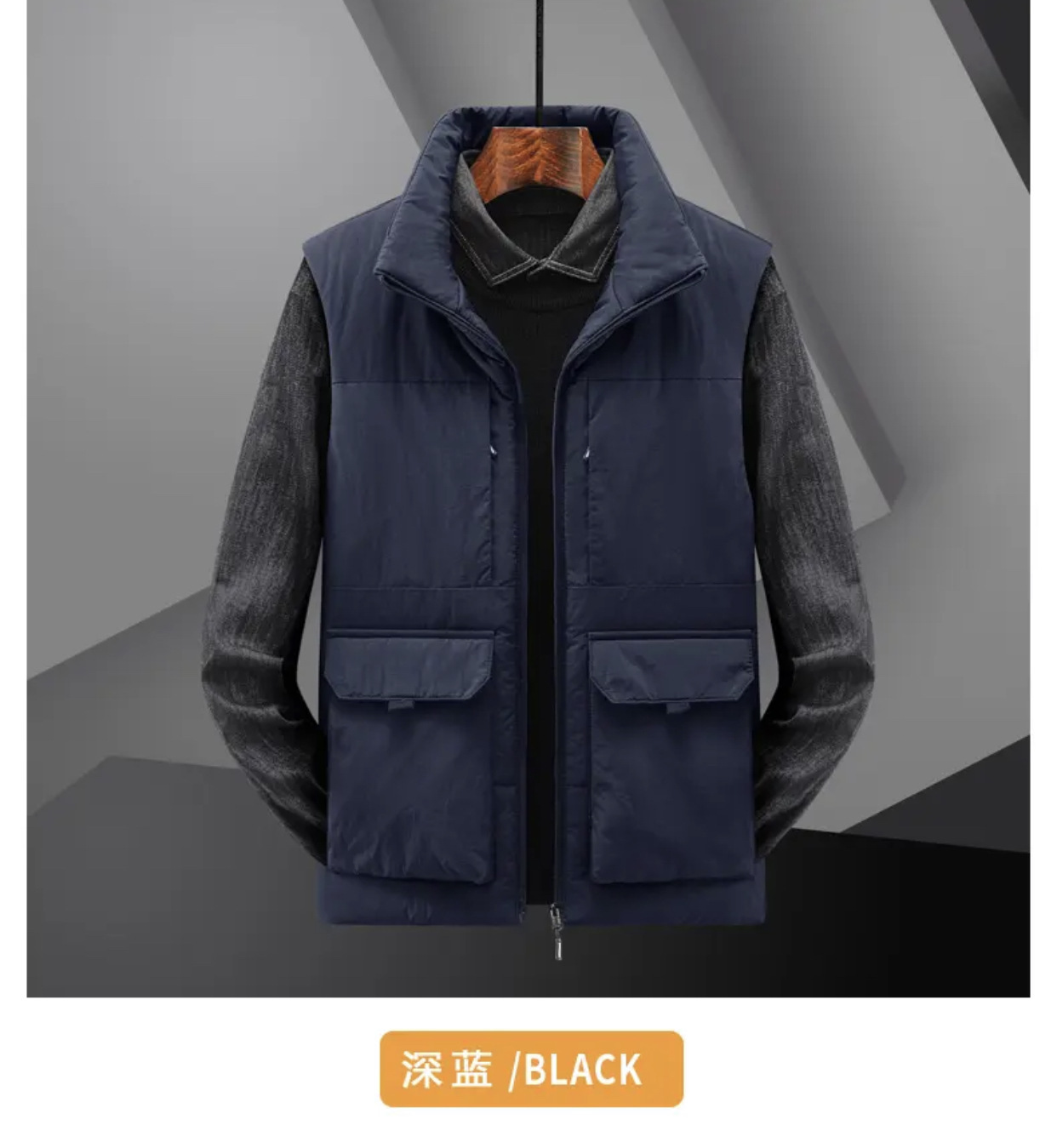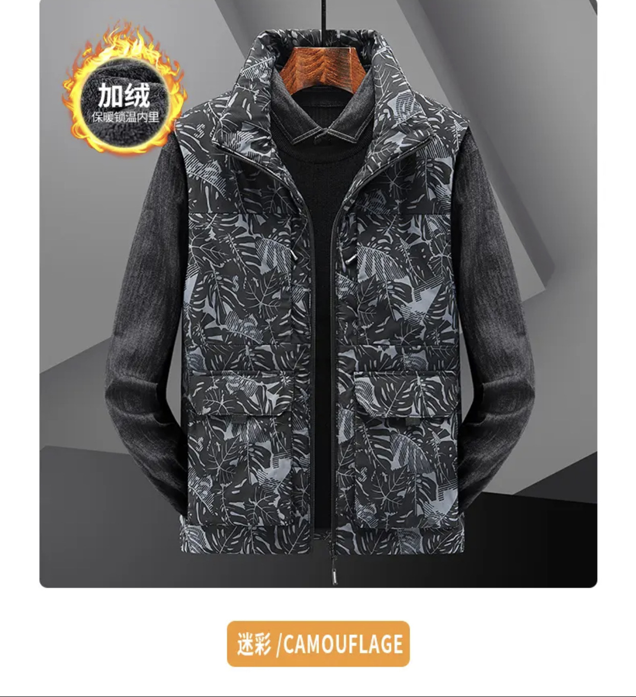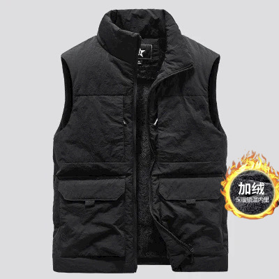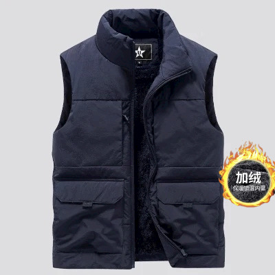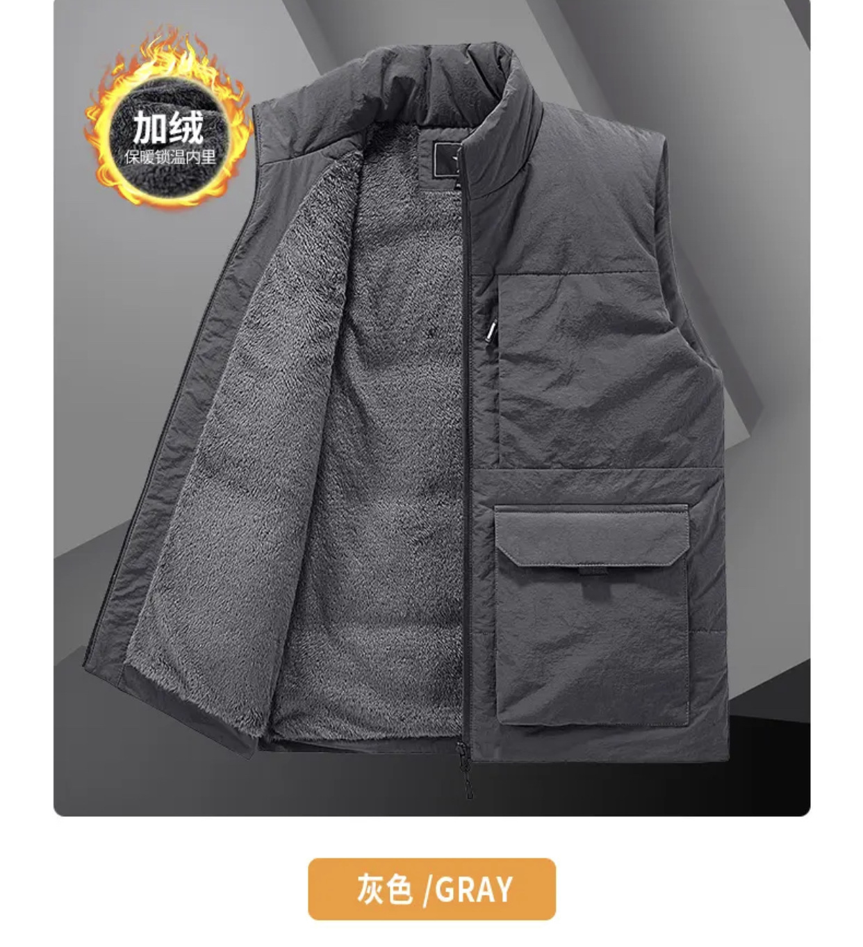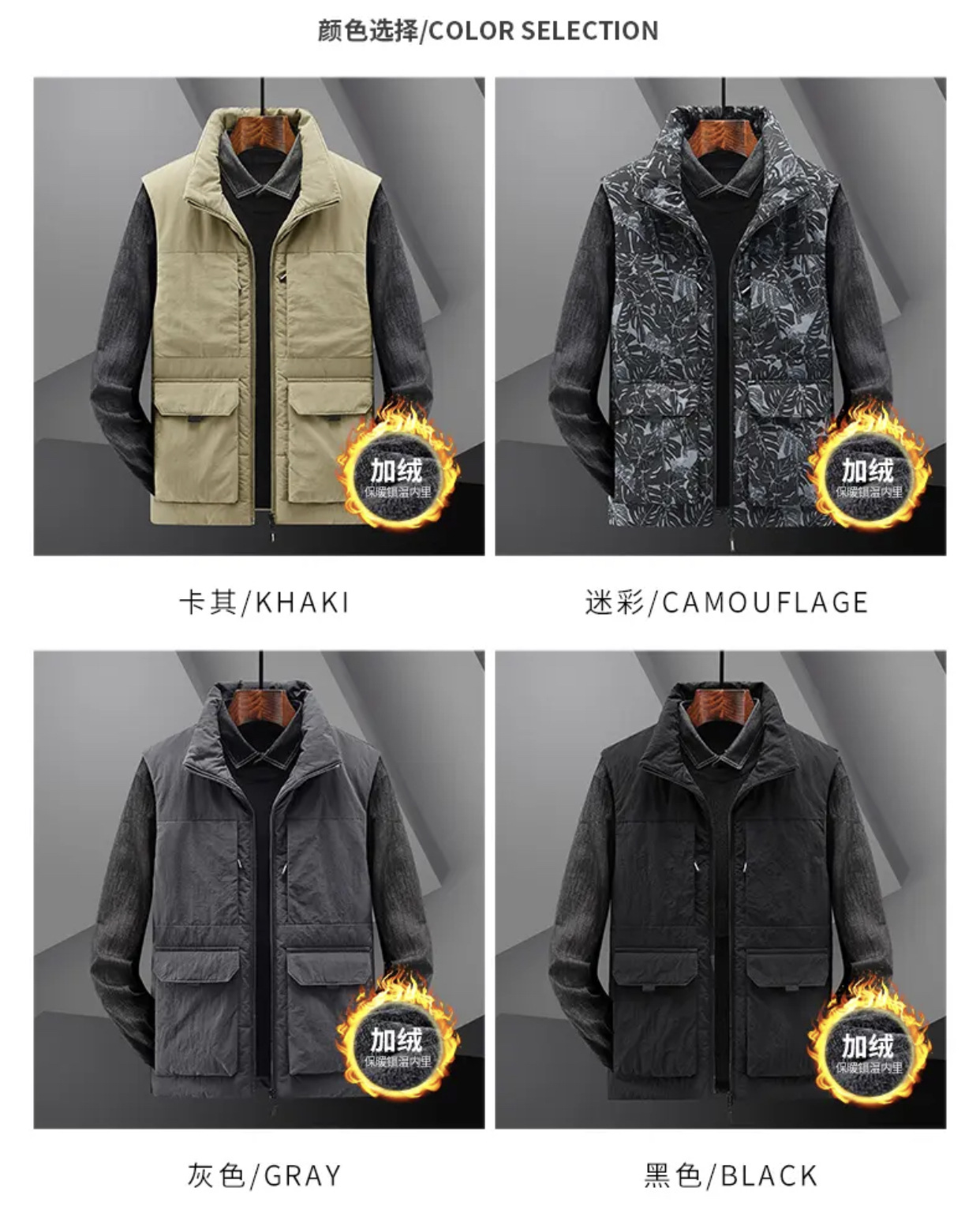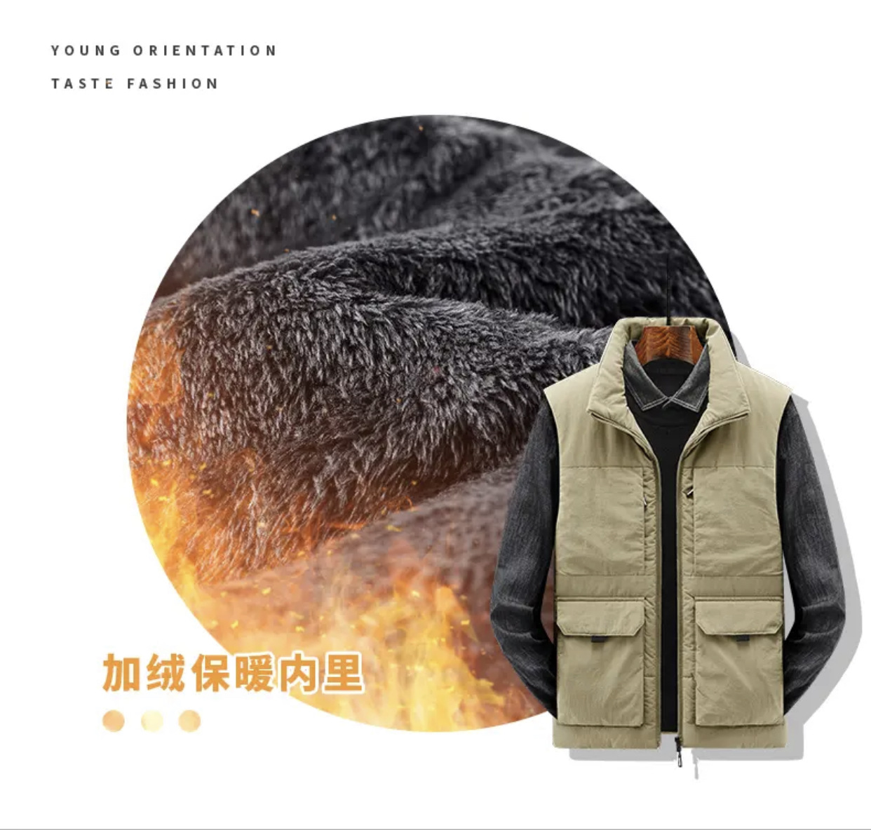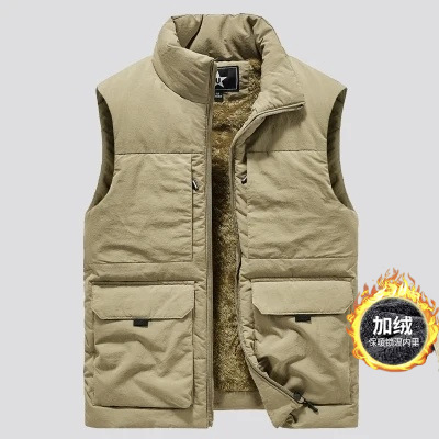 남성용 캐주얼 칼라 조끼 가을 및 겨울 멀티 포켓 기모 두꺼운 작업복 중년 외부 웨이스트 코트 조끼 재킷스토어 가기