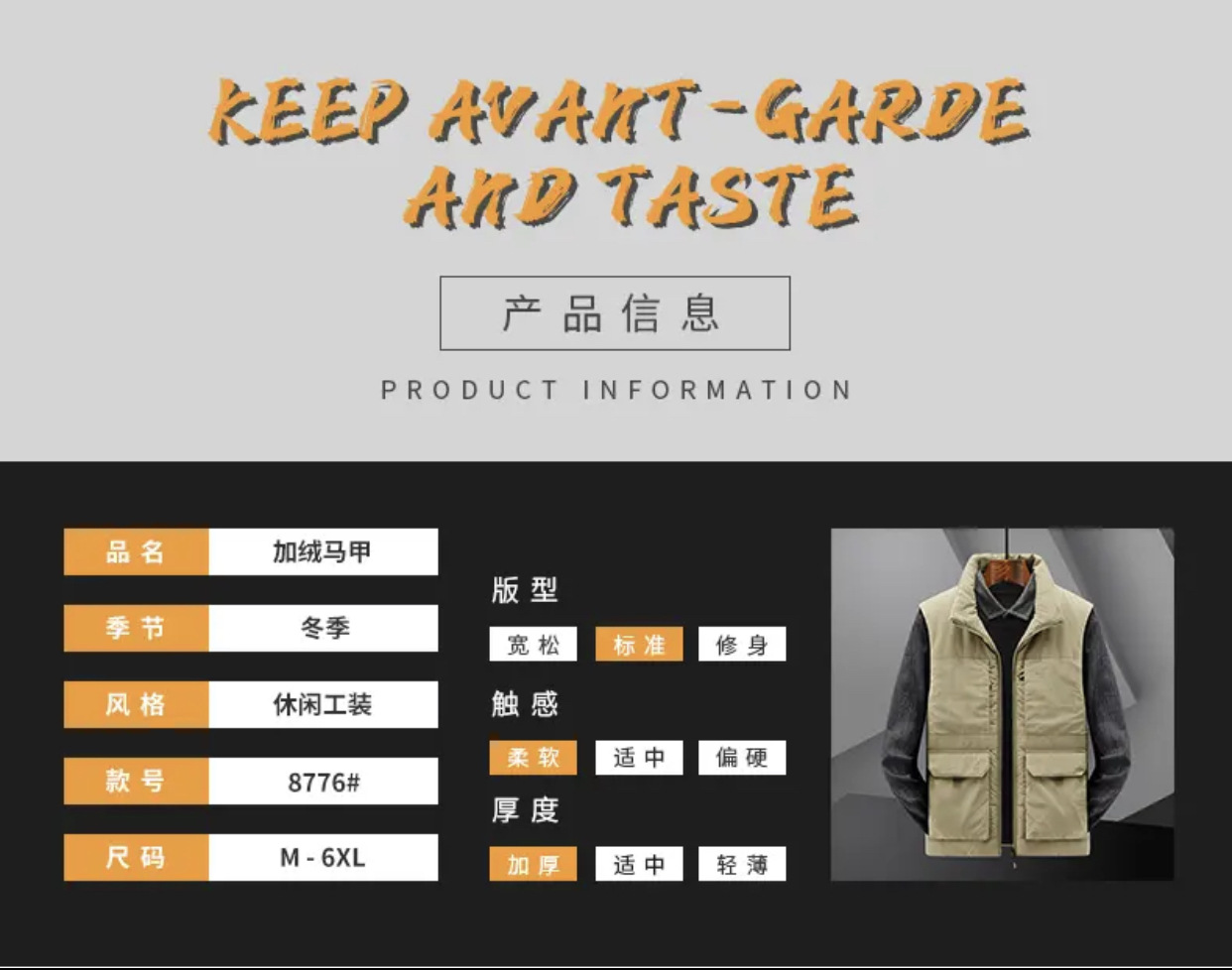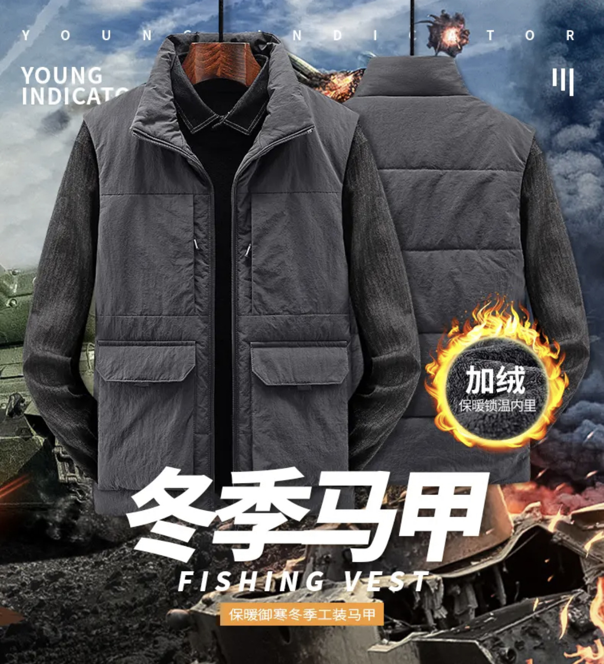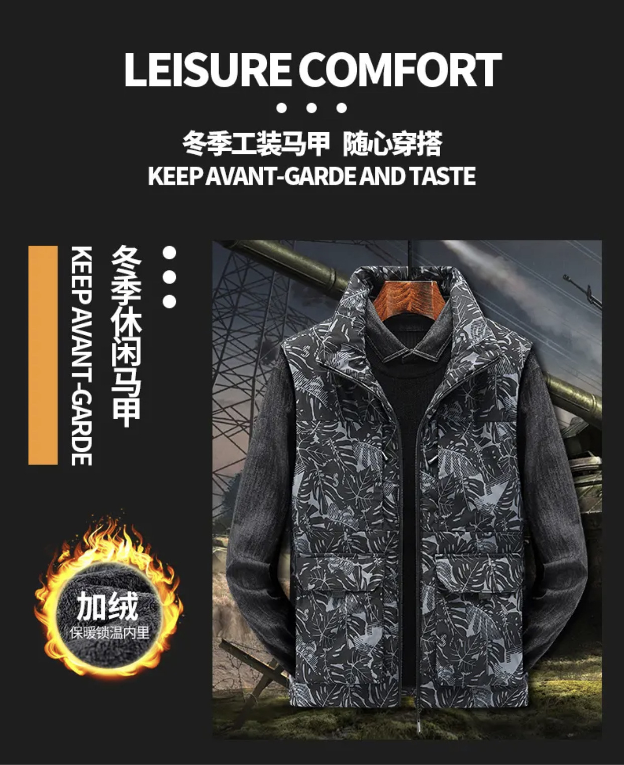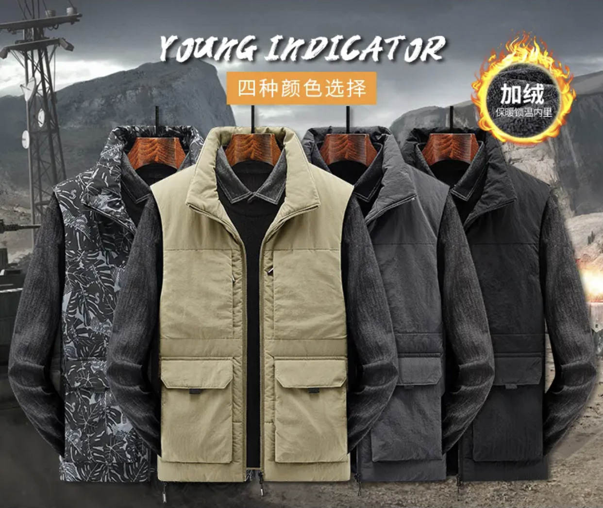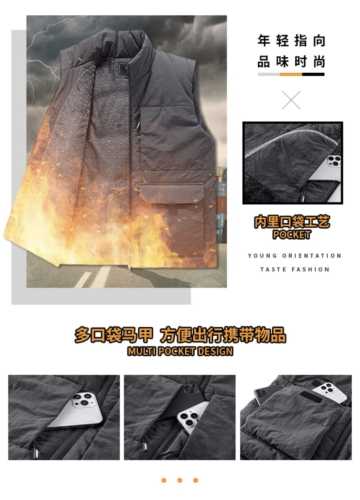 남성용 캐주얼 칼라 조끼 가을 및 겨울 멀티 포켓 기모 두꺼운 작업복 중년 외부 웨이스트 코트 조끼 재킷스토어 가기