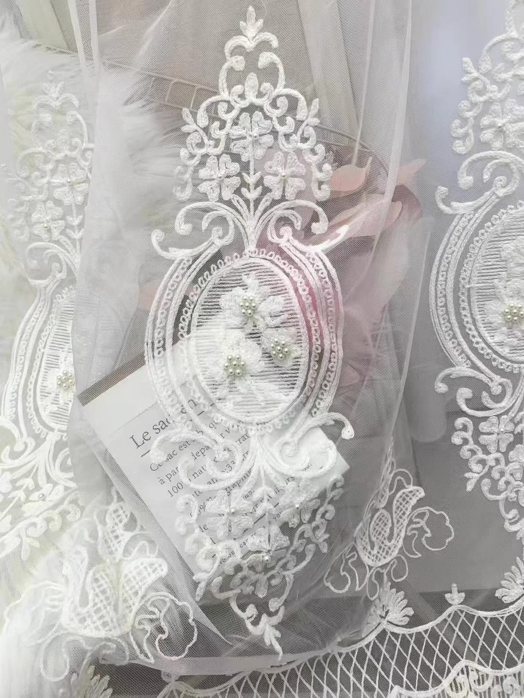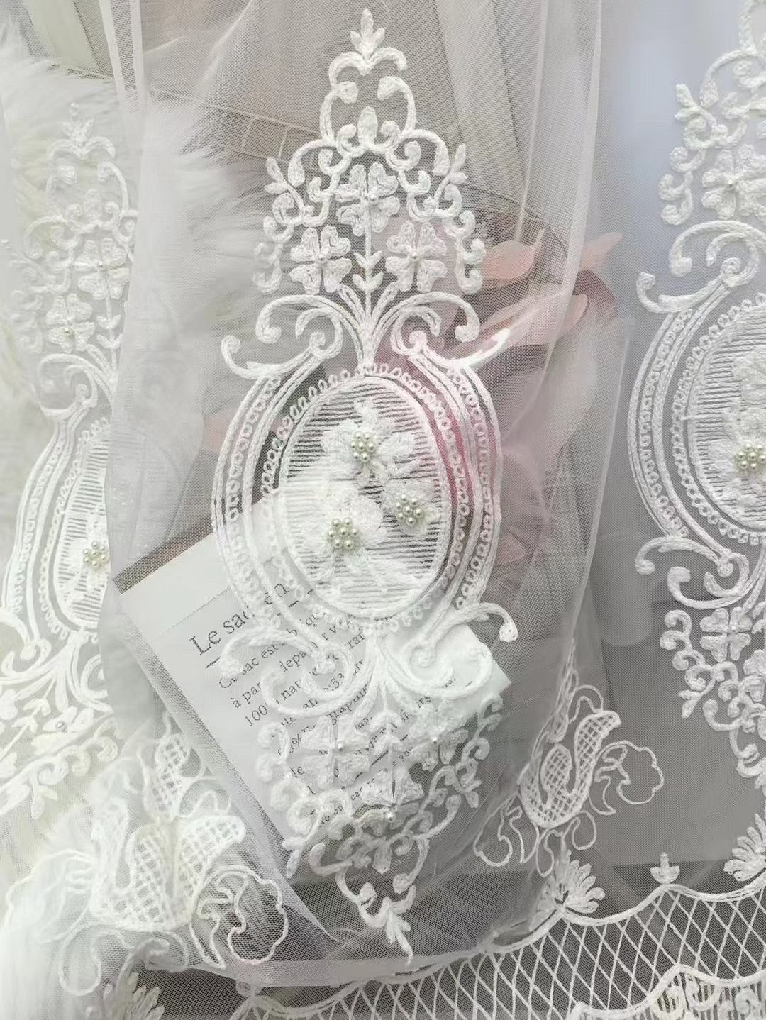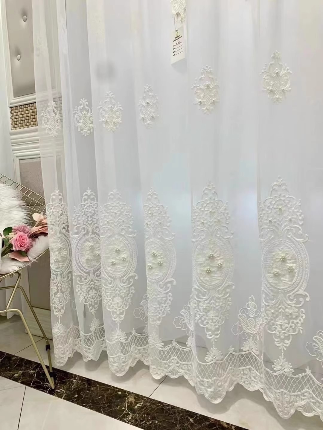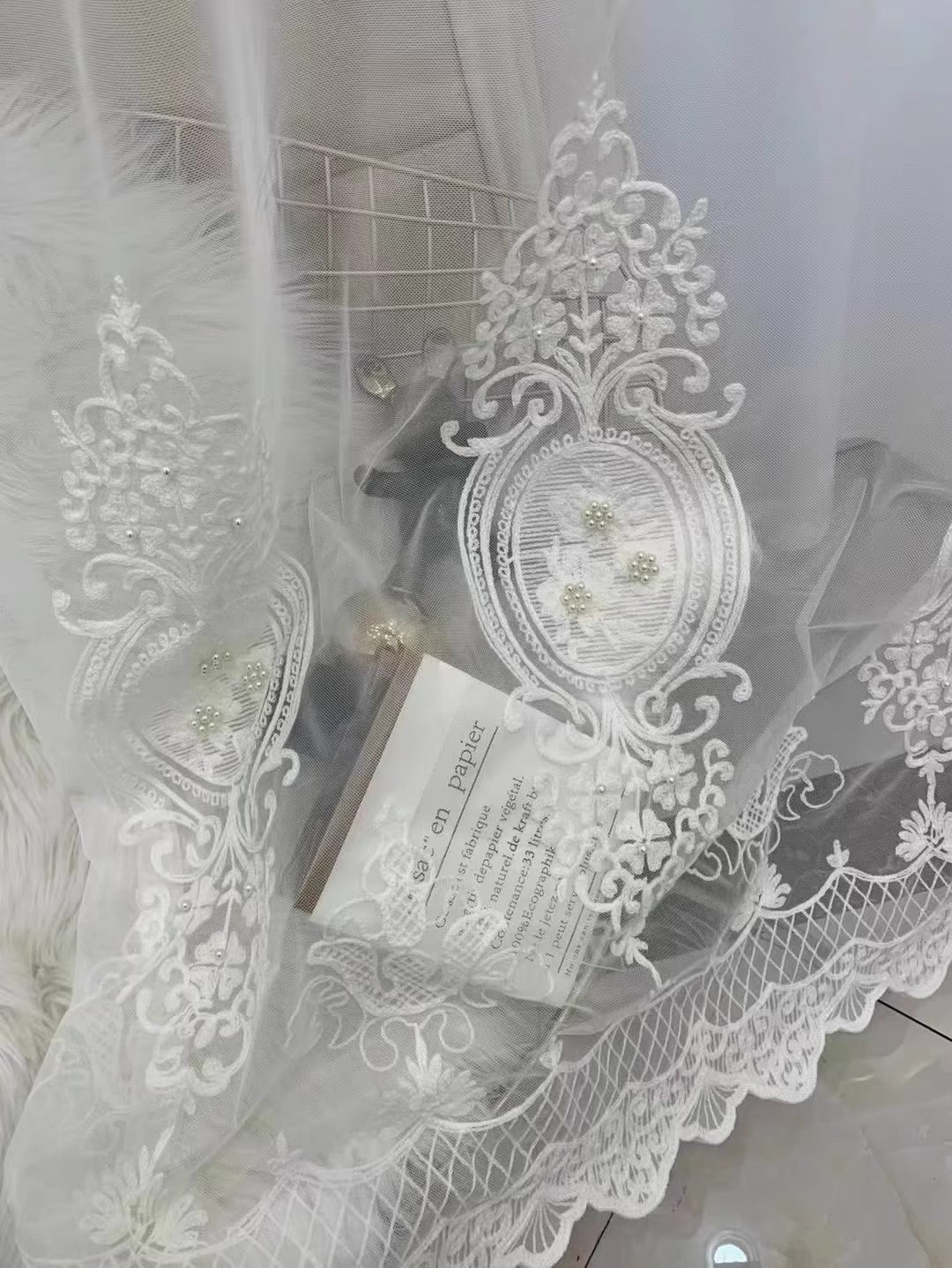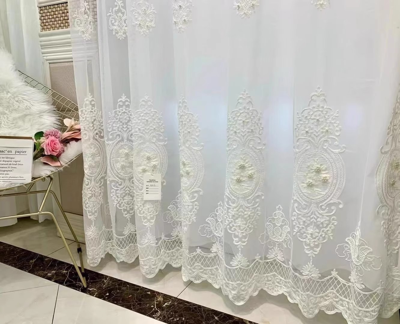 커튼 거즈 커튼 2024 새로운 침실 거실 발코니 소녀 장미 레이스 진주 프랑스 낭만적 인 완성 원사스토어 가기