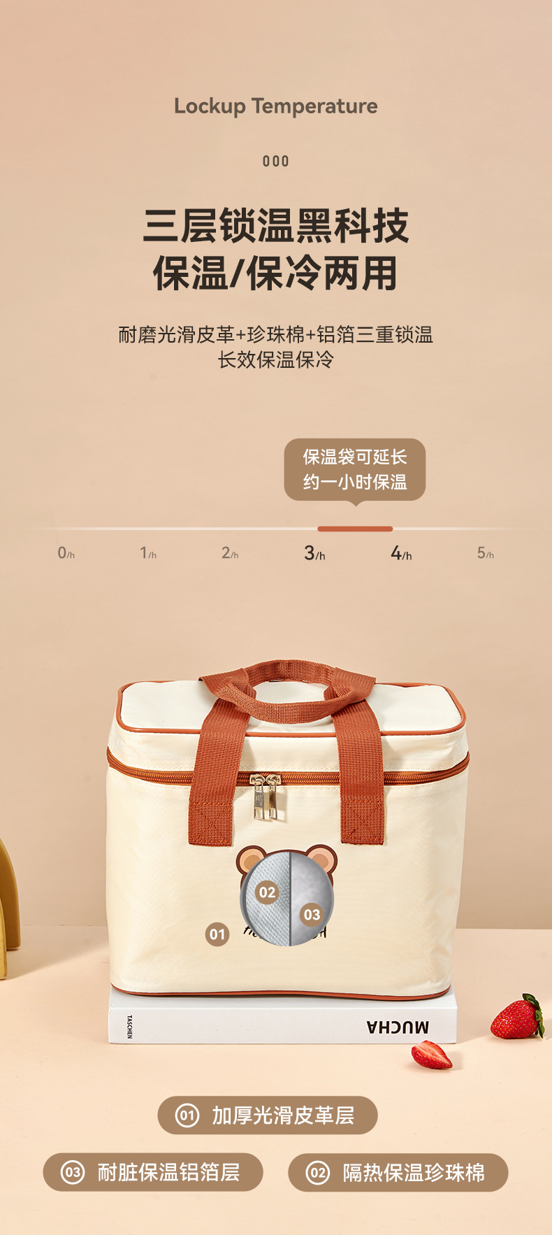 • 곰 베이지 사각 단열 가방