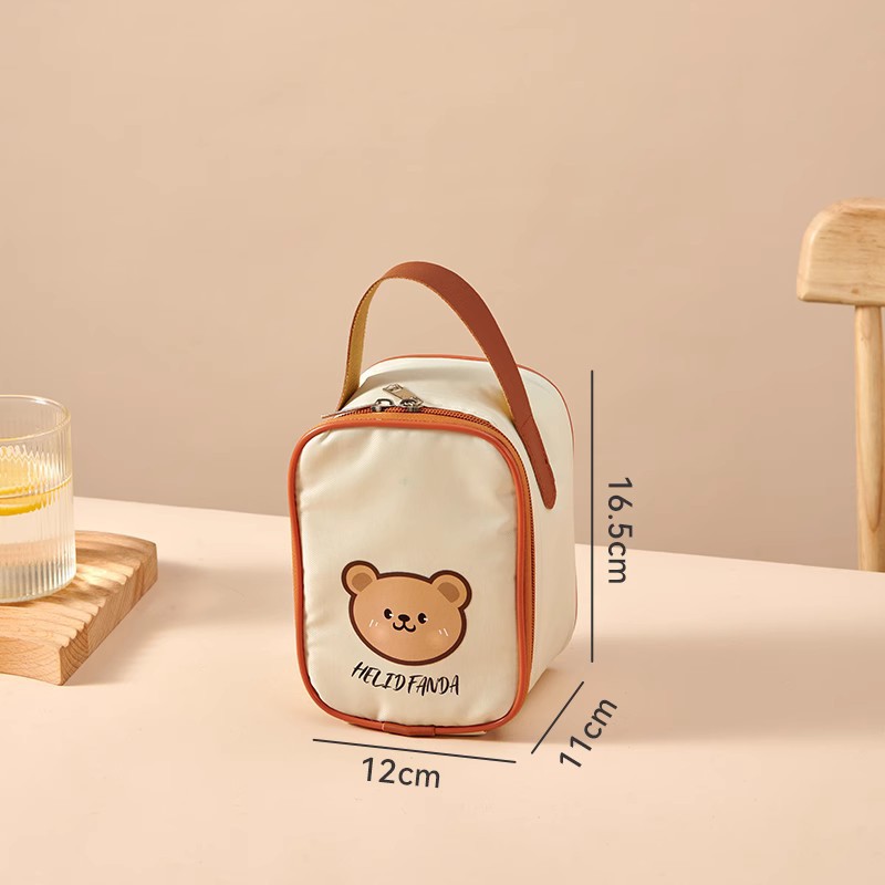 • 곰 베이지 휴대용 식사 컵 가방 스몰 사이즈