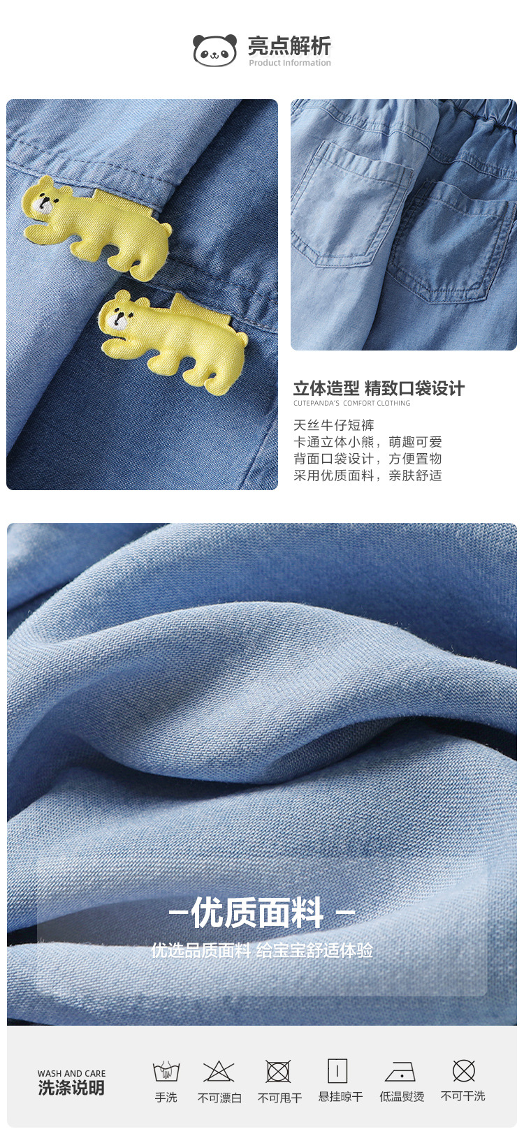 카카 팬더 소년 텐셀 청바지 소녀 반바지 여름 아기 아기 어린이 여름 캐주얼 트렌디 바지스토어 가기
