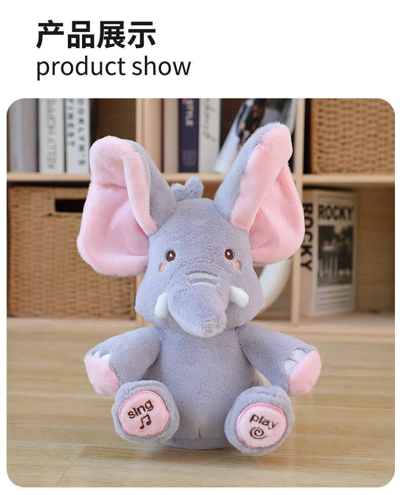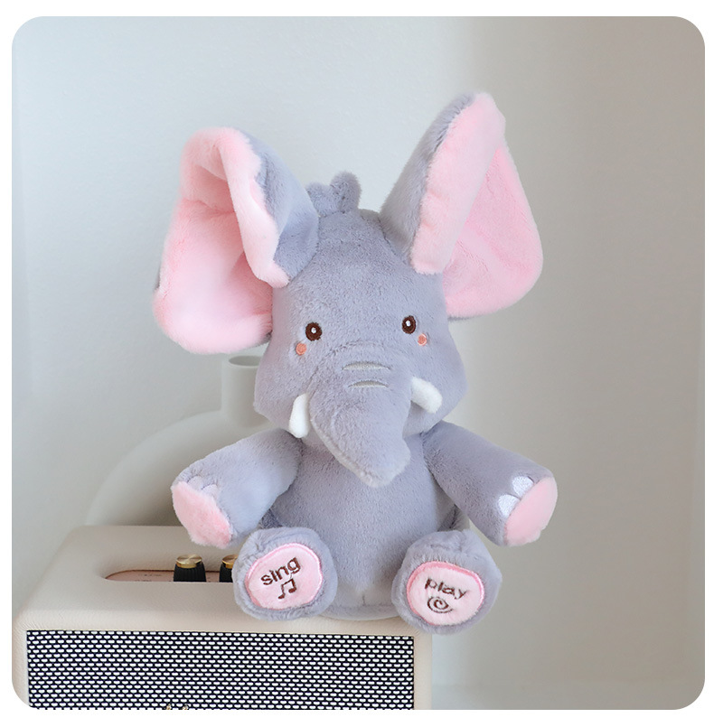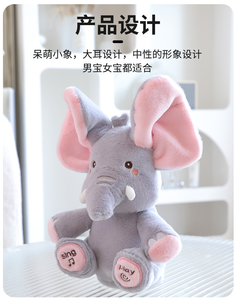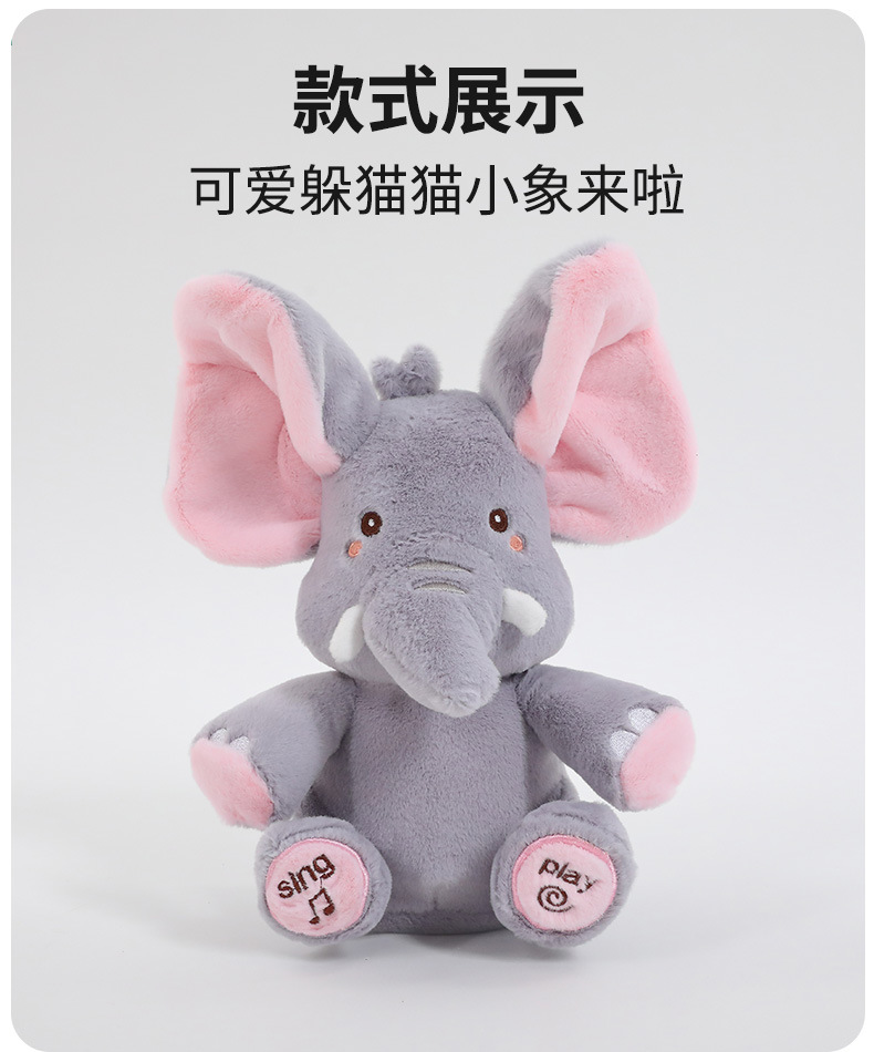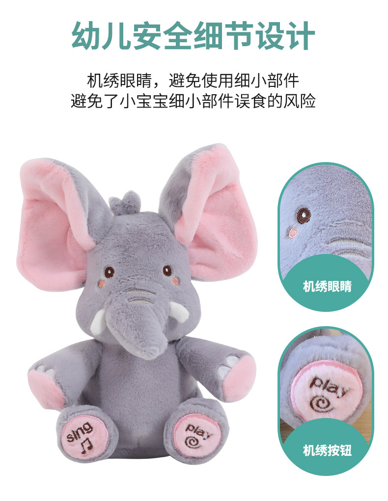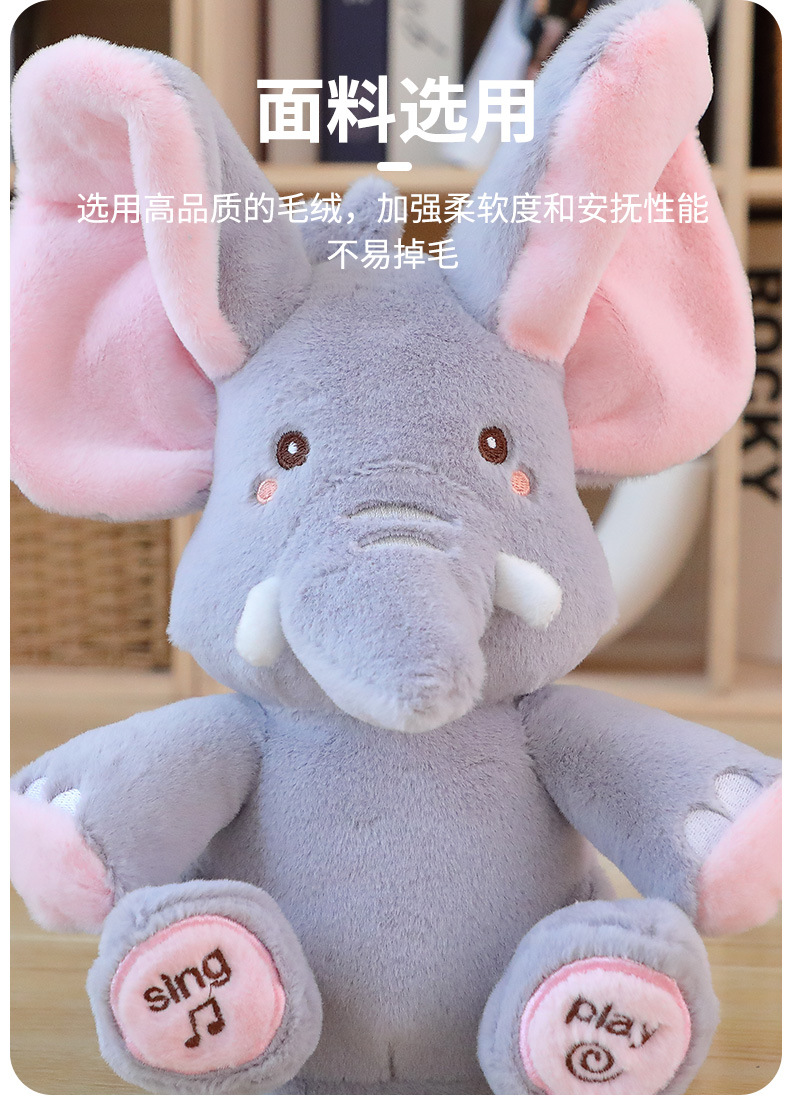 Mkik 귀여운 아기 코끼리 엿보기 코끼리 눈을 가리고 덤보 음악 수줍은 코끼리 어린이 전기 봉제 장난감