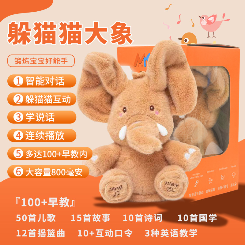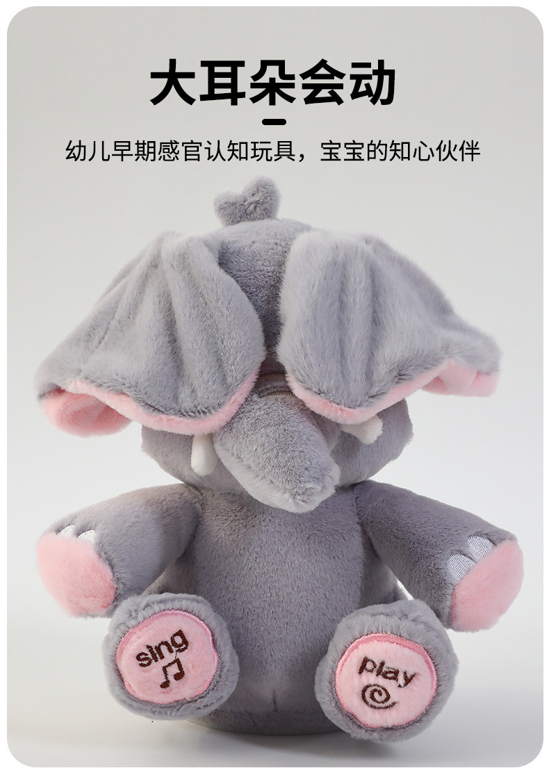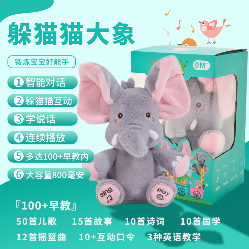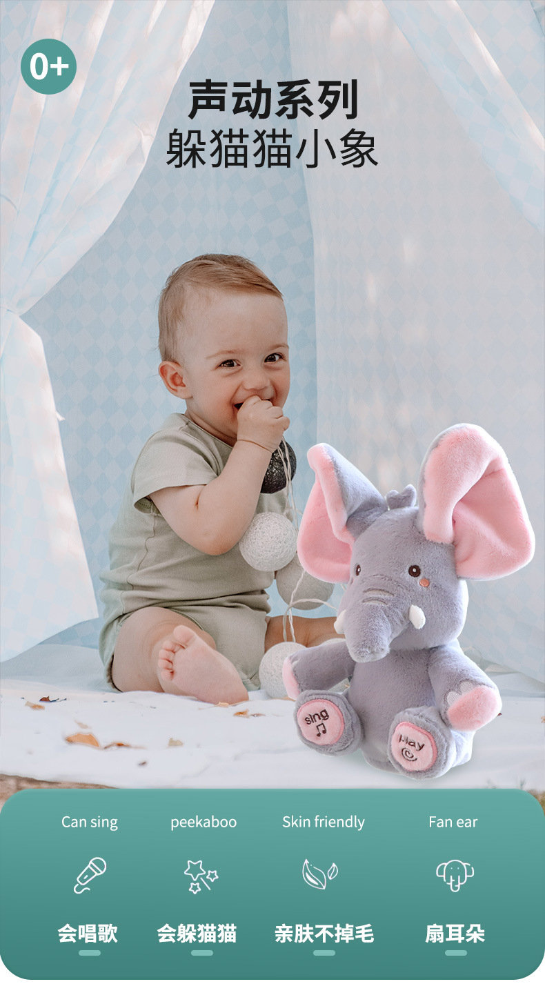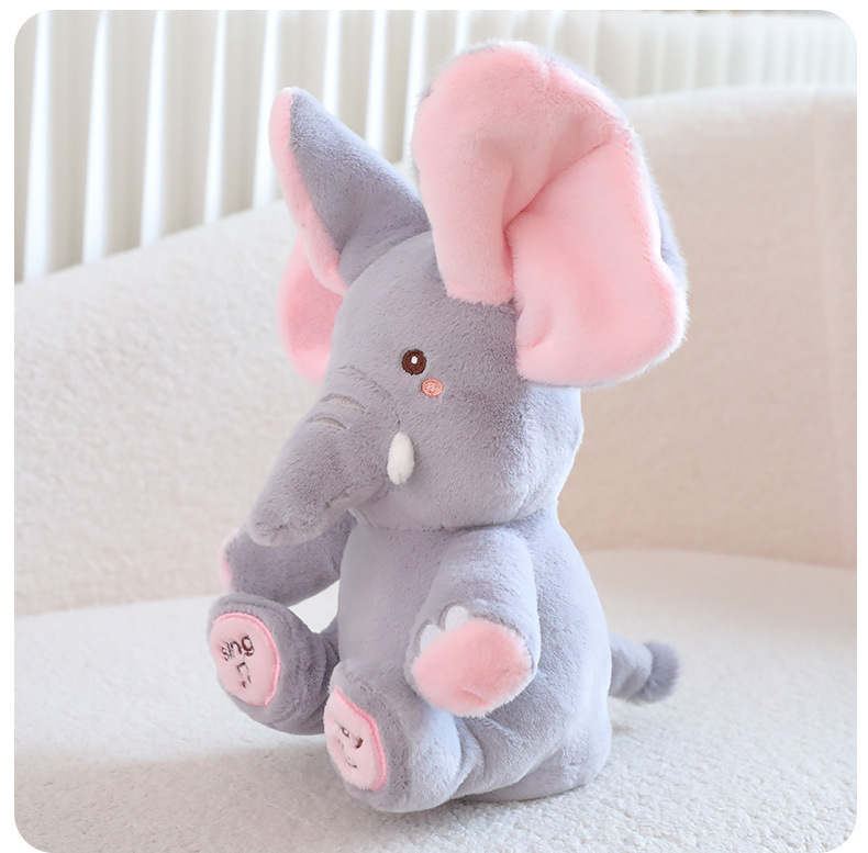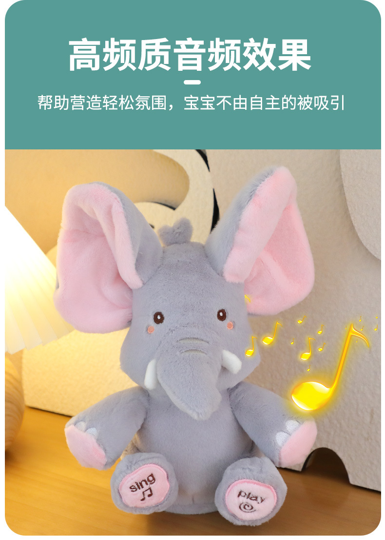 Mkik 귀여운 아기 코끼리 엿보기 코끼리 눈을 가리고 덤보 음악 수줍은 코끼리 어린이 전기 봉제 장난감