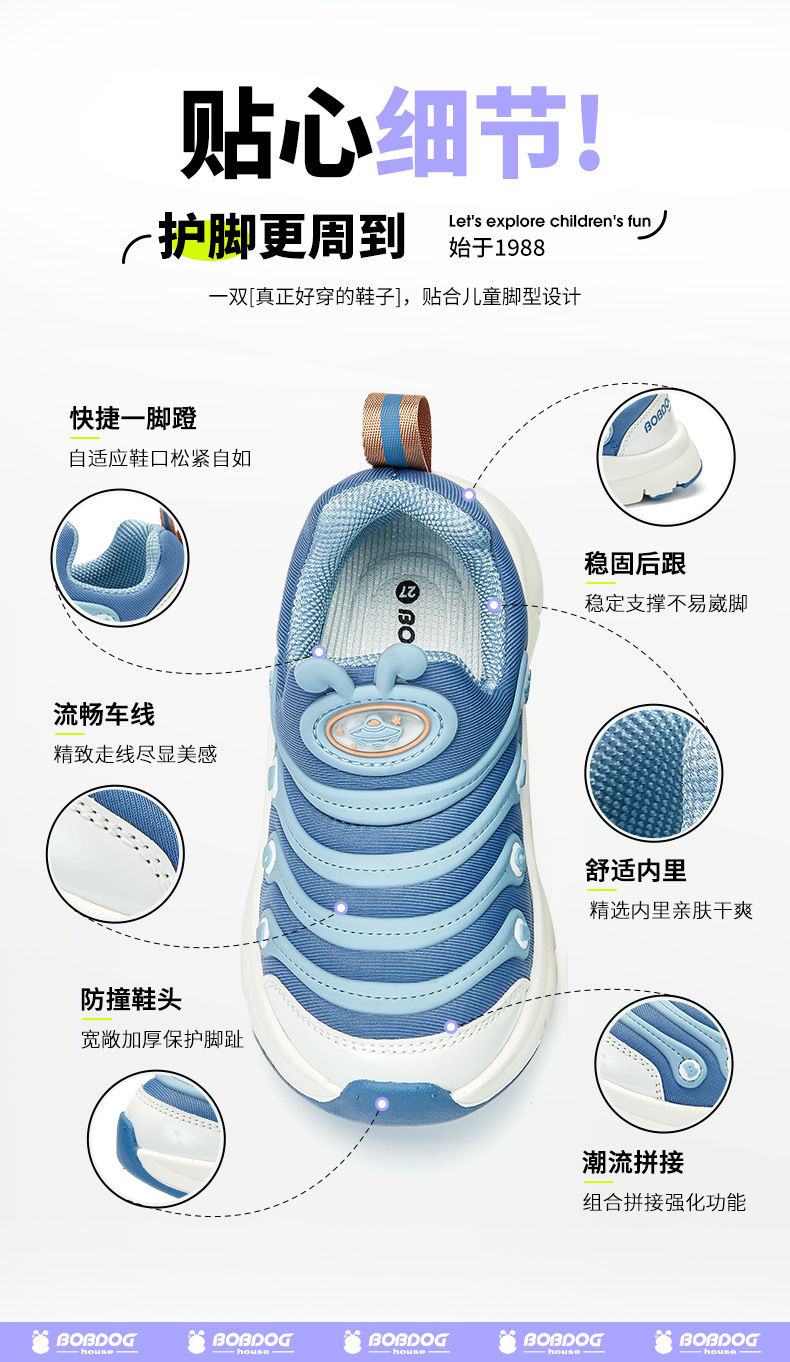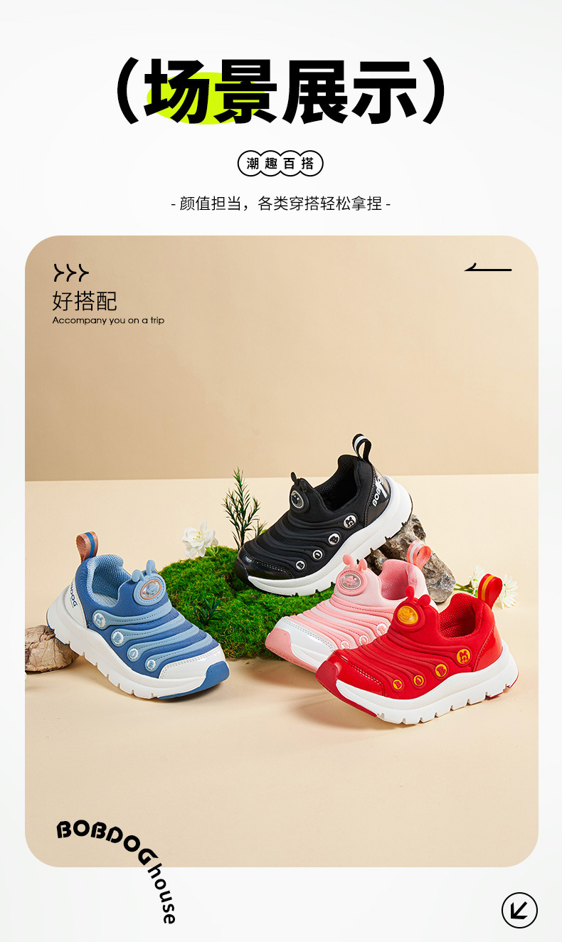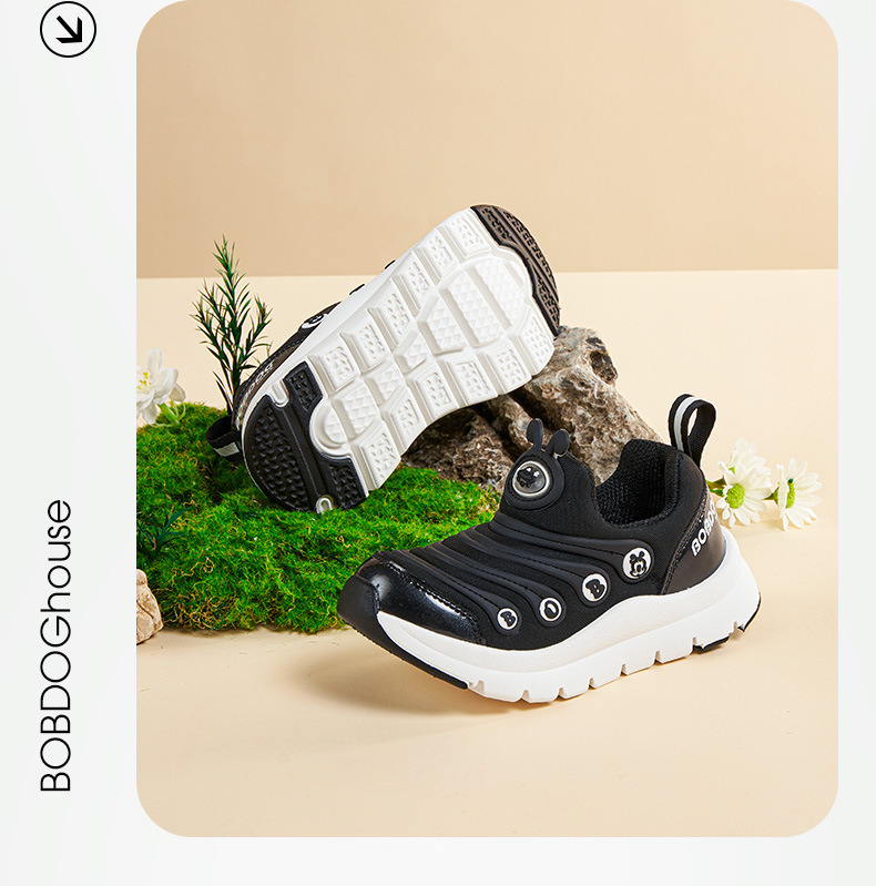 Babdou Caterpillar 소년 신발 2024 봄 새 중형 및 큰 어린이 통기성 어린이 신발 운동화 봄과 가을 소녀 신발스토어 가기