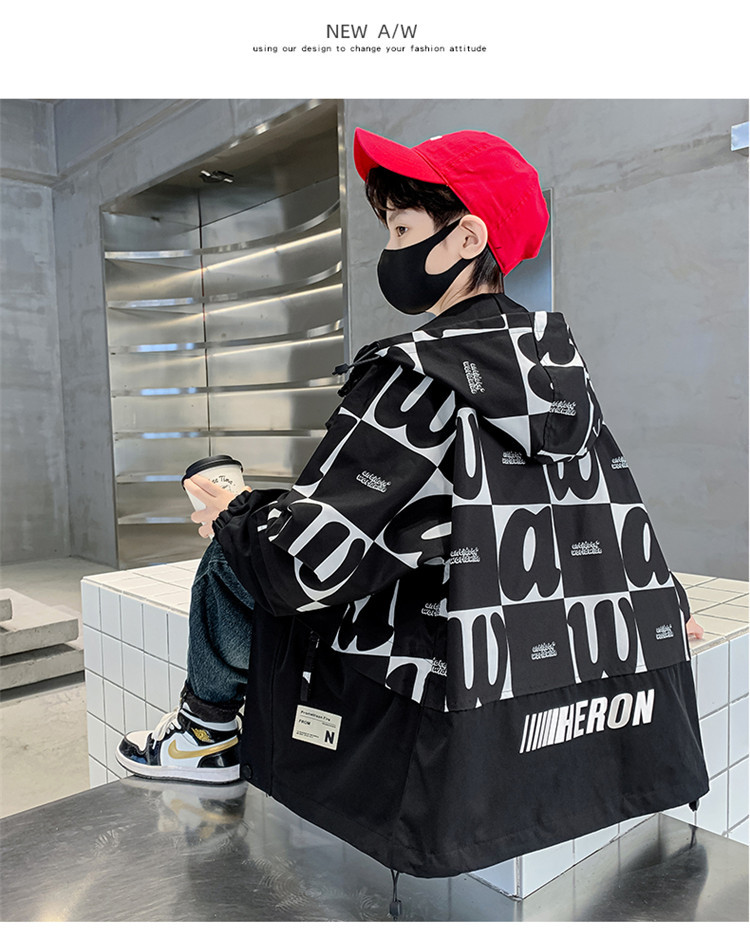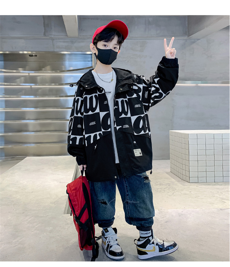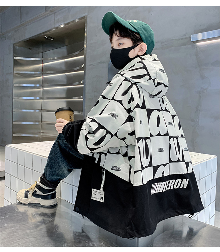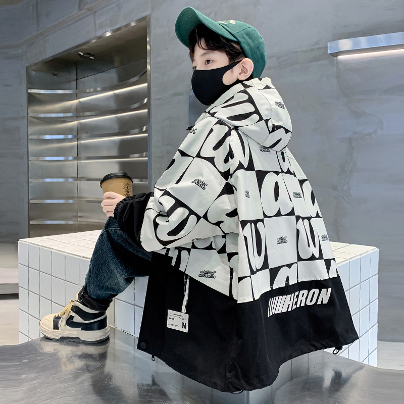 소년 봄 코트 봄과 가을 2024 새로운 중형 및 대형 어린이 봄 소년 윈드 브레이커 어린이 유행 재킷