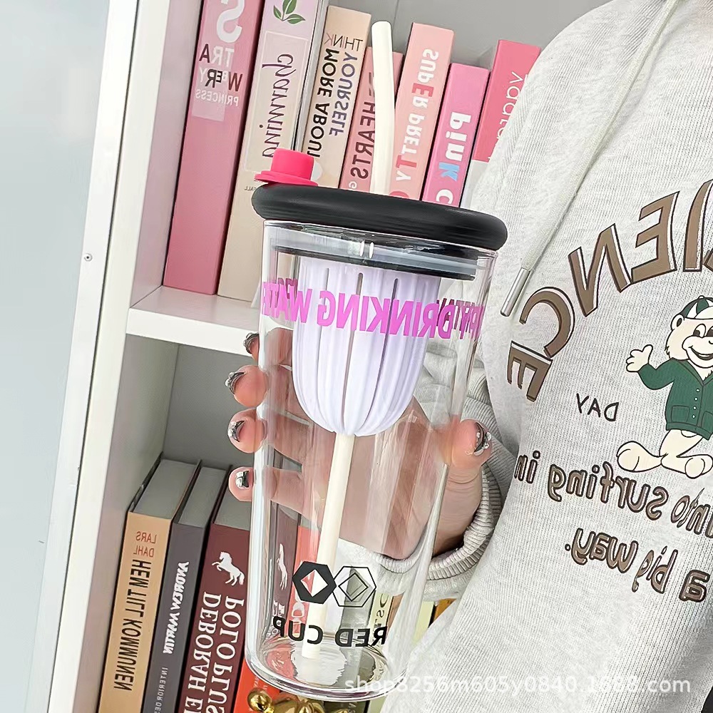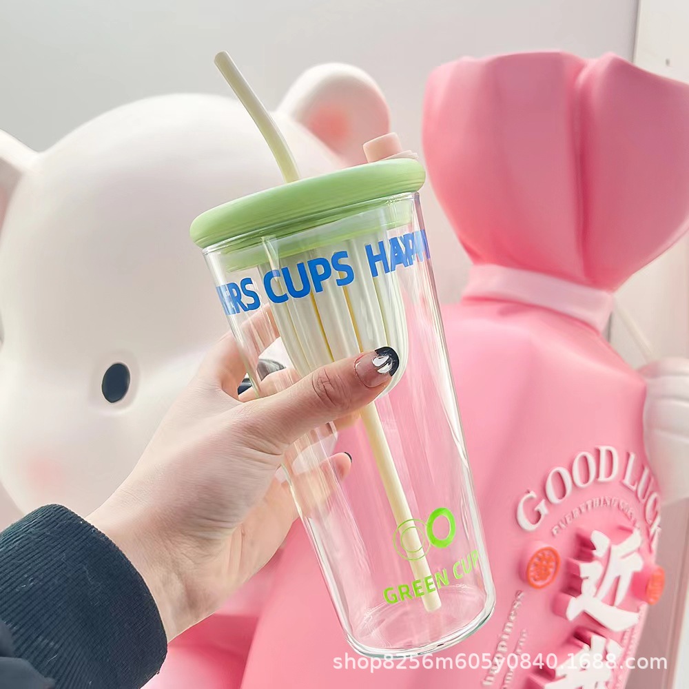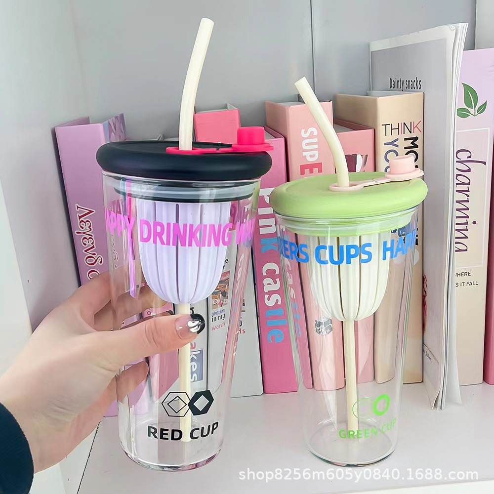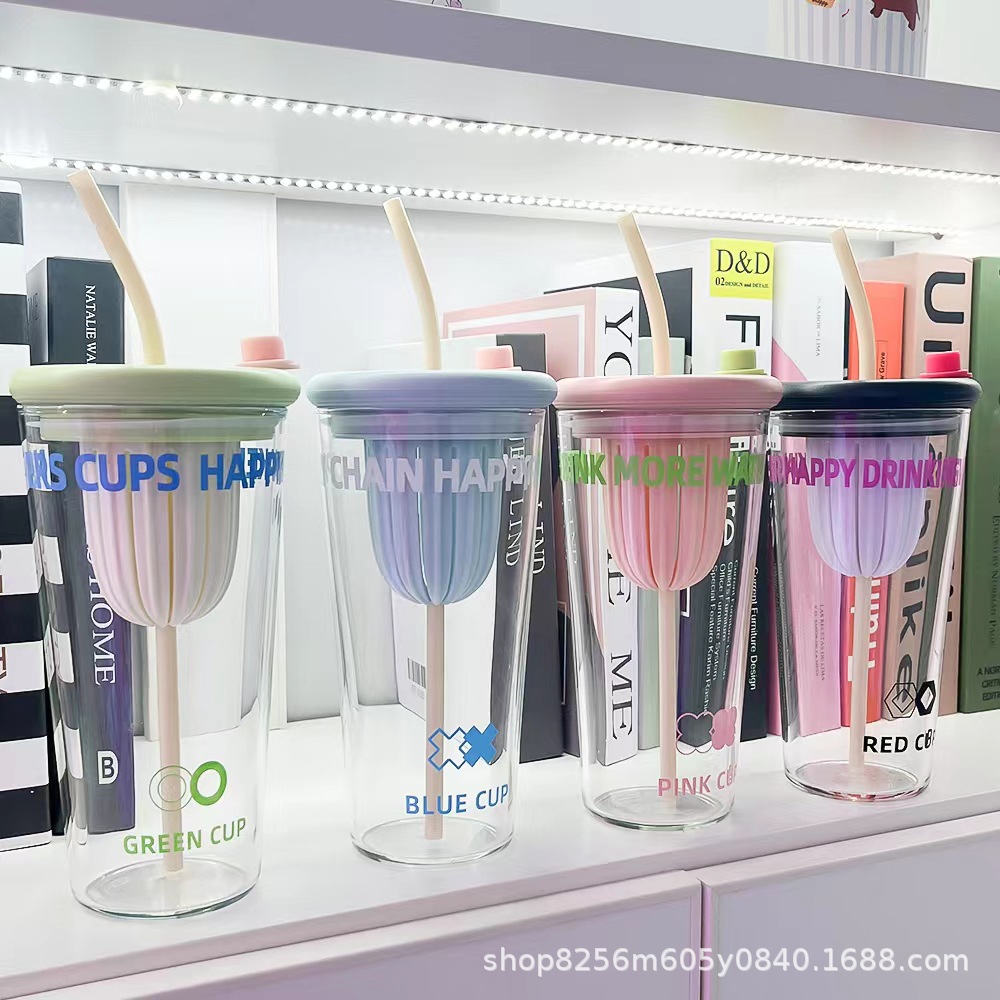 고붕규산 유리컵 여성용 고급스러운 가정용 물컵 차와 물 분리컵 대용량 빨대컵