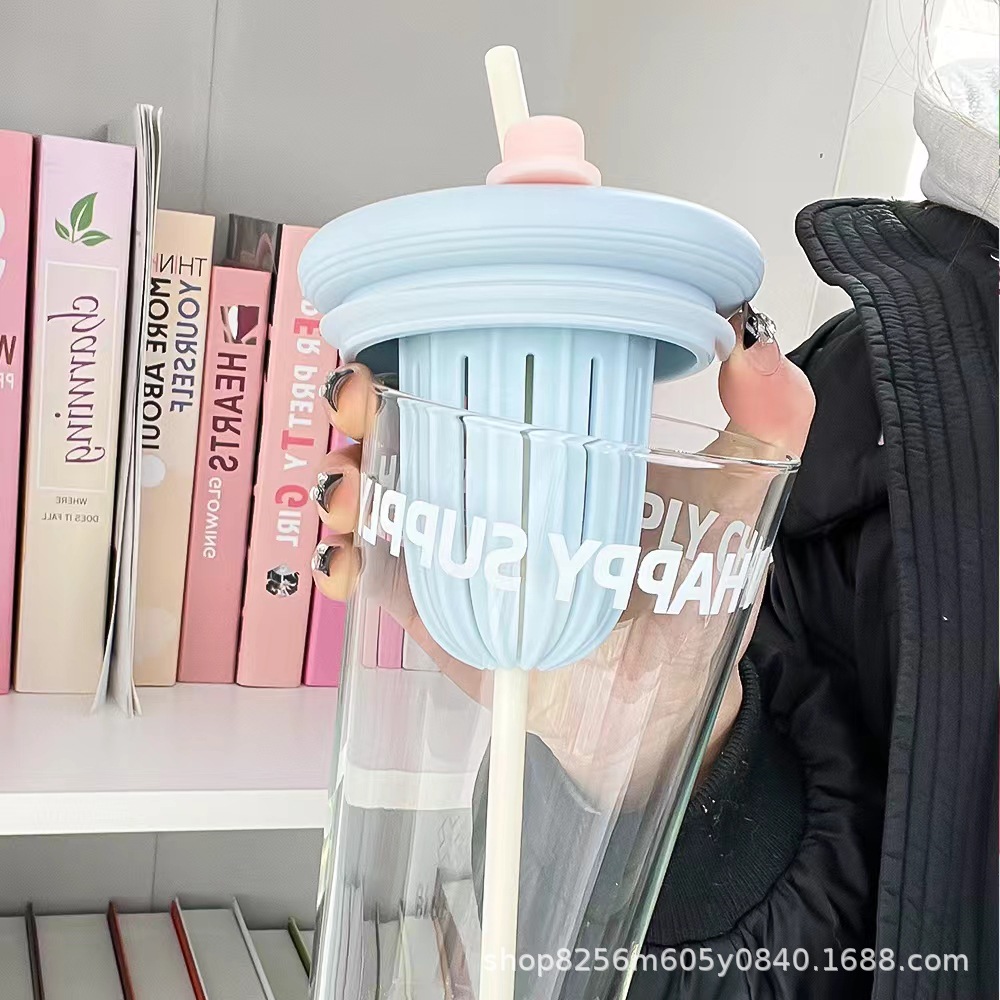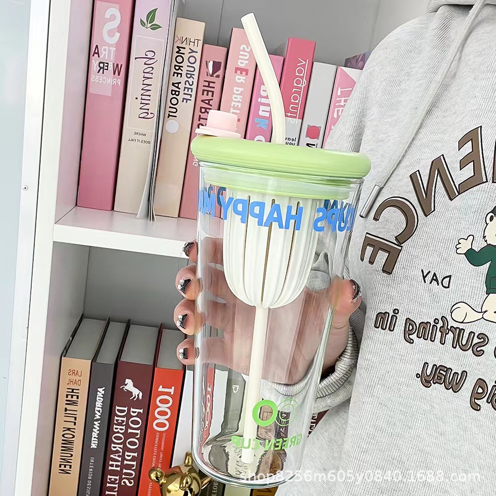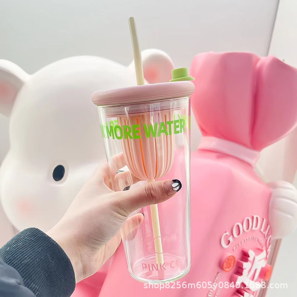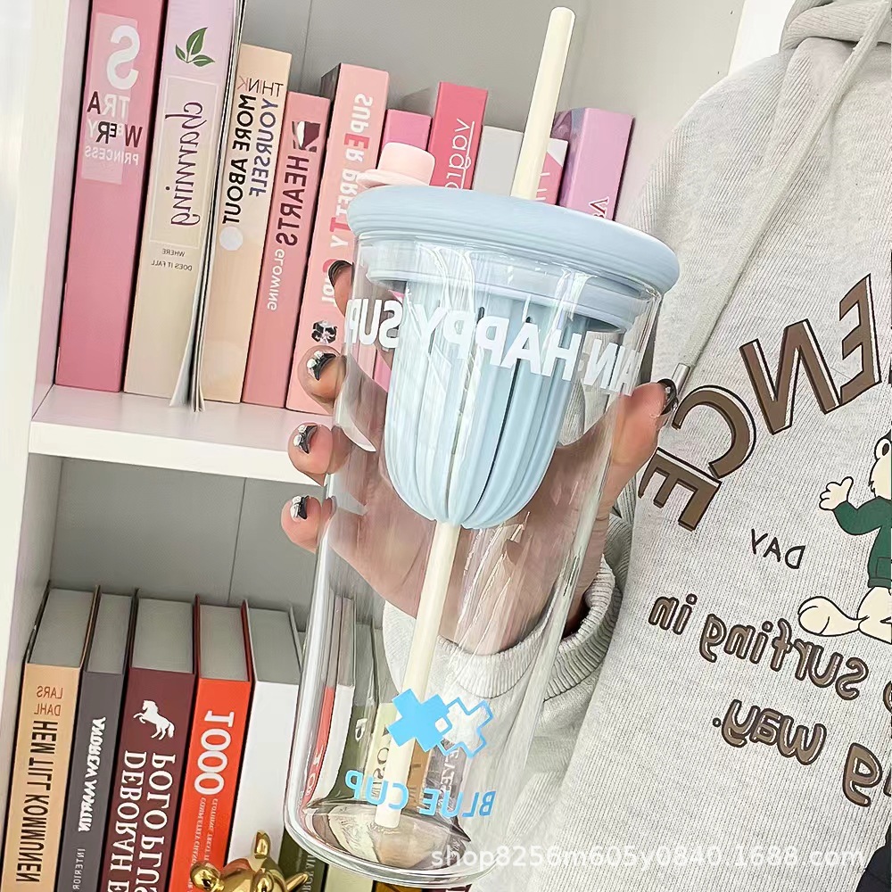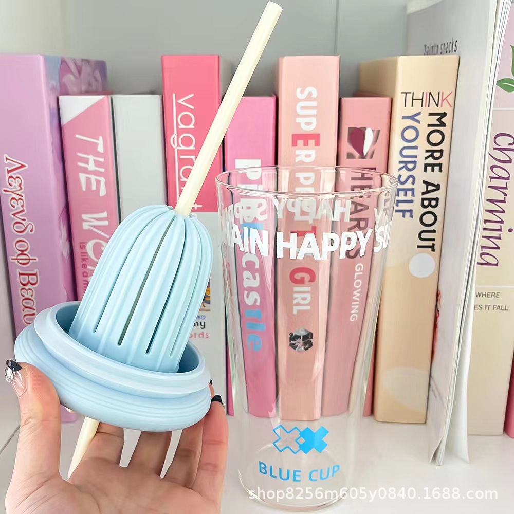 고붕규산 유리컵 여성용 고급스러운 가정용 물컵 차와 물 분리컵 대용량 빨대컵
