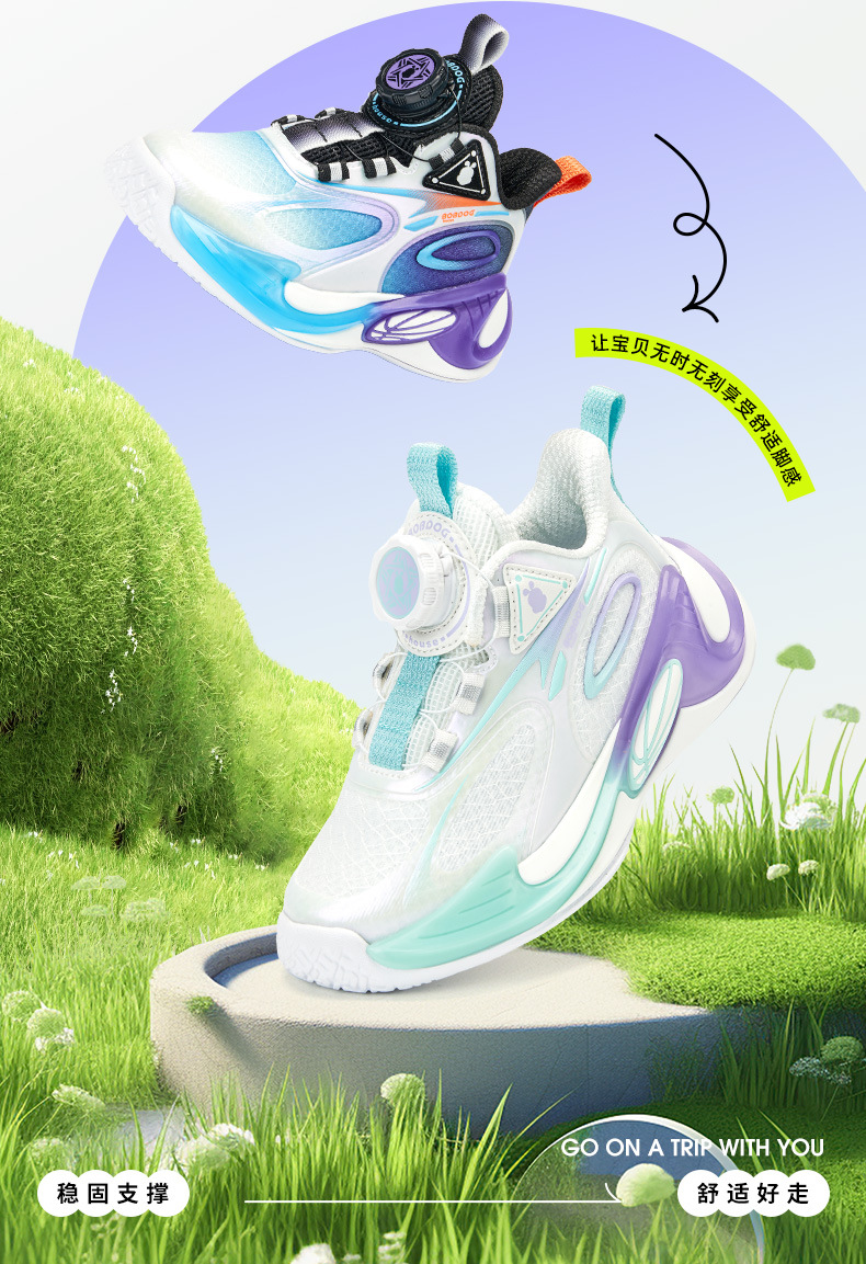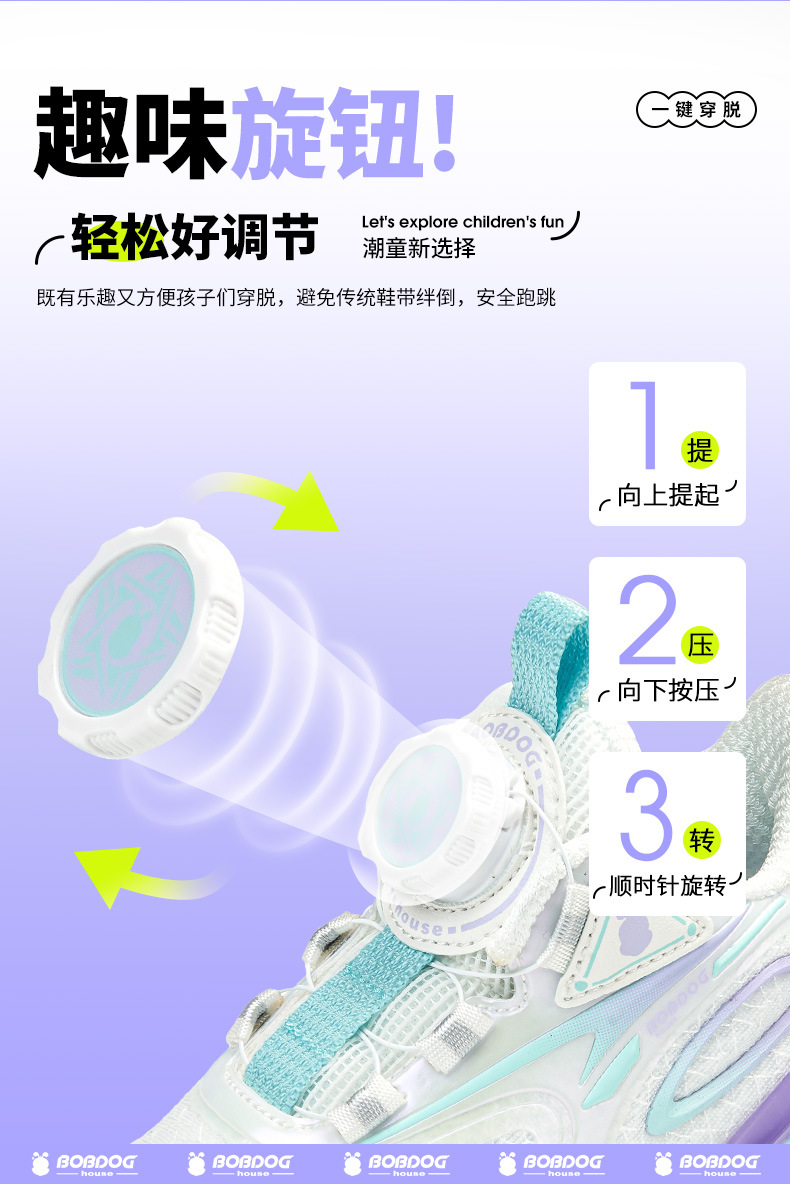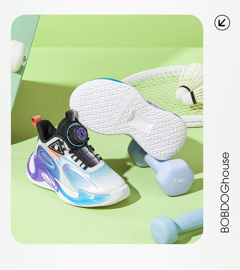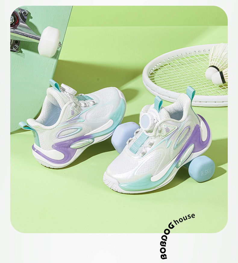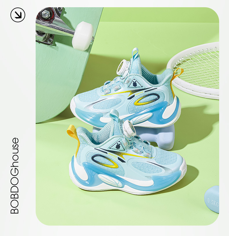 Babdou 소년 신발 2024 봄 새 중형 및 대형 어린이 회전 버클 운동화 봄과 가을 통기성 어린이 신발