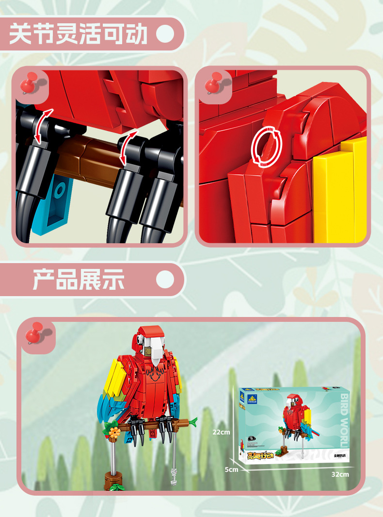 Kaizhi 80061 동물 상자 호환 레고 앵무새 어린이 조립 퍼즐 빌딩 블록 장난감 상자 도매 남성