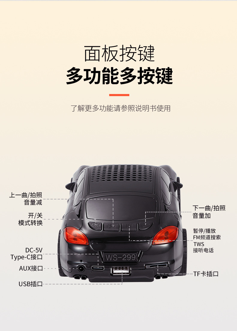 국경을 넘는 인기 상품 WSTER 포르쉐 블루투스 스피커, 다채로운 조명이 있는 자동차 모델 블루투스 스피커, 대외 무역 선물용 스피커스토어 가기