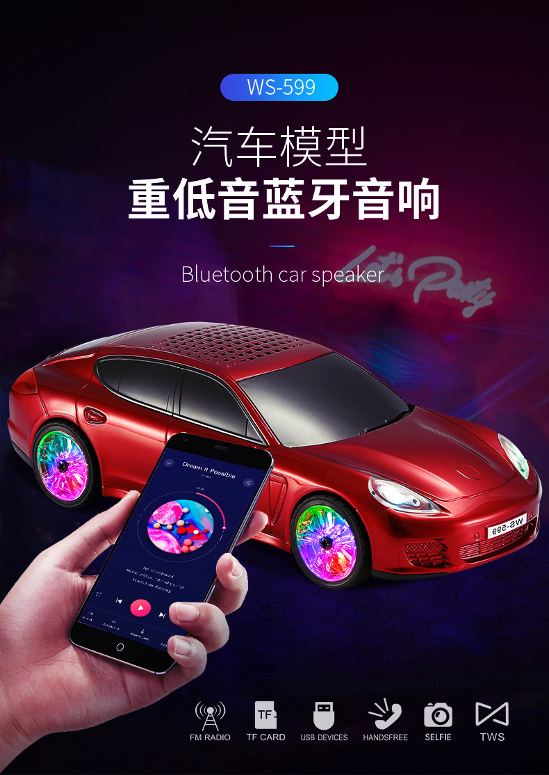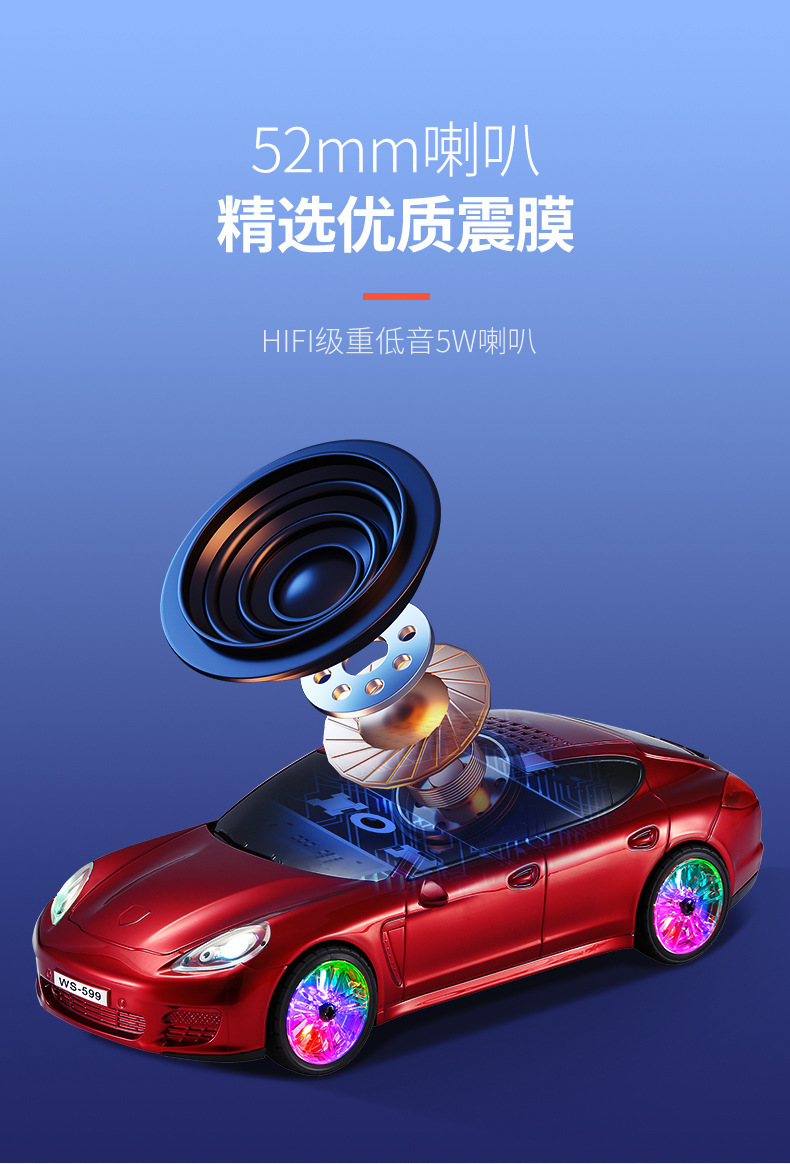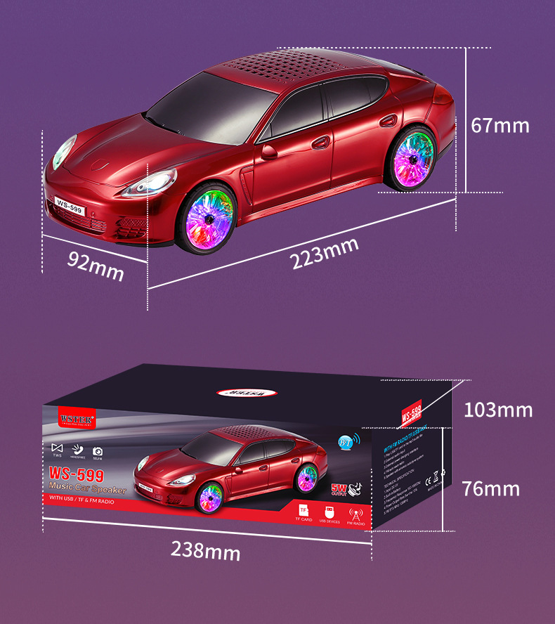 국경을 넘는 인기 상품 WSTER 포르쉐 블루투스 스피커, 다채로운 조명이 있는 자동차 모델 블루투스 스피커, 대외 무역 선물용 스피커