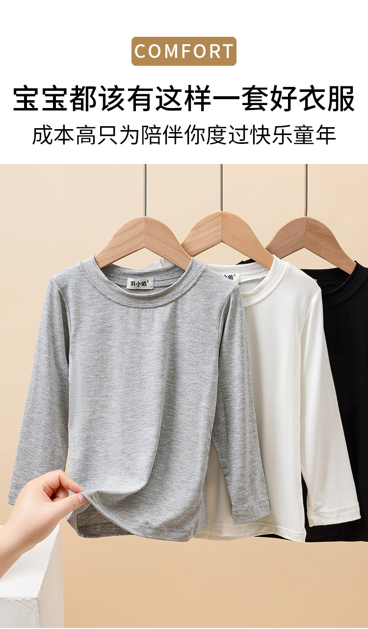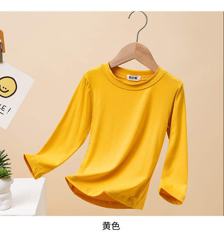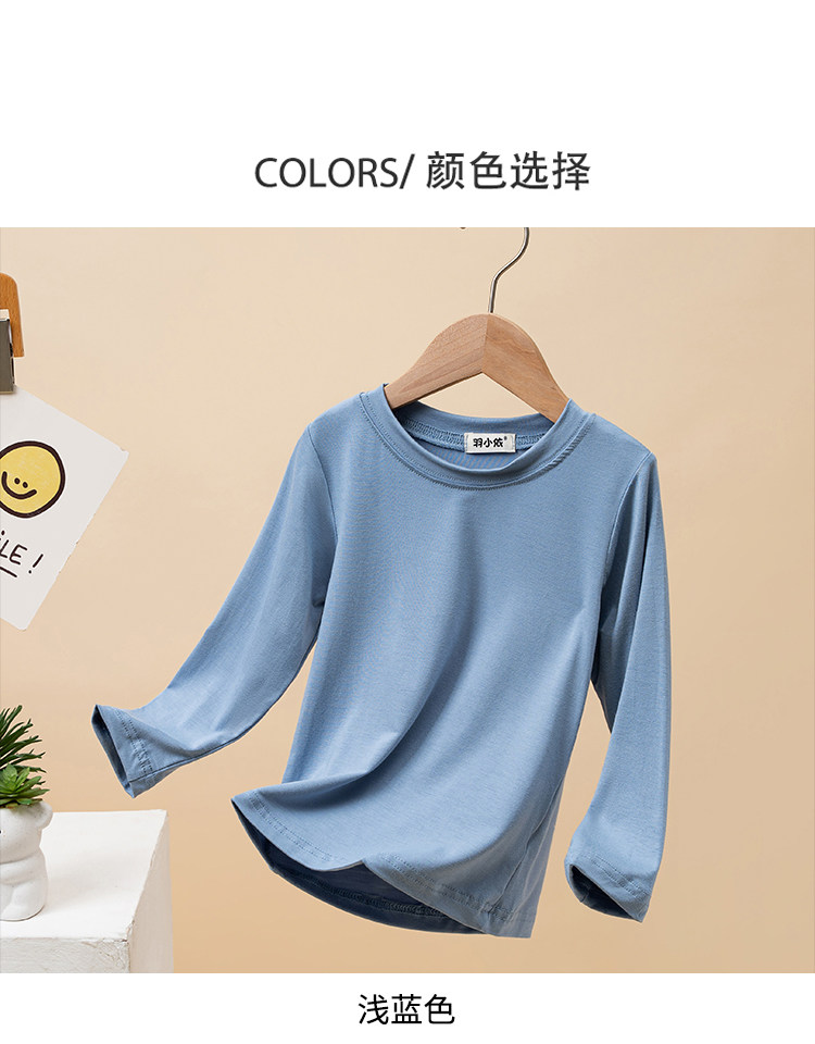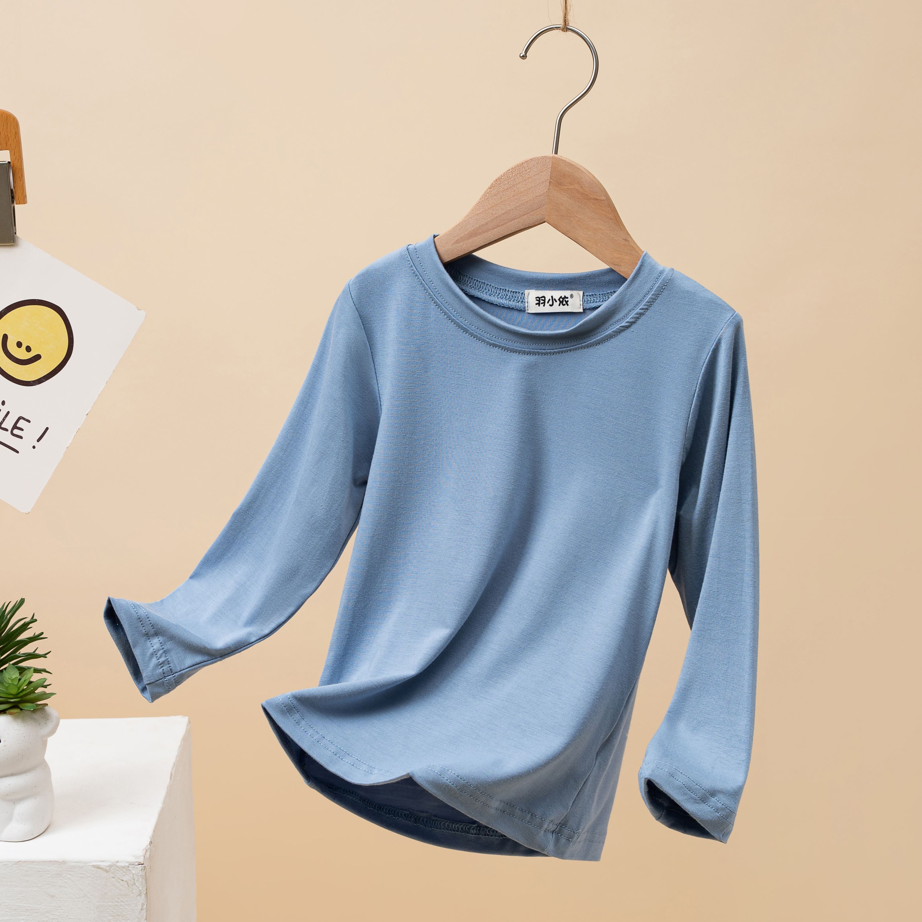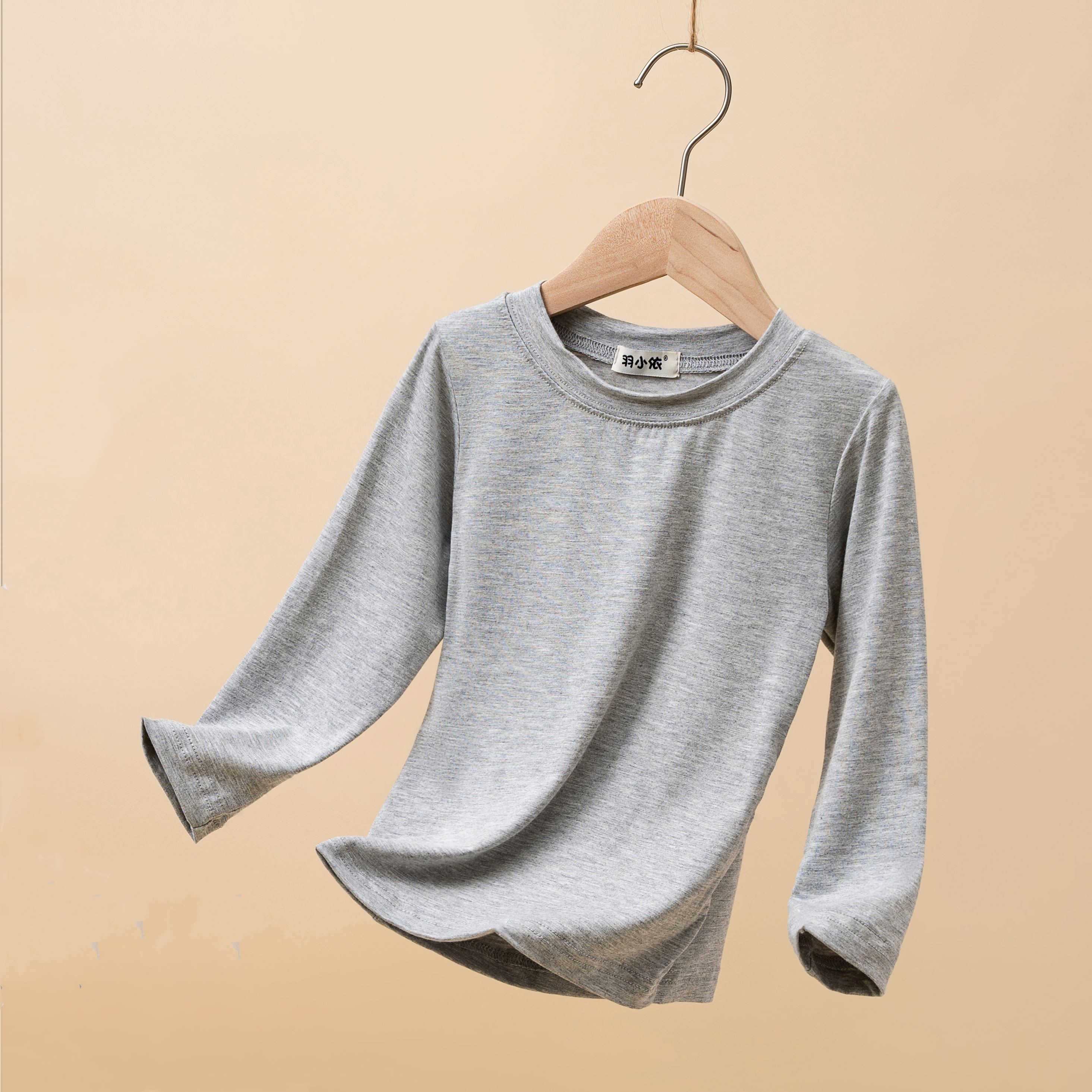 어린이 모달 긴팔 티셔츠 봄과 여름 소년 캐주얼 느슨한 둥근 목 바닥 셔츠 소녀의 올 매치 화이트 탑스토어 가기