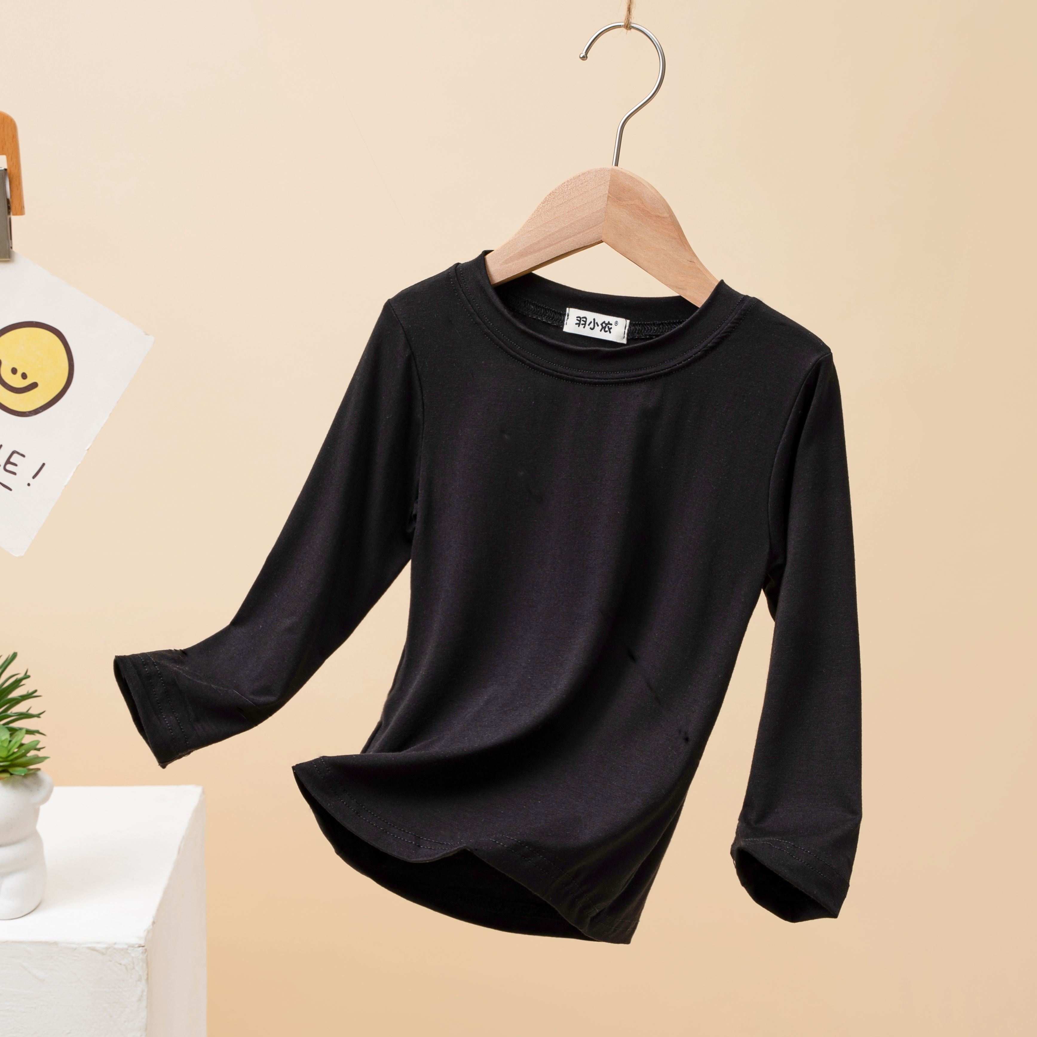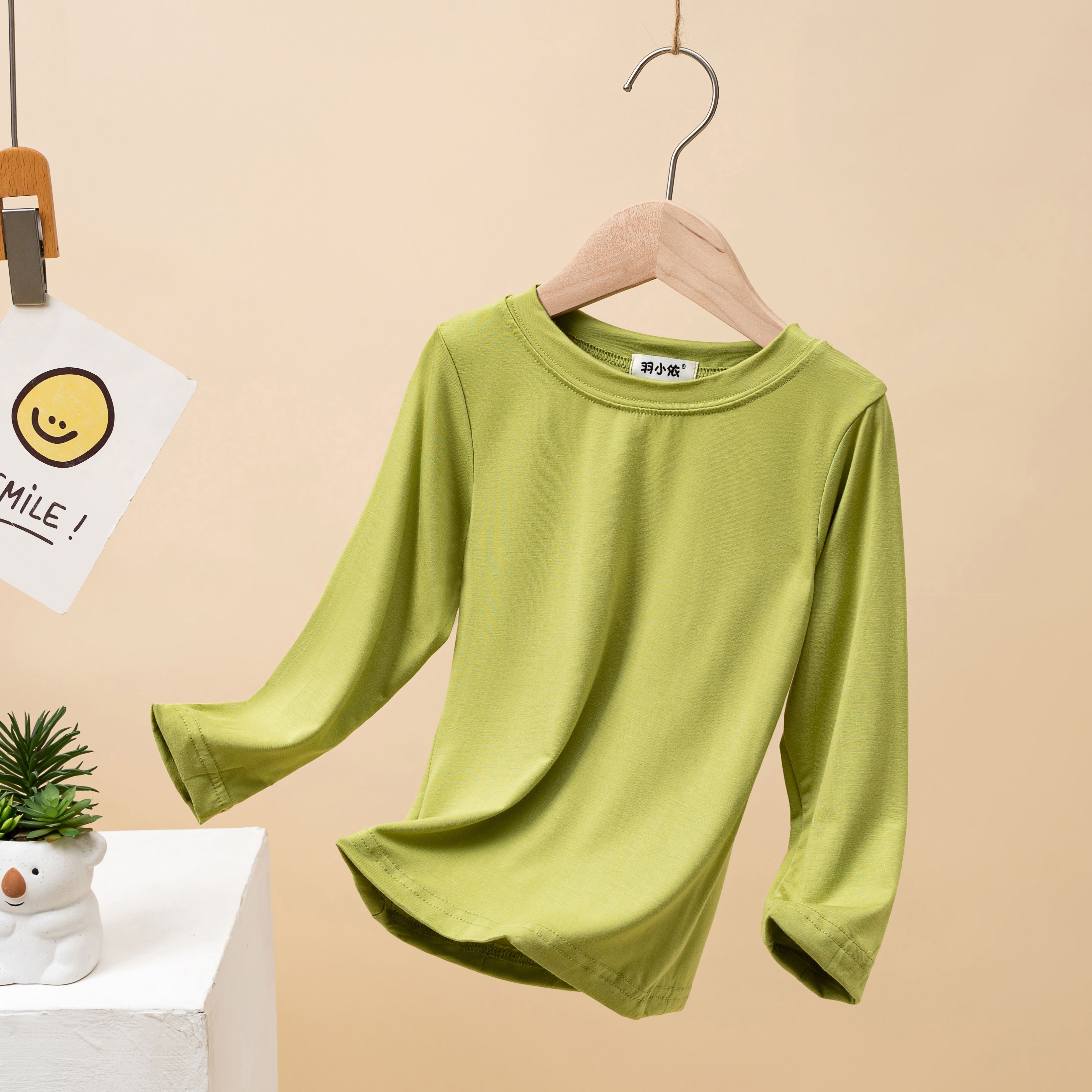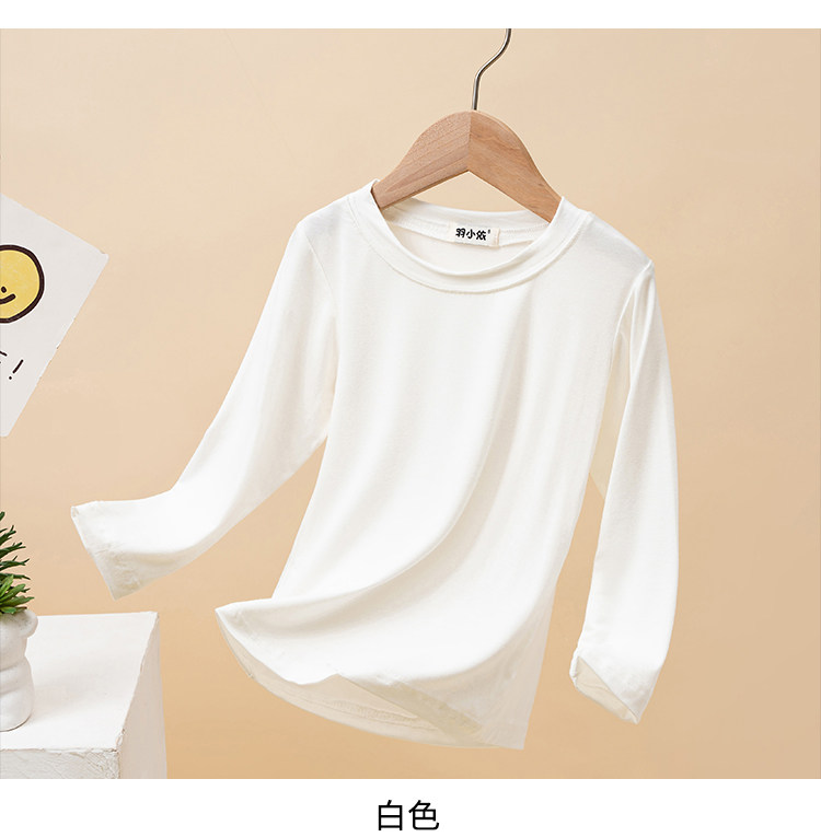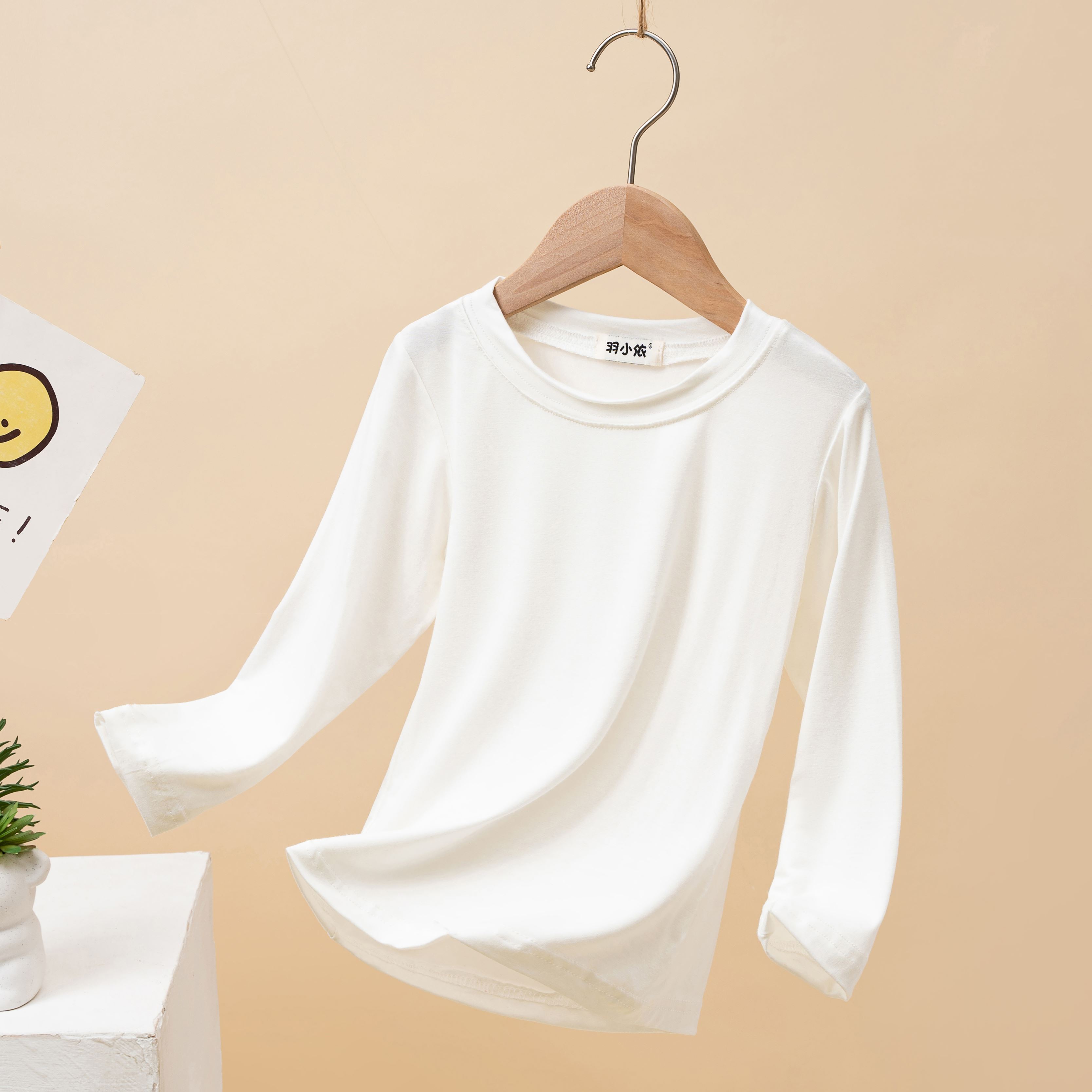 어린이 모달 긴팔 티셔츠 봄과 여름 소년 캐주얼 느슨한 둥근 목 바닥 셔츠 소녀의 올 매치 화이트 탑