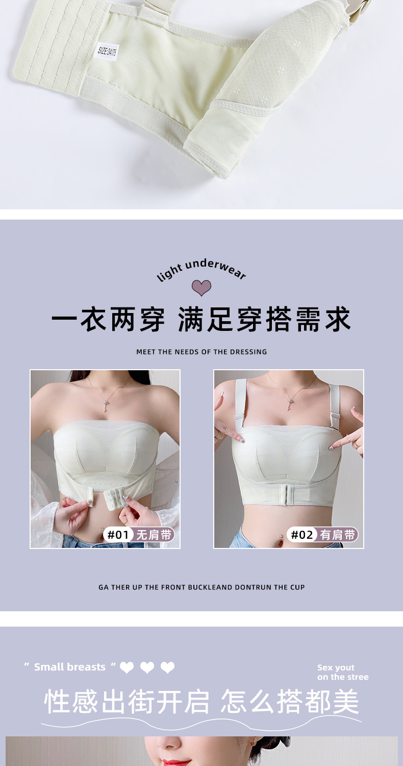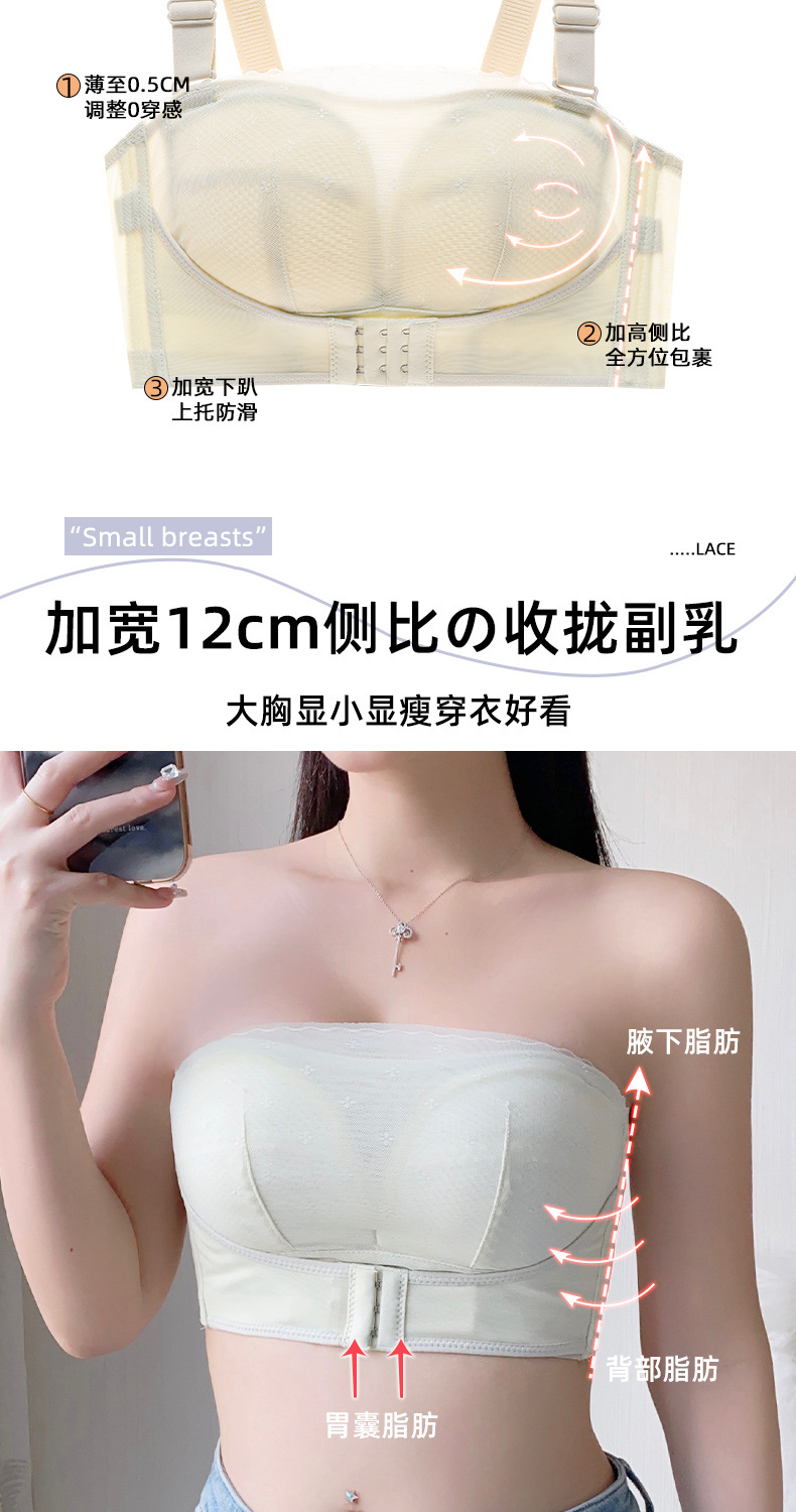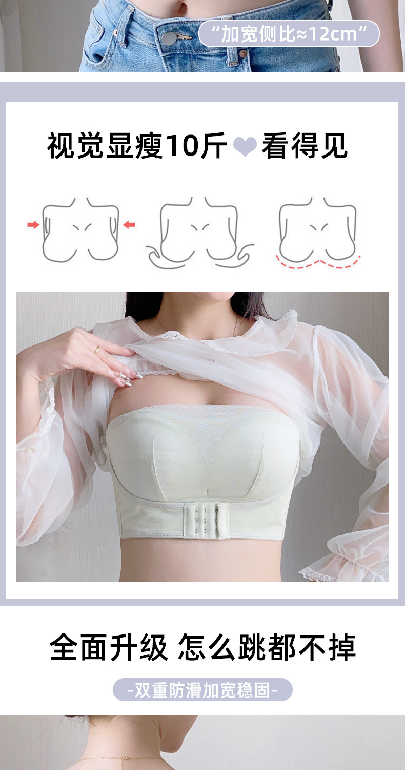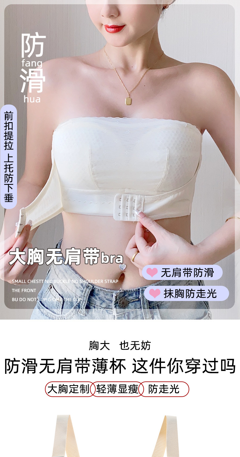 스트랩리스 속옷 대형 가슴 초박형 푸시 업 처짐 방지 얇은 앞 버클 미끄럼 방지 튜브 탑 원활한 포장 가슴 브래지어 여성용스토어 가기