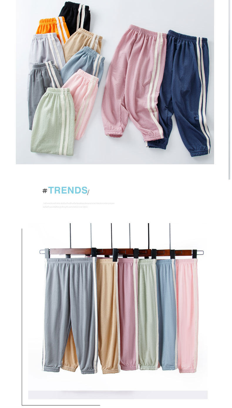 소년 모기 방지 바지 여름 얇은 어린이 줄무늬 캐주얼 바지 소녀 아기 블루머 어린 소년 홈 바지스토어 가기