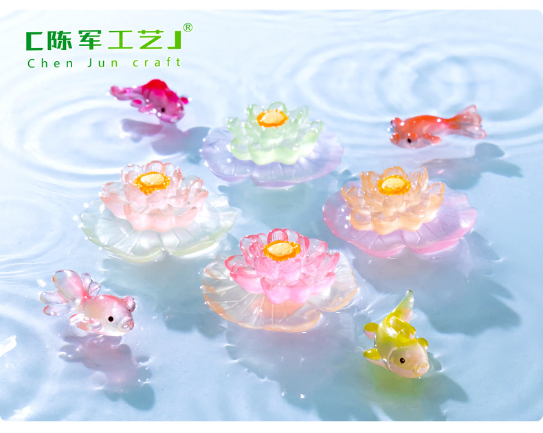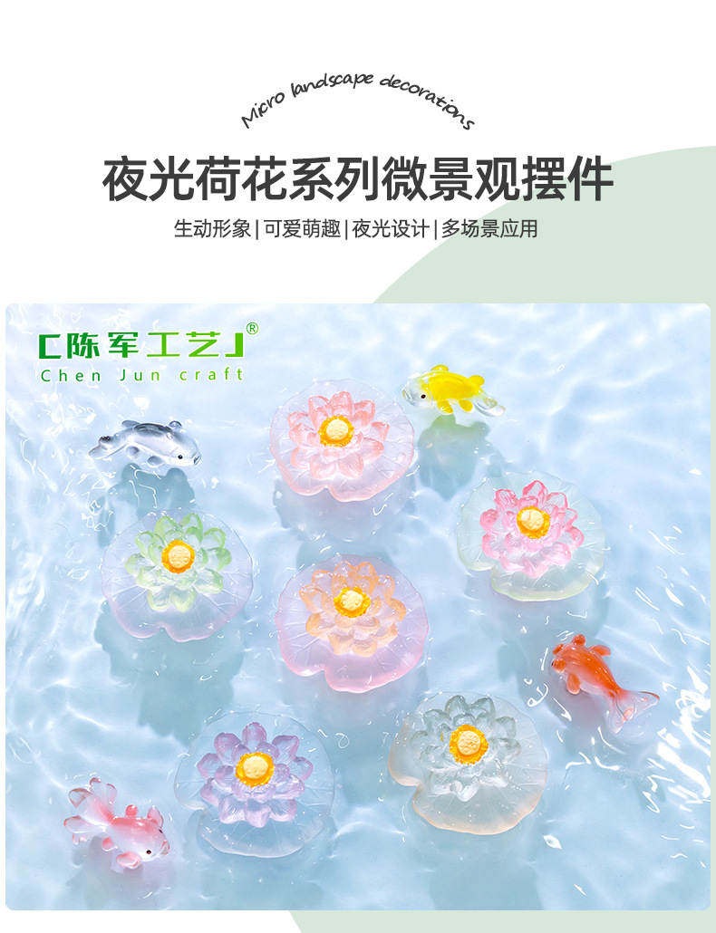 마이크로 풍경 창조적 인 빛나는 연꽃 잎 생태 병 물고기 탱크 수족관 DIY 조경 장식 액세서리 작은 장식품스토어 가기