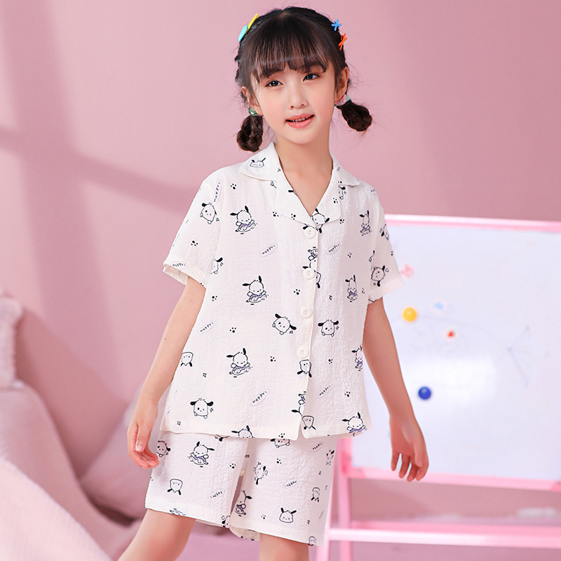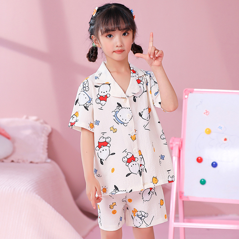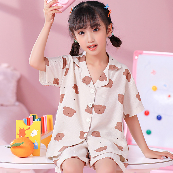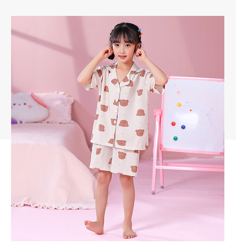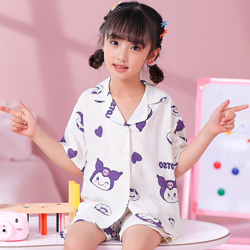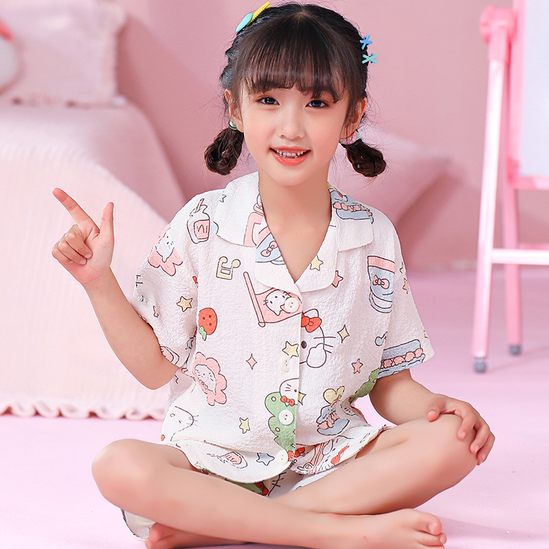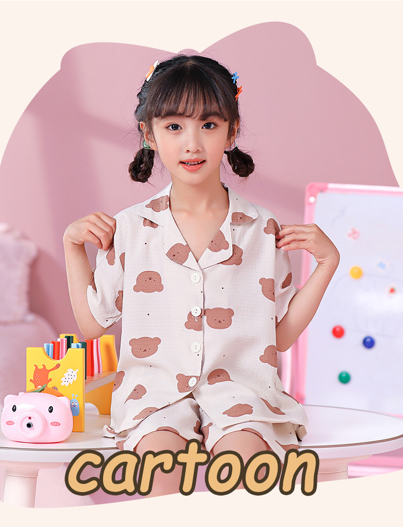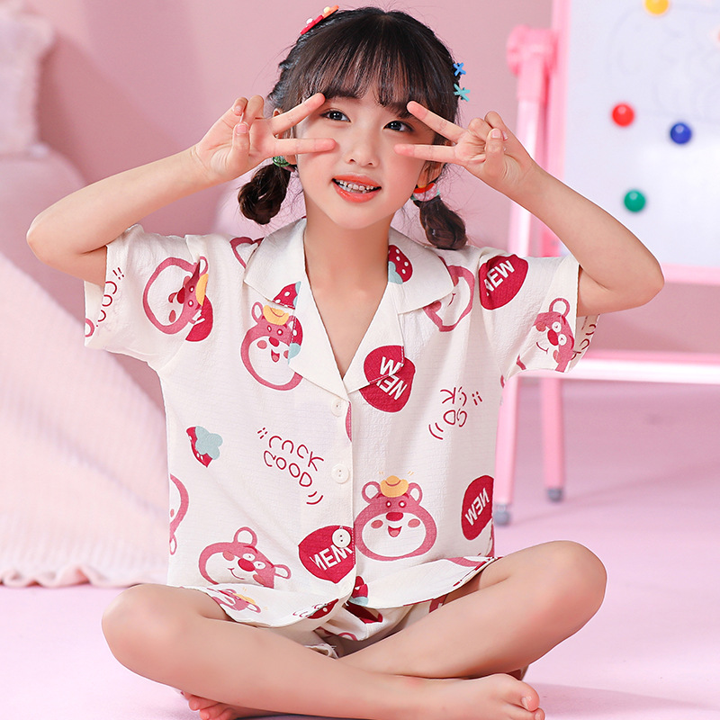 국경 간 한국 버블 코튼 소녀 잠옷 반팔 한국식 소녀 만화 카디건 홈 착용 어린이 잠옷스토어 가기