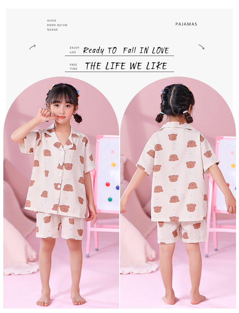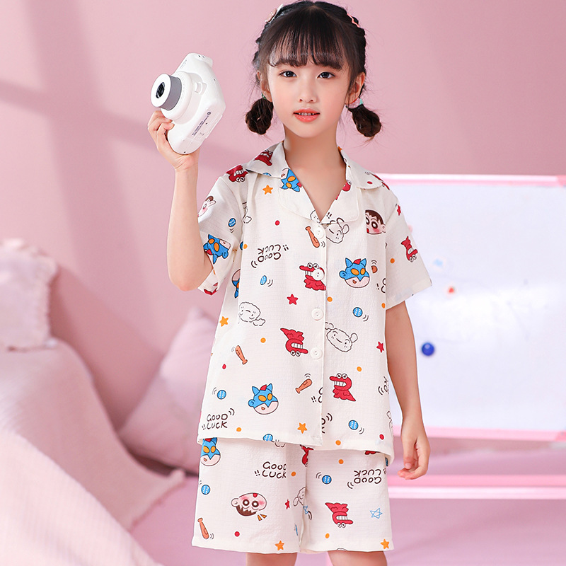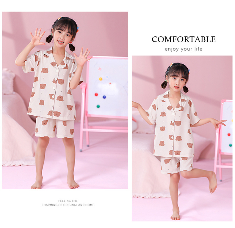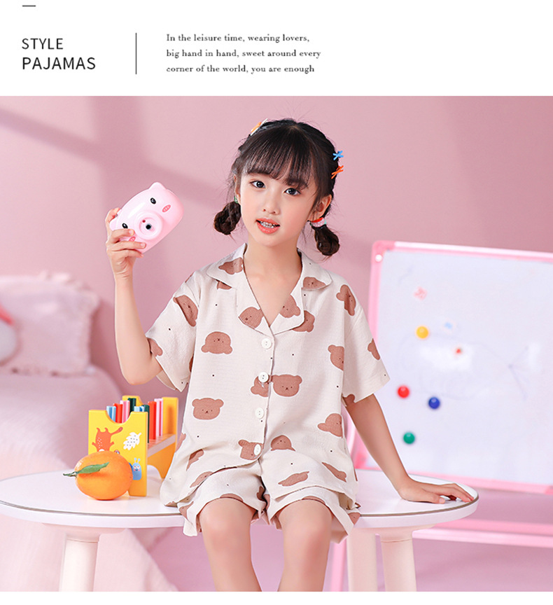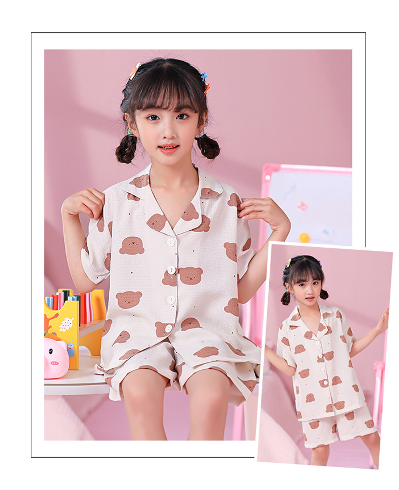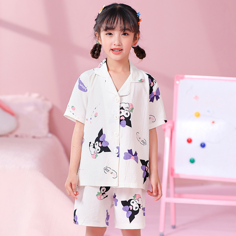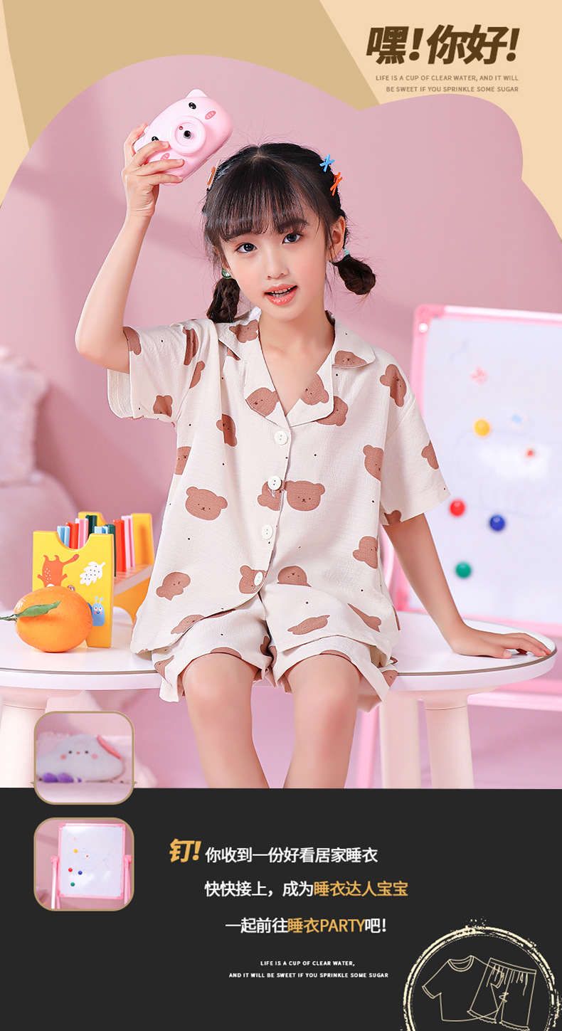 국경 간 한국 버블 코튼 소녀 잠옷 반팔 한국식 소녀 만화 카디건 홈 착용 어린이 잠옷스토어 가기