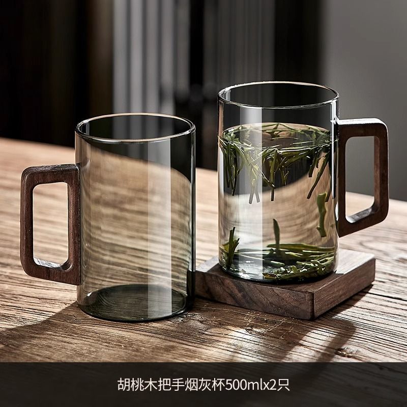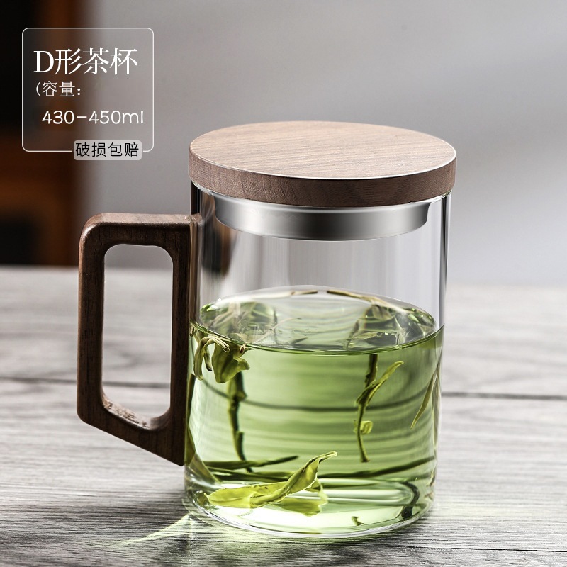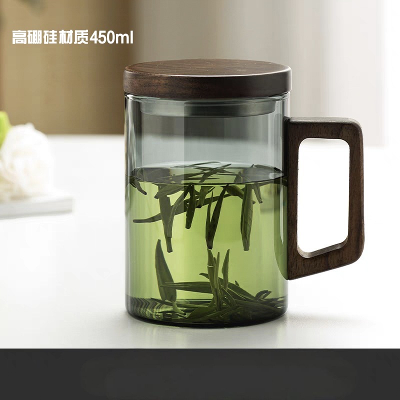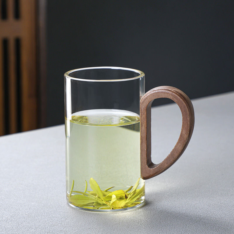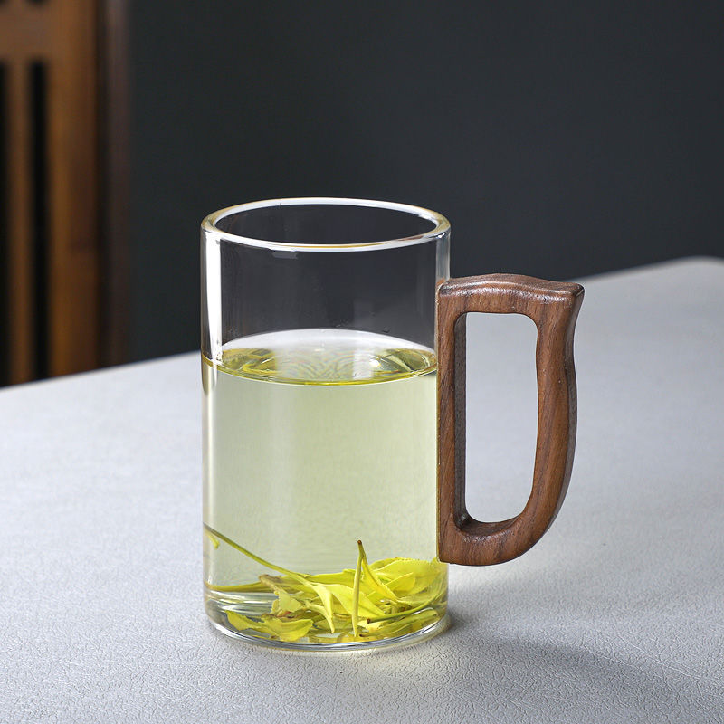 새로운 나무 손잡이 녹차 컵 고온 저항 유리 남자 사무실 다도 차 컵 개인 유리 도매스토어 가기