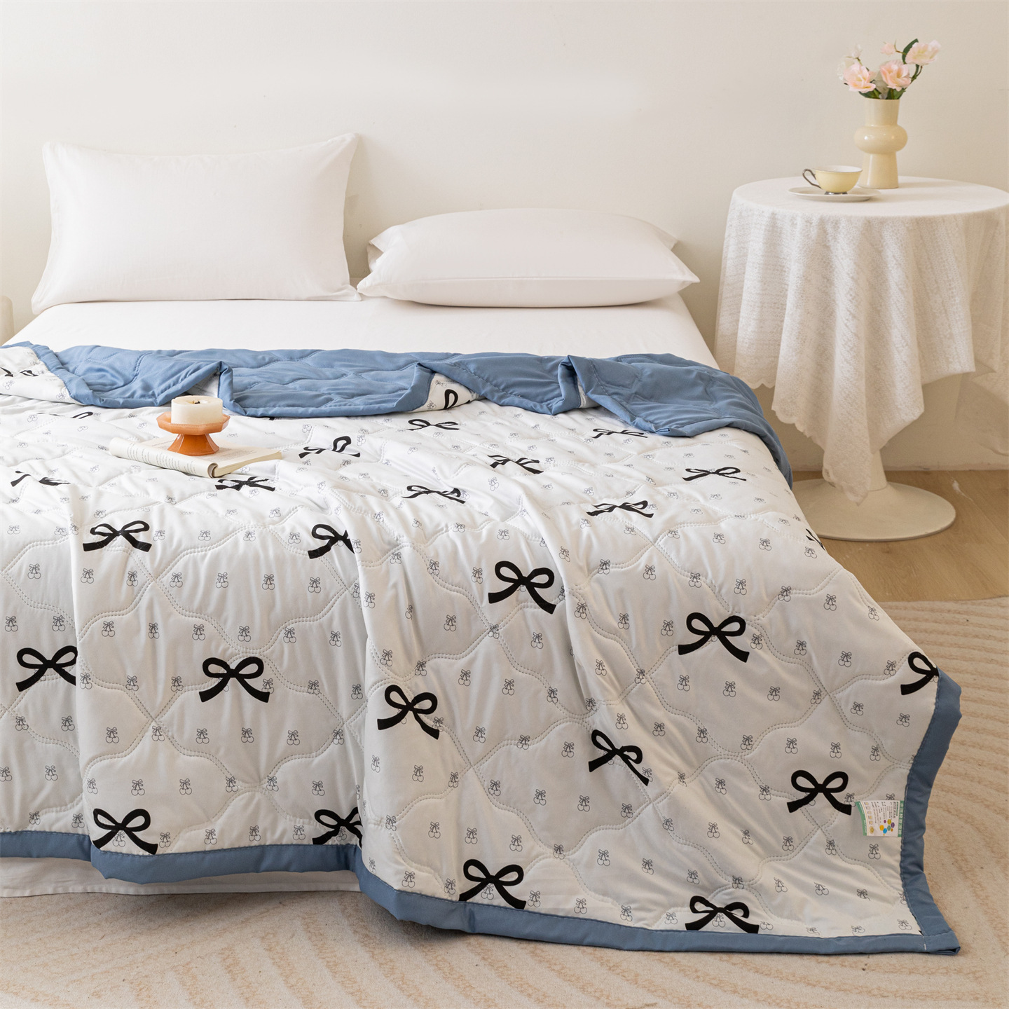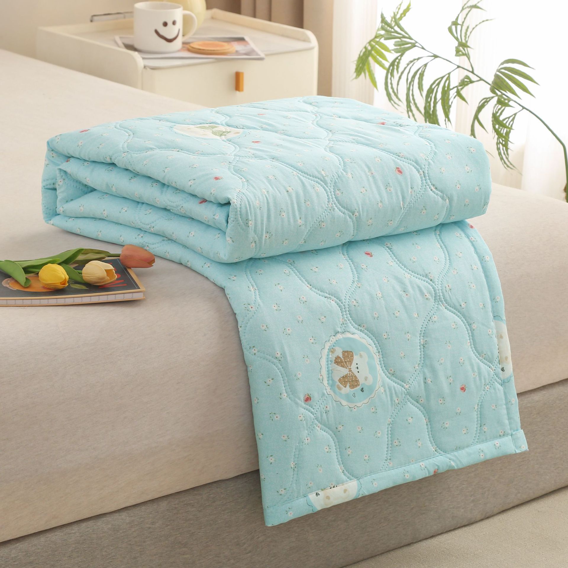 여름 이불 기모 프린트 여름 시원한 이불 에어컨 이불 여름 겸용 담요 꽃다발 완제품 선물