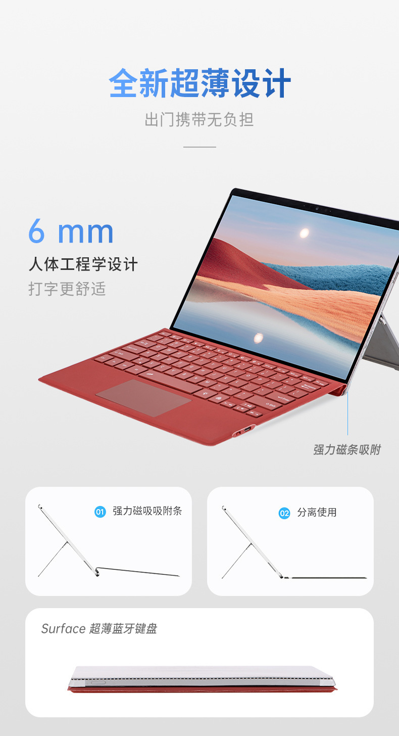 Microsoft SurfacePro3/4/5/6/7 경량 무선 블루투스 키보드 GO1/2/3/4 자기 분리에 적용 가능스토어 가기