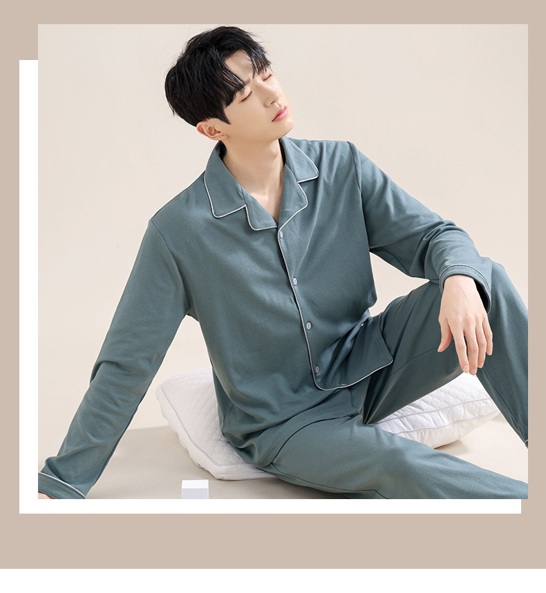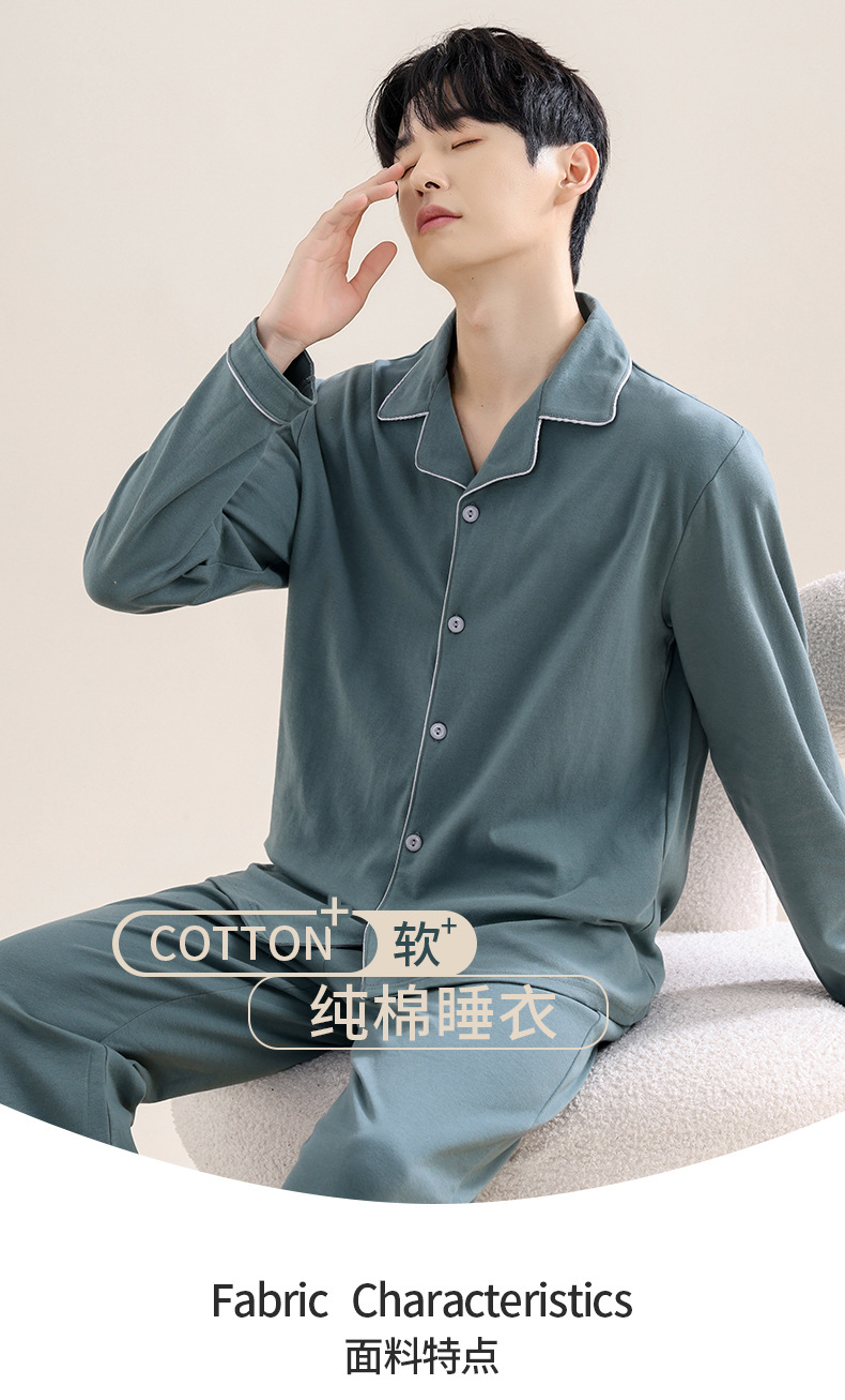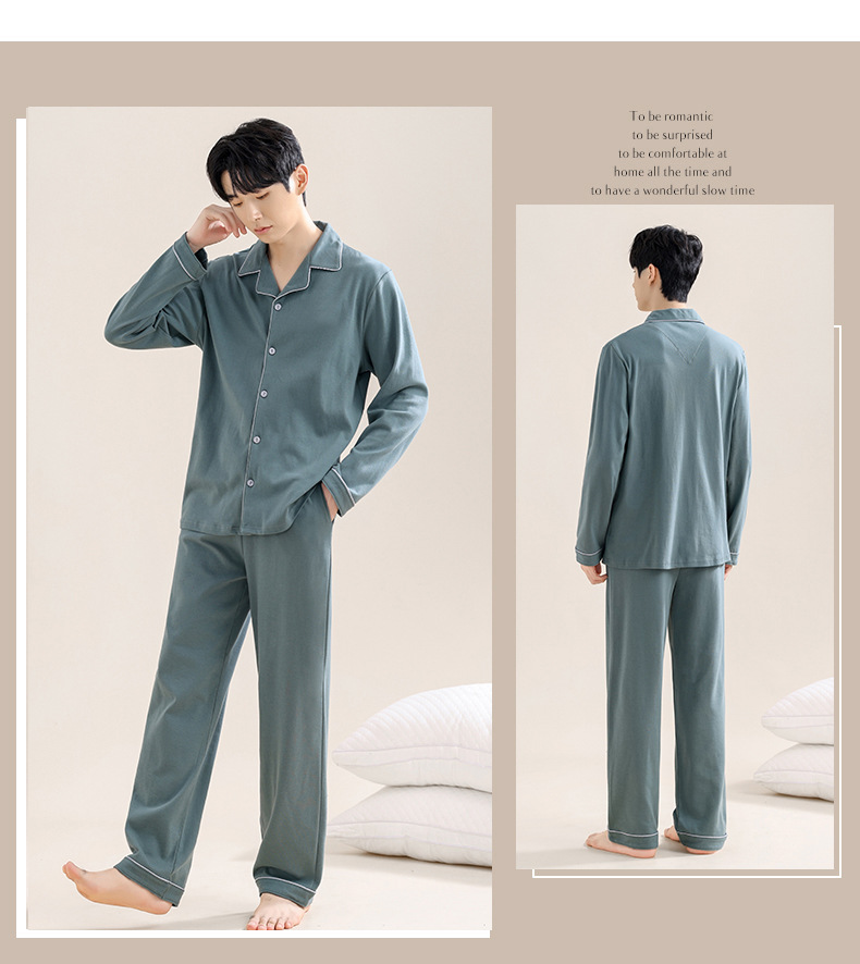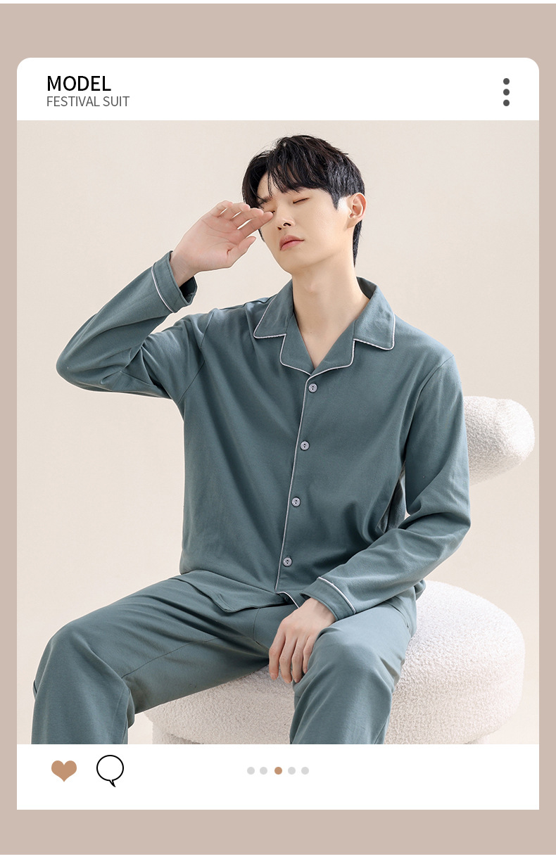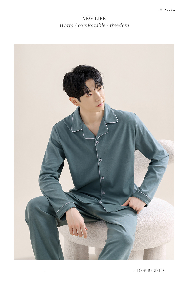새로운 스타일의 남성용 긴팔 순면 잠옷 봄 가을 청소년 남아용 순면 여름 홈웨어 세트 2025