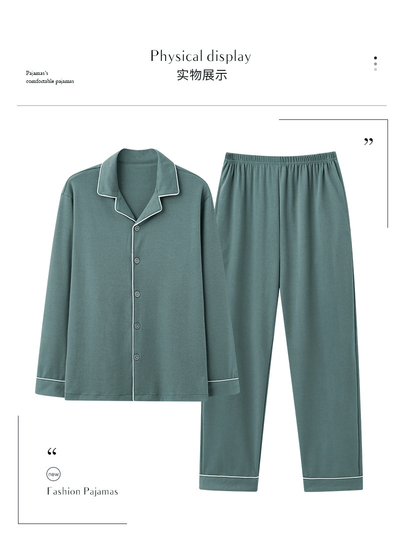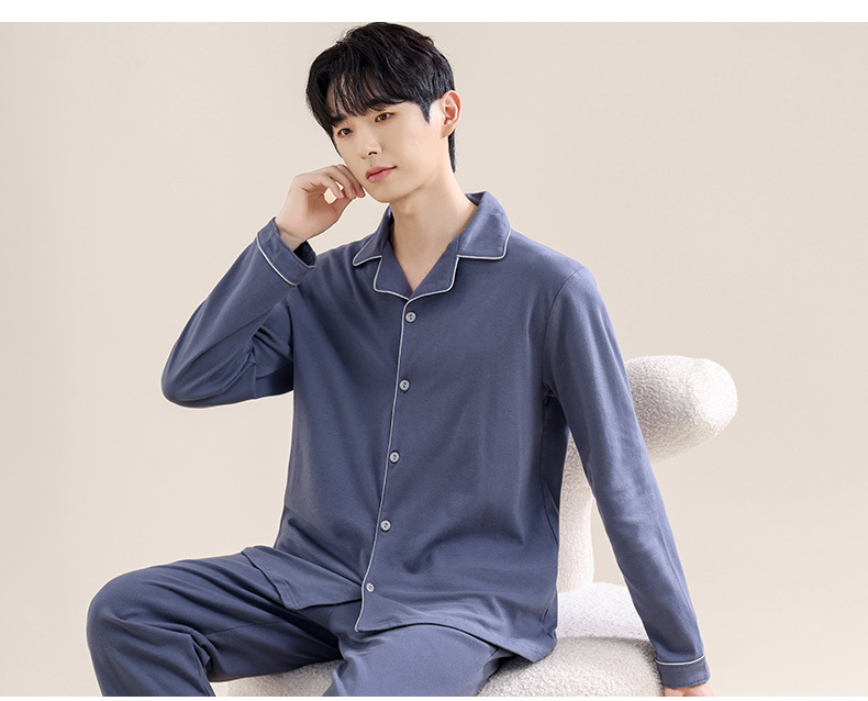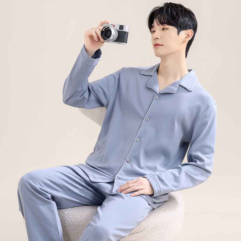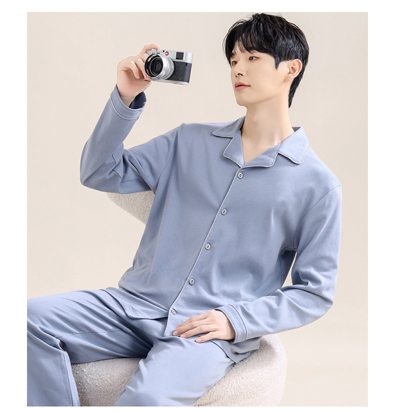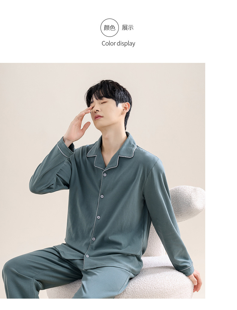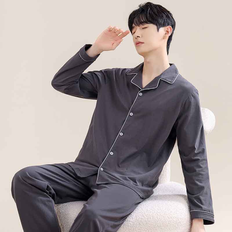 새로운 스타일의 남성용 긴팔 순면 잠옷 봄 가을 청소년 남아용 순면 여름 홈웨어 세트 2025