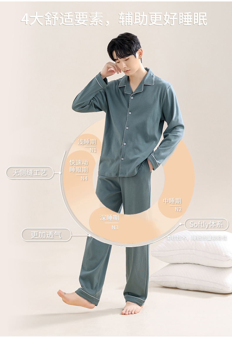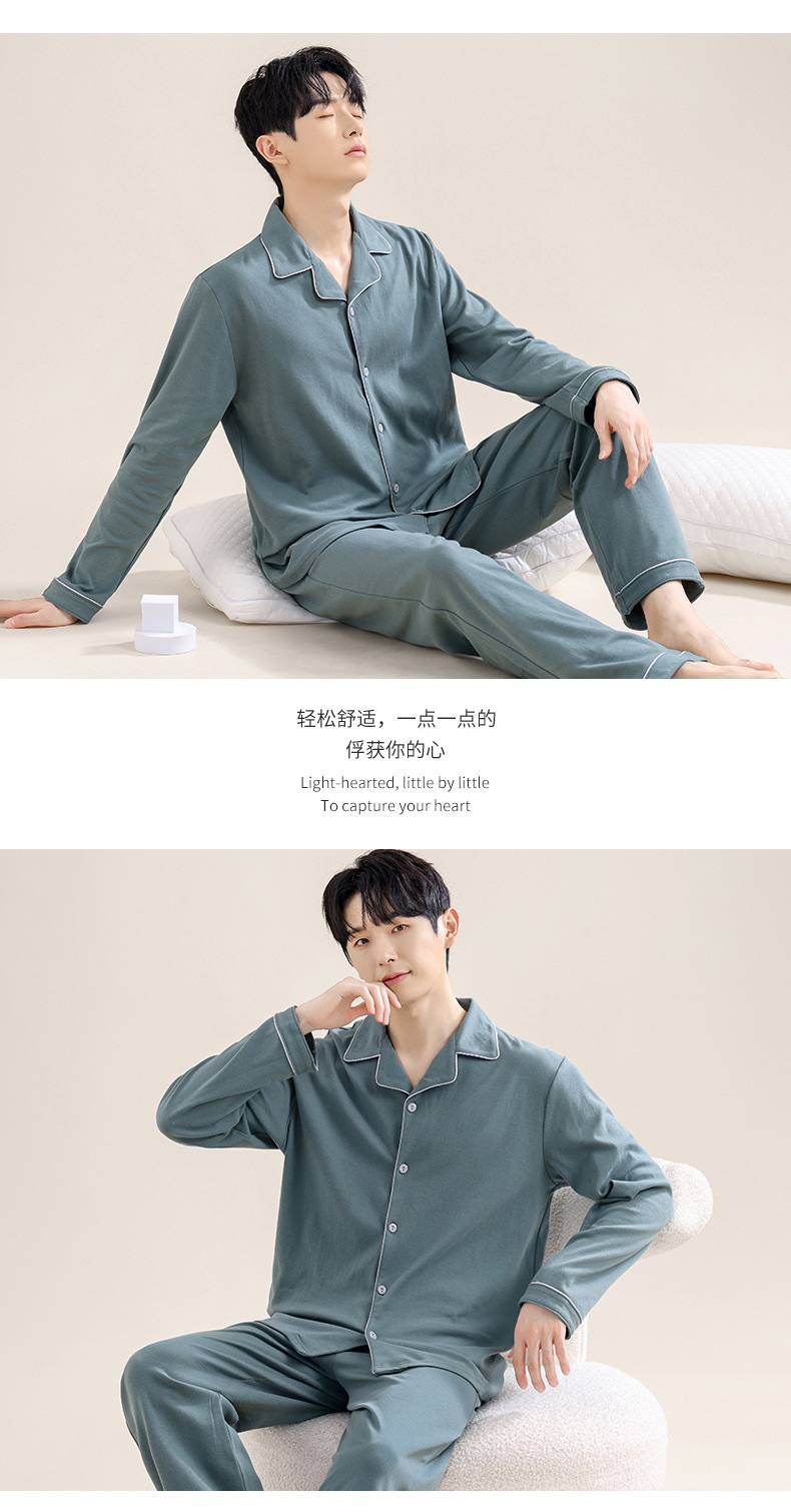 새로운 스타일의 남성용 긴팔 순면 잠옷 봄 가을 청소년 남아용 순면 여름 홈웨어 세트 2025스토어 가기