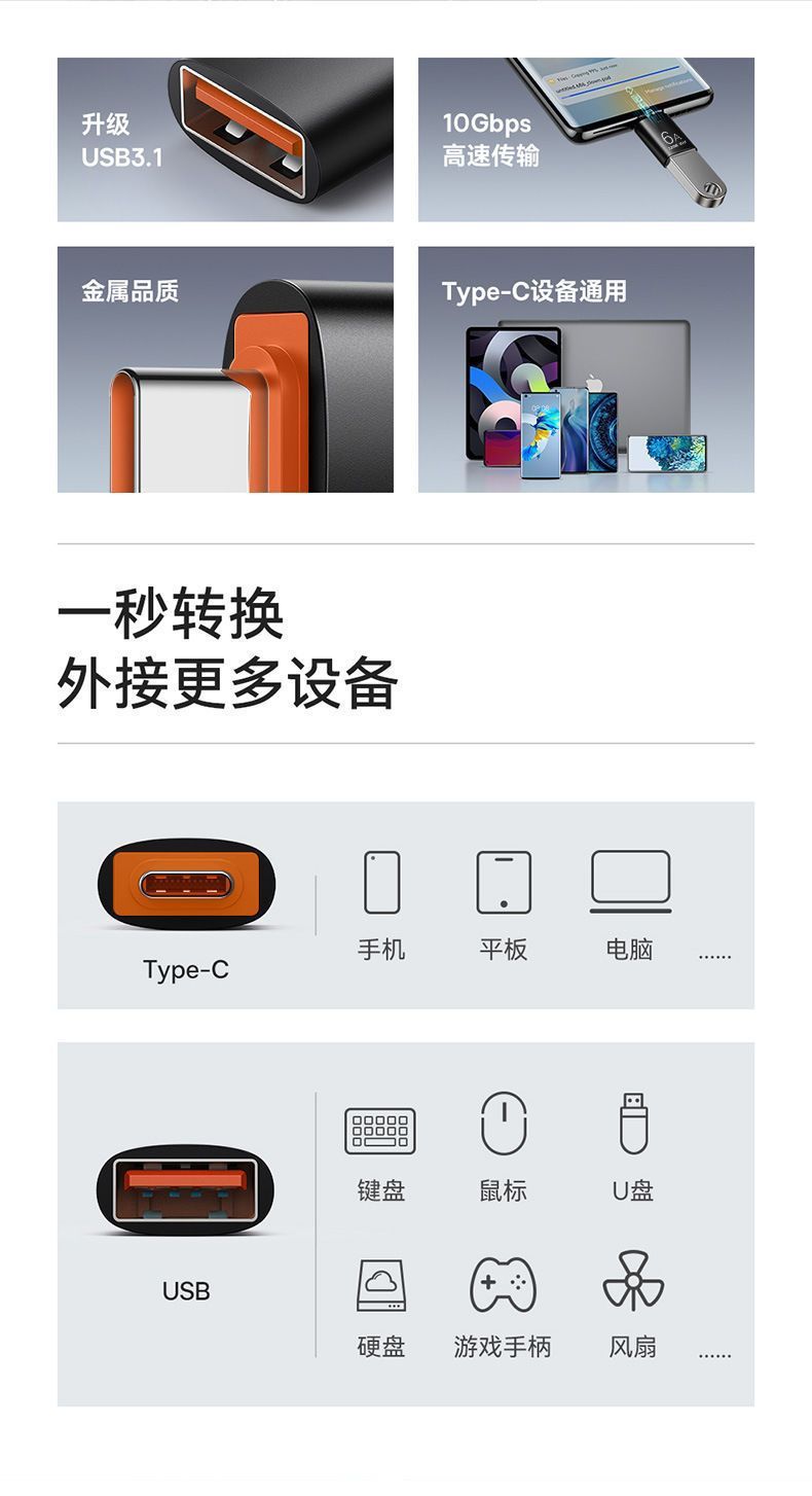 typec to USB3.0 충전 및 전송 OTG 어댑터 키보드 마우스 휴대폰 U 디스크 변환기 고속 충전스토어 가기