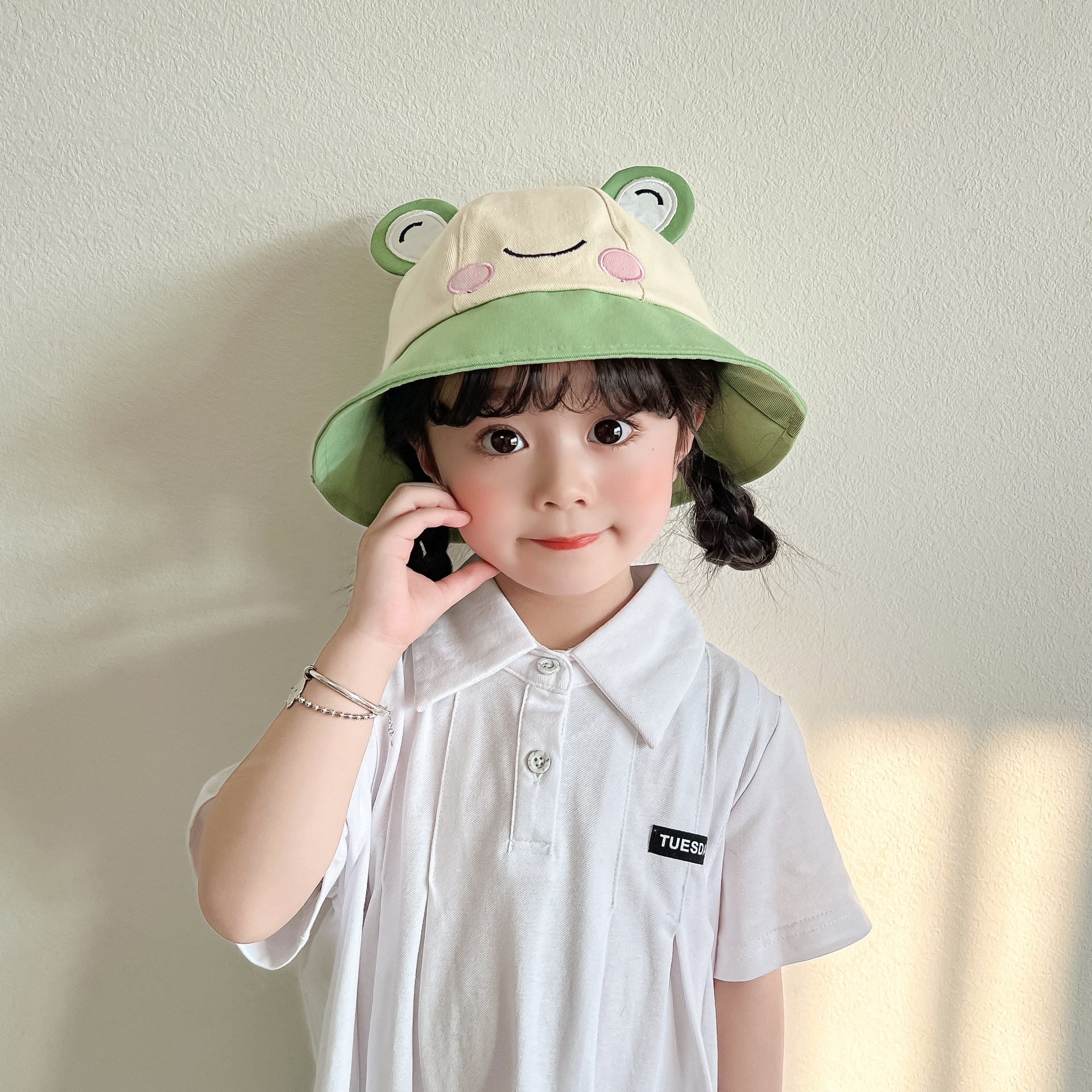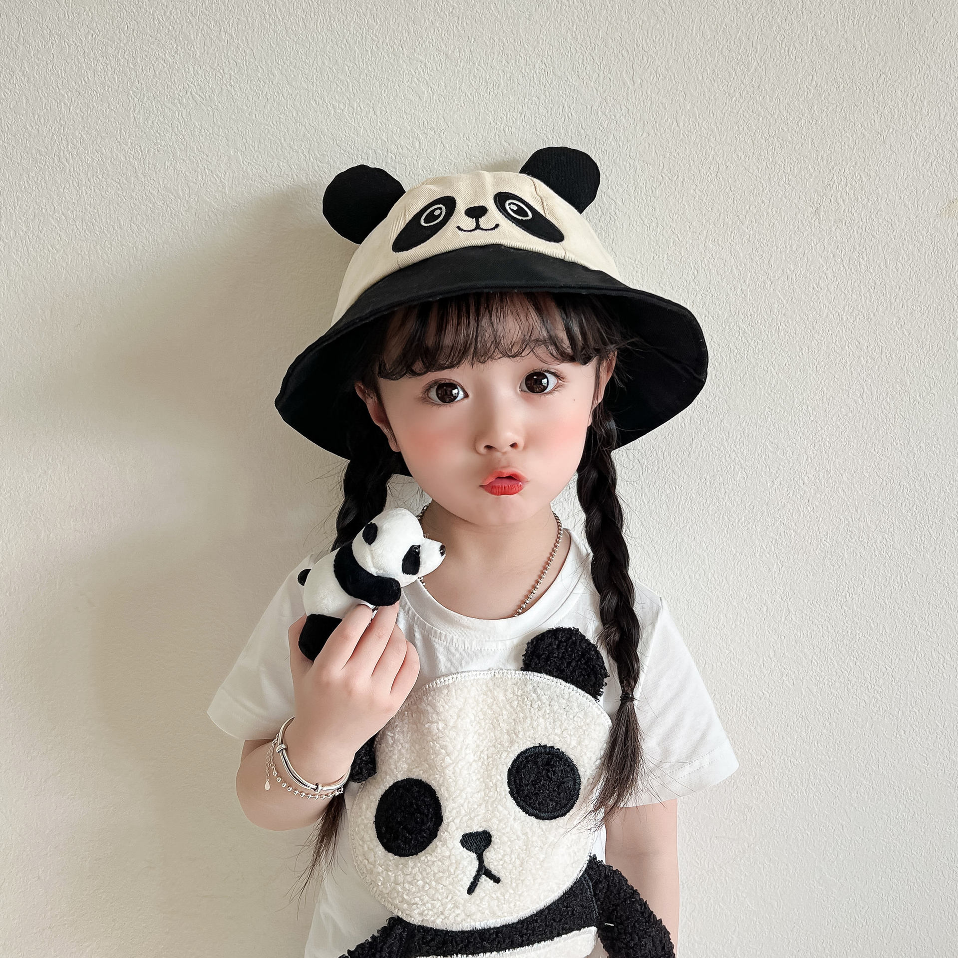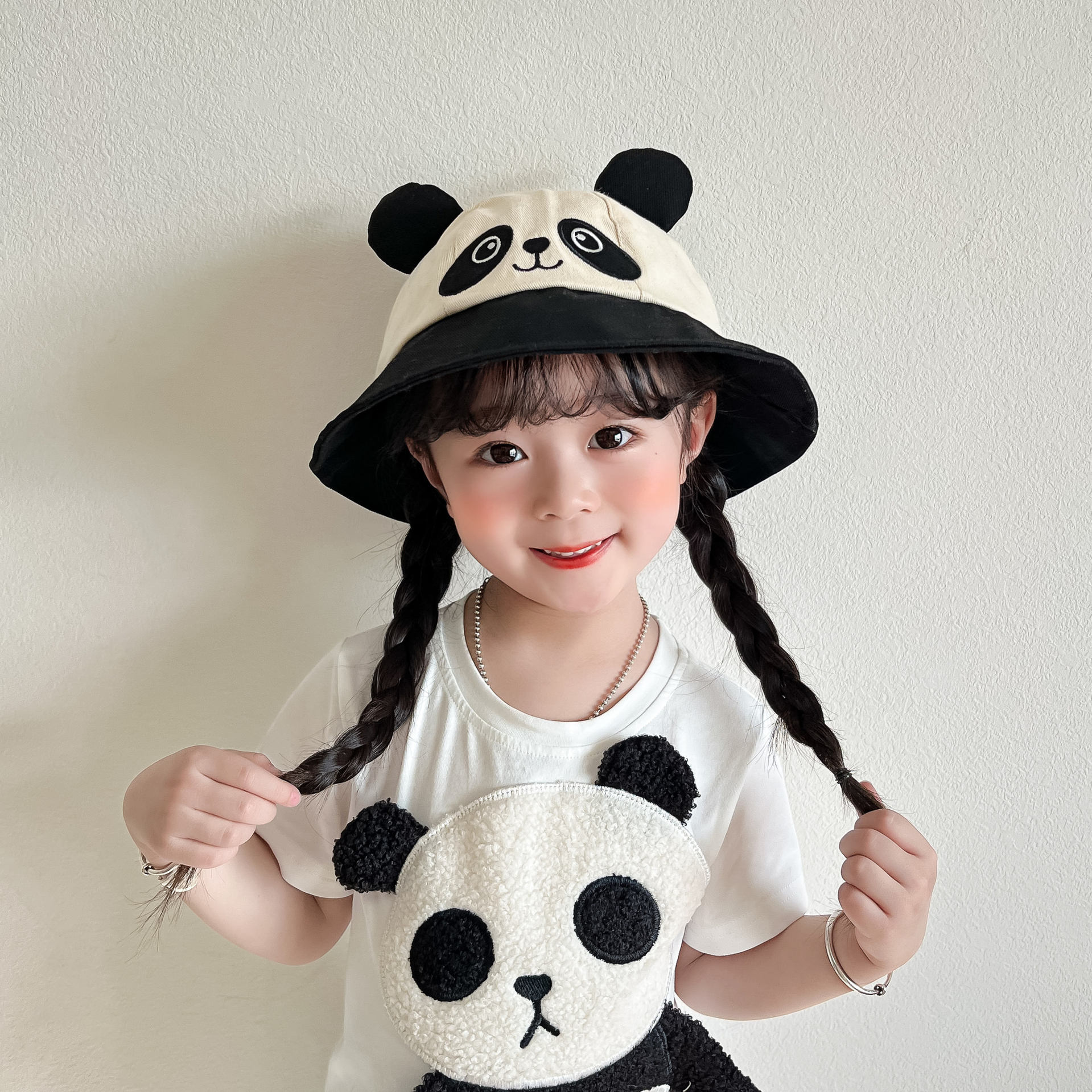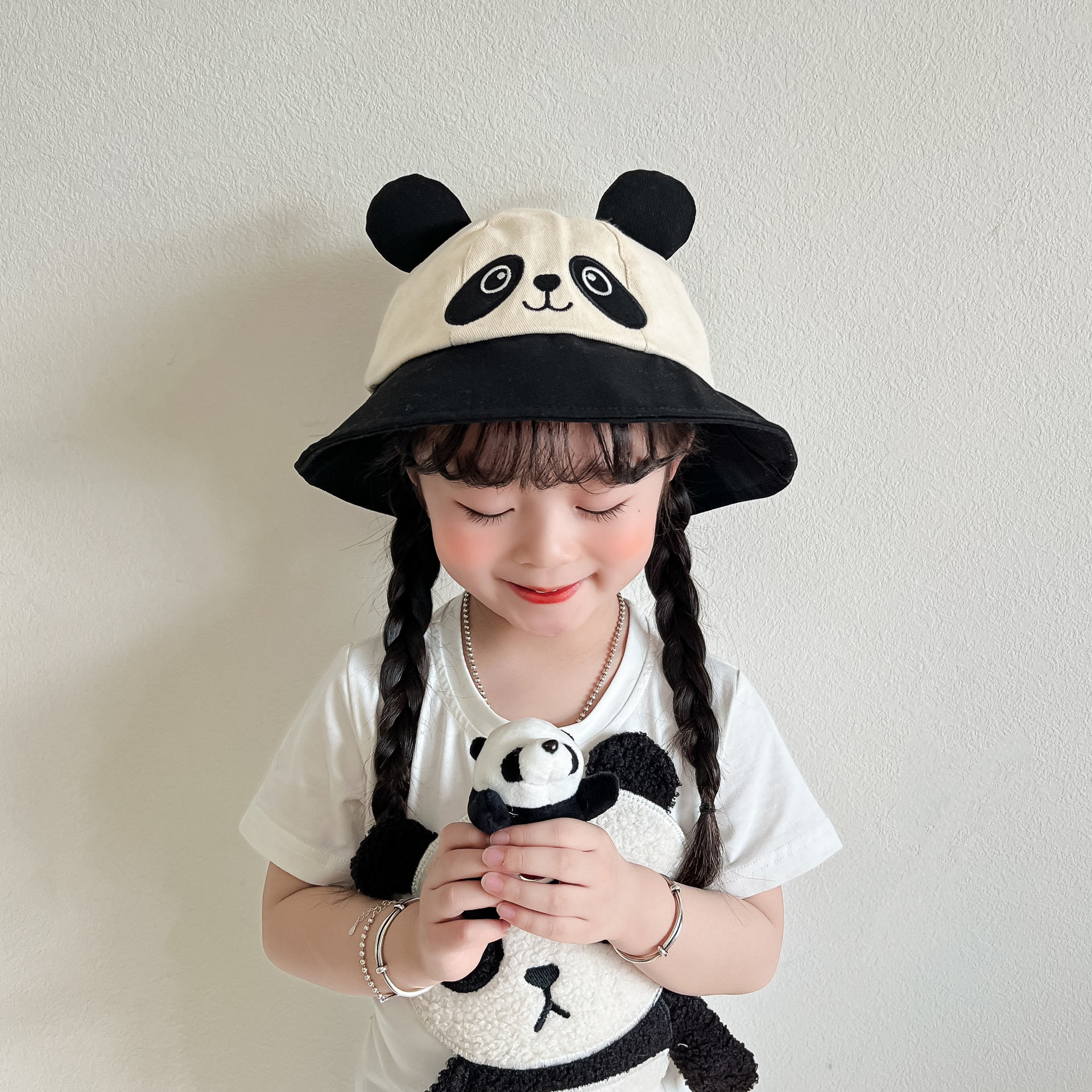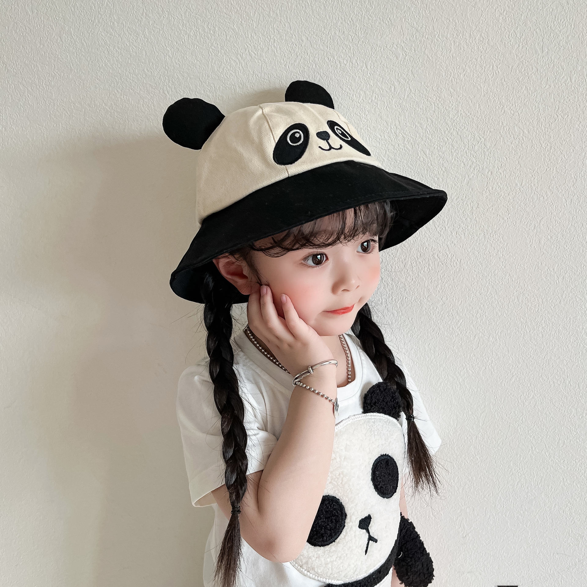 새로운 어린이 어부 모자 남자와 여자의 귀여운 팬더 개구리 작은 동물 수 놓은 선 스크린 모자 야외 스포츠 태양 모자